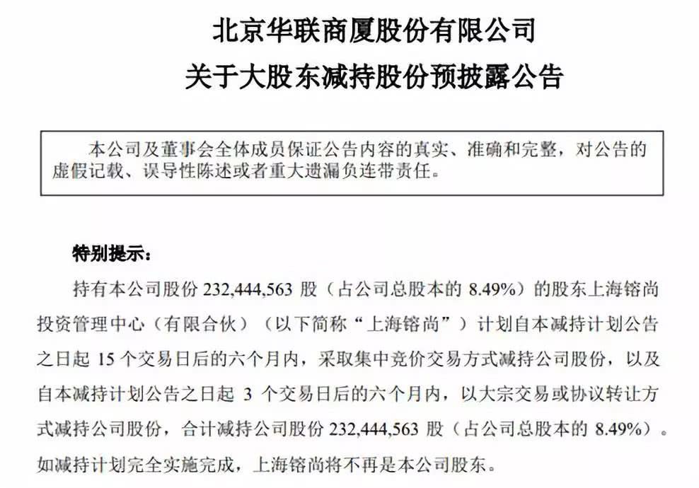 華聯(lián)股份(000882.SZ)日前發(fā)布公告,公司大股東上海镕尚投資管理中心(有限合伙)擬6個月內(nèi)清倉減持。上海镕尚目前持有公司股票232,444,563股,占公司總股本的8.49%,為公司的第三大股東。 公司股價于2015年10月復(fù)牌之初發(fā)生暴跌,此后便步入下行通道。截至目前公司股價仍未恢復(fù)元?dú)猓^70%,市值蒸發(fā)130多億。2019中報數(shù)據(jù)顯示,公司今年上半年實(shí)現(xiàn)營業(yè)收入6.14億元,同比增長2.92%;實(shí)現(xiàn)歸母凈利潤4,156.45萬元,同比下降85.99%。 (來源/面包財經(jīng)) |