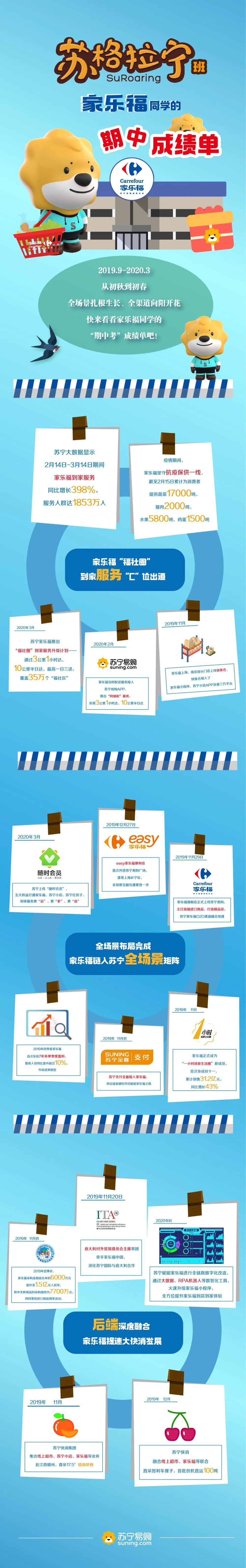 3月27日,《零售網(wǎng)》小編從蘇寧官方微信公眾號(hào)了解到,蘇寧公布了家樂福的“期中成績(jī)單”。 2019年9月,蘇寧正式收購家樂福國內(nèi),補(bǔ)足了大快消領(lǐng)域的品類短板,并集結(jié)起蘇寧小店、蘇寧超市、蘇寧紅孩子等集團(tuán)軍,全面發(fā)力民生消費(fèi)。如今半年已過,隨著進(jìn)博會(huì)、雙十一、年貨節(jié)、新冠戰(zhàn)“疫”、315等節(jié)點(diǎn)的完成,家樂福儼然已成為蘇寧全場(chǎng)景零售中的重要一環(huán),而家樂福悄然之間發(fā)生的變化,也讓外界感到欣喜。 2019年9月27日,蘇寧易購正式完成對(duì)家樂福國內(nèi)股權(quán)收購的當(dāng)天,蘇寧控股集團(tuán)董事長(zhǎng)張近東與家樂福國內(nèi)總部和大區(qū)核心高管閉門溝通時(shí),承諾將幫助家樂福實(shí)現(xiàn)五大舉措升級(jí),包括拓展互聯(lián)網(wǎng)新門店、推進(jìn)現(xiàn)有家樂福店面形態(tài)優(yōu)化、進(jìn)行數(shù)字化升級(jí)、幫助家樂福以零售云的方式進(jìn)入低線市場(chǎng)以及依托家樂福和蘇寧小店全面升級(jí)到家服務(wù)。 作為最早一批在國內(nèi)開展業(yè)務(wù)的外資零售企業(yè)之一,家樂福目前在全國開設(shè)有209家大型綜合超市以及24家便利店,覆蓋22個(gè)省份、51個(gè)核心城市,擁有商品SKU數(shù)超40000支,在快消品領(lǐng)域具有較強(qiáng)的本地化采購能力和自有品牌研發(fā)實(shí)力。而蘇寧加速整合快消供應(yīng)鏈,以直采模式保障生鮮品質(zhì)。蘇寧快消集家樂福與線上超市、蘇寧小店之力赴國內(nèi)外原產(chǎn)地直采,使雙方供應(yīng)鏈進(jìn)一步融合。 疫情期間,家樂福充分發(fā)揮優(yōu)勢(shì),釋放出應(yīng)有的效應(yīng)。從1.24(除夕)到2.18,家樂福緊急加購、及時(shí)補(bǔ)貨,為消費(fèi)者累計(jì)提供蔬菜22,000噸,豬肉2700噸,水果6500噸,雞蛋2000噸;同時(shí),2月14日至3月14日期間,家樂福平臺(tái)蔬菜類產(chǎn)品銷量同比增長(zhǎng)高達(dá)780%,其中綠葉類菜品的銷量同比增長(zhǎng)更是達(dá)到1230%。家樂福已成為百姓“米袋子”“菜籃子”最可靠的保障基地。 目前,消費(fèi)者可以通過家樂福小程序、蘇寧易購APP、蘇寧小店APP及第三方平臺(tái)等多種渠道在線下單,享受“省時(shí)、省錢、省力”的貼心到家服務(wù)。春節(jié)期間,家樂福到家業(yè)務(wù)增長(zhǎng)超過300%,特別是生鮮類、健康類產(chǎn)品,比如像砂糖桔增長(zhǎng)675%、方面便增長(zhǎng)878%、肋排增長(zhǎng)1097%。 |