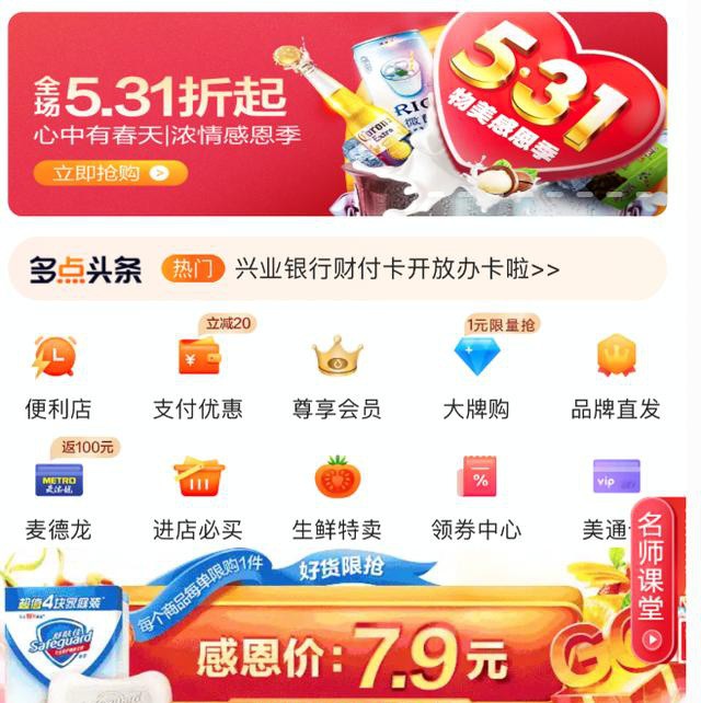 5月29日—31日,物美攜手多點(diǎn)Dmall開啟三天年中鉅惠,過千款商品低至5.31折。京津冀用戶不管是通過多點(diǎn)APP,還是去線下物美門店,都能享受531感恩季特價優(yōu)惠。 在多點(diǎn)app上,531感恩季活動分設(shè)了濃情感恩季、好貨限搶、生鮮專場、超級爆款、冰品酒飲節(jié)、親子節(jié)等六大分會場,涵蓋了千款入夏熱門商品。冰品酒飲低至5.31折,1分錢換西瓜,怡寶水10.9元12瓶等等實(shí)打?qū)嵉膬?yōu)惠讓利消費(fèi)者。思念、和路雪、百事可樂、伊利、中糧、寶潔等品牌也紛紛參加531感恩季,三只松鼠更是推出了3.5折超值優(yōu)惠,全力參與531感恩大促銷。 另外,物美聯(lián)合多點(diǎn)Dmall推出了531物美感恩季專場直播。5月29日19點(diǎn)開始,用戶可通過多點(diǎn)小程序進(jìn)入專場直播間,跟著物美主播去實(shí)地探店,除了爆品低至5.31折之外,也將發(fā)放眾多百元優(yōu)惠券。 更為重磅的是,借助531感恩季多點(diǎn)Dmall將推出六一嘉年華直播狂歡,從5月29日17:30開始,網(wǎng)羅奶粉、尿褲、玩具、嬰幼用品及洗護(hù)大牌,連續(xù)直播30小時不中斷。屆時更有眾多奶粉低至6折,0.1元秒殺舒克牙刷等驚喜優(yōu)惠。 在大力的促銷背后,一方面是多點(diǎn)Dmall想要借助這個溫情5月感恩回饋消費(fèi)者,另一方面想力爭在疫情防控常態(tài)化下復(fù)蘇消費(fèi)活力,壯大線上消費(fèi),釋放被抑制的線下消費(fèi)。 作為一個知法守法、有社會責(zé)任擔(dān)當(dāng)?shù)钠髽I(yè),“當(dāng)好人,干正事,有原則,守底線”是物美和多點(diǎn)一直想要傳達(dá)的精神。在疫情期間,物美攜手多點(diǎn),為保障北京市場供應(yīng)做出了積極的貢獻(xiàn),這次531感恩季活動,也是想在疫情取得階段性成果之后,感謝消費(fèi)者對多點(diǎn)和物美的支持,傳遞感恩正能量! |