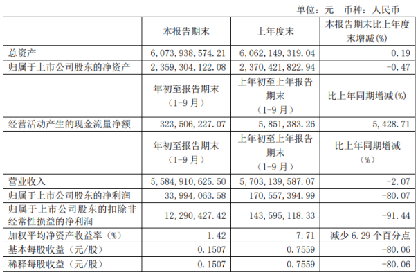 10月22日,銀川新華百貨商業(yè)集團(tuán)股份有限公司發(fā)布公告披露前三季度經(jīng)營情況。 公告顯示,公司前三季度實現(xiàn)營業(yè)收入55.85億元,同比下降2.07%;歸屬于上市公司股東的凈利潤3399.41萬元,同比下降80.07%;歸屬于上市公司股東的扣除非經(jīng)常性損益的凈利潤1229.04萬元,同比下降91.44%;基本每股收益0.1507元。 新華百貨于公告中稱,歸屬于母公司的凈利潤較去年同期下降80.07%,主要系公司本期受疫情影響,利潤減少所致。 截至三季度末,新華百貨總資產(chǎn)60.74億元,同比增長0.19%;歸屬于上市公司股東的凈資產(chǎn)23.59億元,同比下降0.47%。 資料顯示,新華百貨主要從事商業(yè)零售、物流和商業(yè)物業(yè)出租業(yè)務(wù),零售業(yè)務(wù)主要涉及百貨商場(含綜合購物中心)、超市連鎖及電器連鎖。 |