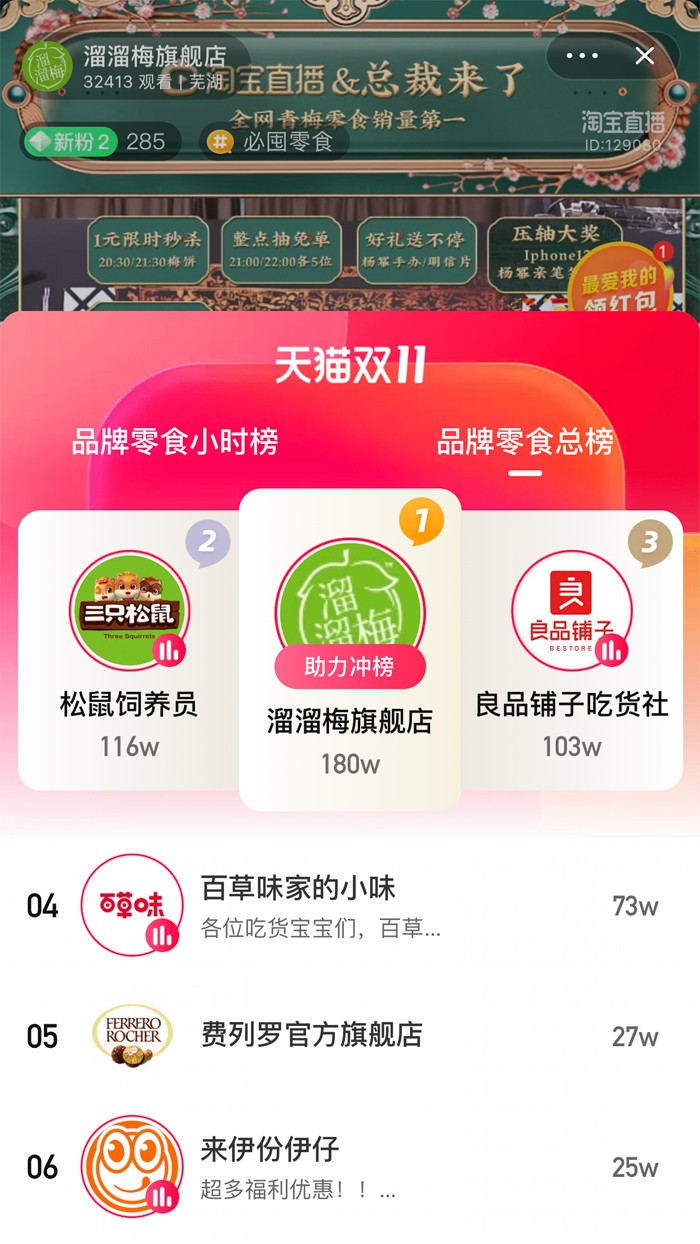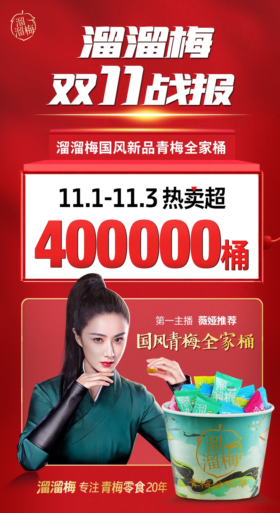 01 國(guó)風(fēng)青梅全家桶3天銷售40萬件, 揭秘溜溜梅雙11青梅國(guó)潮風(fēng) 因?yàn)橐咔榈年P(guān)系,線上市場(chǎng)成為各大品牌的兵家必爭(zhēng)之地,這也導(dǎo)致了今年的雙11競(jìng)爭(zhēng)尤其激烈。眾多休閑零食企業(yè)早已提前打響雙11市場(chǎng)的爭(zhēng)奪戰(zhàn),而專注青梅零食20年的品牌溜溜梅在天貓雙11第一預(yù)售階段就取得了十分矚目的成績(jī)。 10月23日,薇婭直播間里,短短3分鐘內(nèi),溜溜梅售出了150000件國(guó)風(fēng)青梅全家桶,成為零食類目預(yù)售第一。 11月1日,溜溜梅又通過總裁直播爆賣160000件,獲淘寶直播零食總榜第一名! 11月1日至3日,國(guó)風(fēng)青梅全家桶累計(jì)爆賣40萬桶。 為了吸引Z世代的年輕消費(fèi)群體,溜溜梅在新品研發(fā)方面頗下功夫,今年雙11特別研究推出了國(guó)風(fēng)青梅系列新品。 首先是推出暢銷20年的四種經(jīng)典口味(原味青梅,雪梅,烏梅,綠茶味青梅)的青梅組合的桶式包裝,精選A級(jí)大青梅,0防腐劑,并配以精致的國(guó)風(fēng)插畫,打造了國(guó)風(fēng)青梅全家桶這個(gè)爆款產(chǎn)品,好評(píng)如潮。 全網(wǎng)銷量第一的無核青梅系列,復(fù)刻梅煎古法,九道傳統(tǒng)制梅工序,采用核心鎖“酸”技術(shù),0防腐劑添加,最大限度的保留青梅原果中的天然有機(jī)酸與青梅最天然純粹的獨(dú)特滋味。 新一代青梅梅の凍,采用進(jìn)口日本工藝制作,更是以“0防腐劑、0甜味劑、0人工色素”的賣點(diǎn),迎合了時(shí)下年輕人對(duì)于“健康”和“美味”兼得的需求,暢銷1000萬袋。 為了推廣這一系列產(chǎn)品,溜溜梅簽約了第一帶貨女主播薇婭出任品牌摯友,并邀請(qǐng)國(guó)際視覺藝術(shù)家陳漫為其拍了一組青梅國(guó)風(fēng)大片。這部青梅國(guó)風(fēng)大片一上線在微博閱讀量達(dá)到了2.6億,隨即引爆微博、小紅書、抖音大V熱議,話題營(yíng)銷帶動(dòng)爆款,登上了微博熱搜,多維度觸達(dá)消費(fèi)者。 02 開啟JBP戰(zhàn)略合作計(jì)劃, 打響青梅價(jià)值戰(zhàn) 為了順應(yīng)市場(chǎng)的變化,從經(jīng)營(yíng)渠道到經(jīng)營(yíng)顧客,通過分析消費(fèi)趨勢(shì)和群體的變化后,在今年10月舉行的“中國(guó)梅·中國(guó)味”2020溜溜梅全零售峰會(huì)上,溜溜梅創(chuàng)始人楊帆與步步高、大統(tǒng)華等零售商代表以及中國(guó)連鎖經(jīng)營(yíng)協(xié)會(huì)副秘書長(zhǎng)王升共同開啟了JBP戰(zhàn)略合作計(jì)劃,打造百萬店王,共創(chuàng)千萬系統(tǒng),實(shí)現(xiàn)合作共贏。溜溜梅創(chuàng)始人楊帆表示“傳統(tǒng)的價(jià)格戰(zhàn)已經(jīng)不再適應(yīng)現(xiàn)在的競(jìng)爭(zhēng)環(huán)境,傳遞價(jià)值才是銷售的真諦!” ▲ 溜溜梅創(chuàng)始人 楊帆 溜溜梅與零售商建立JBP戰(zhàn)略合作伙伴關(guān)系,發(fā)力產(chǎn)品規(guī)劃、檔期促銷、終端生動(dòng)化等。在產(chǎn)品合作領(lǐng)域,優(yōu)先規(guī)劃進(jìn)場(chǎng)現(xiàn)有產(chǎn)品,聯(lián)合打造年節(jié)爆品,區(qū)域首發(fā)上新未來產(chǎn)品,并將針對(duì)系統(tǒng)定制專屬產(chǎn)品。而在檔期促銷上,針對(duì)全年個(gè)性化定制檔期促銷資源,活動(dòng)方案和產(chǎn)品組合實(shí)現(xiàn)最優(yōu)化。 特別值得注意的是,針對(duì)終端生動(dòng)化建設(shè)方面,溜溜梅還首創(chuàng)了集青梅文化傳播、青梅銷售體驗(yàn)為一體的首創(chuàng)“五感式”終端生動(dòng)化陳列方案——青梅體驗(yàn)站。將品牌核心價(jià)值和產(chǎn)品完美展現(xiàn)。同時(shí)結(jié)合專業(yè)青梅健康顧問,深度觸達(dá)消費(fèi)者。溜溜梅創(chuàng)始人楊帆規(guī)劃將在三年內(nèi)完成百萬青梅體驗(yàn)站工程打造,計(jì)劃2020年內(nèi)在終端場(chǎng)景投放2000個(gè),三年內(nèi)總體投放達(dá)到10000個(gè)。 中國(guó)連鎖經(jīng)營(yíng)協(xié)會(huì)副秘書長(zhǎng)王升表示“溜溜梅青梅體驗(yàn)站將成為線下零售場(chǎng)景化探索的黑馬,是一個(gè)經(jīng)營(yíng)模式的創(chuàng)新,將傳播、體驗(yàn)、銷售進(jìn)行有效的聯(lián)動(dòng)和青梅價(jià)值傳遞! ▲中國(guó)連鎖經(jīng)營(yíng)協(xié)會(huì)副秘書長(zhǎng) 王升 溜溜梅品牌從創(chuàng)立之初就堅(jiān)持“青梅價(jià)值”的挖掘和傳遞,從2018年啟動(dòng)大散裝戰(zhàn)略布局,2019年精細(xì)化布局,開啟萬店工程,占領(lǐng)大商超最醒目的位置。溜溜梅創(chuàng)始人楊帆提出“讓青梅食品成為主流”為戰(zhàn)略目標(biāo),高舉高打多策并舉,成效顯著捷報(bào)頻傳,品牌勢(shì)能顯著提高。 在品牌傳播方面。溜溜梅在依然選擇了楊冪擔(dān)任首席品牌官,廣告語升級(jí)為“酸一點(diǎn),吃溜溜梅”,針對(duì)青梅獨(dú)特的價(jià)值,無論是味覺上的觸動(dòng)食欲感的“酸”,還是青梅本身含有的多種天然有機(jī)酸,都讓消費(fèi)者在想到酸味食品第一時(shí)間聯(lián)想到溜溜梅。 另外, “強(qiáng)化內(nèi)容種草營(yíng)銷,全網(wǎng)直播造勢(shì),構(gòu)建電商精細(xì)化運(yùn)營(yíng)模式”成為了溜溜梅布局線上的核心策略。在線下渠道終端通過有計(jì)劃的市場(chǎng)活動(dòng)排布,物料的靈活更新和信息傳遞,線上線下聯(lián)動(dòng),不斷吸納新的年輕消費(fèi)人群,持續(xù)提升品