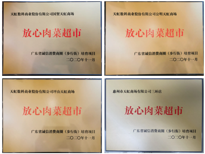 11月23日,2020年廣東省“誠(chéng)信興商宣傳月”暨誠(chéng)信消費(fèi)商圈培育活動(dòng)啟動(dòng)儀式在廣州正式拉開帷幕。 廣東省市場(chǎng)監(jiān)管局宣布了2020年廣東省培育誠(chéng)信消費(fèi)商圈第一批“放心肉菜超市”名單,廣東全省共16家超市上榜,其中有4家為天虹門店。 天虹超市的國(guó)貿(mào)、公明、坪山、三環(huán)4家門店,成為了首批通過“廣東省誠(chéng)信消費(fèi)培育項(xiàng)目-放心肉菜超市”復(fù)核門店。值得一提的是,在深圳、惠州兩市,只有天虹獲此稱號(hào)。 |