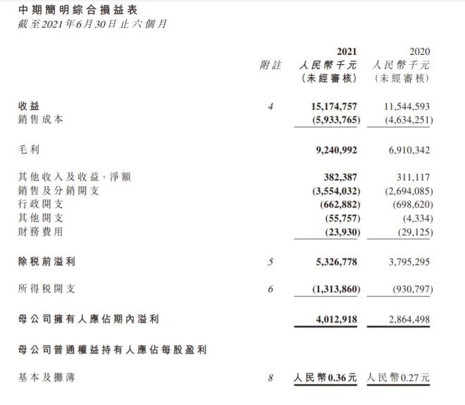今年上半年,農(nóng)夫山泉實現(xiàn)營收151.75億,同比增長31.44%;歸屬上市公司股東的凈利潤40.13億元,同比增長40.09%;毛利率由去年同期的59.9%上升到60.9%。 這是農(nóng)夫山泉自2017年以來最好的增速。對于營收和凈利潤上漲,農(nóng)夫山泉在財報里表示,這主要得益于公司產(chǎn)品銷量的增加、產(chǎn)品結構的變化和對PET(瓶身所用的材料)成本的有效控制。 具體來看,農(nóng)夫山泉包裝飲用水產(chǎn)品營收為89.19億元,同比增長25.6%;茶飲料產(chǎn)品的營收為21.82億元,同比增長36.4%;功能飲料產(chǎn)品營收20.04億元,同比增長38.4%;果汁飲料產(chǎn)品營收12.24億元,同比增長29.9%;其他產(chǎn)品的營收為8.46億元,同比增長86.8%,其他產(chǎn)品主要包括蘇打水飲料、含氣風味飲料、咖啡飲料、植物酸奶產(chǎn)品等其他飲料產(chǎn)品,及鮮果等農(nóng)產(chǎn)品。 據(jù)悉,截至8月25日港股收盤,農(nóng)夫山泉股價下跌2.96%,報39.3港元/股,總市值4419.86億港元。在福布斯實時富豪榜中,鐘睒睒以667億美元的身價位居亞洲富豪榜第二位,并且重回中國首富的位置。 |