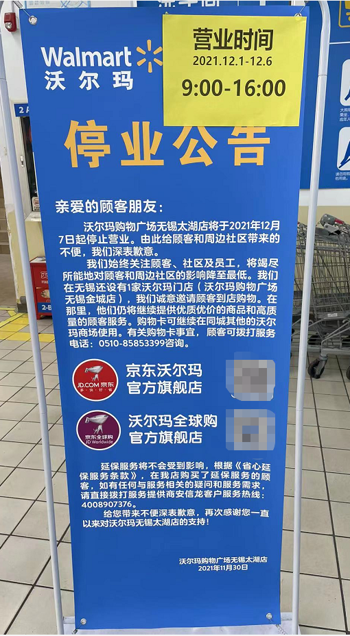 11月30日消息,沃爾瑪無錫太湖店發(fā)布停業(yè)公告。 公告稱,沃爾瑪購物廣場無錫太湖店將于2021年12月7日起停止?fàn)I業(yè)。購物卡可繼續(xù)在同城其他的沃爾瑪商場使用。有關(guān)購物卡事宜顧客可撥打服務(wù)電話咨詢。 |