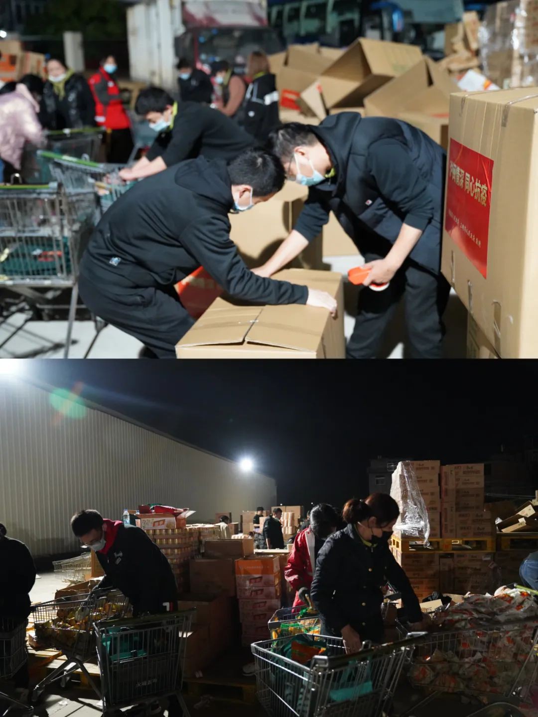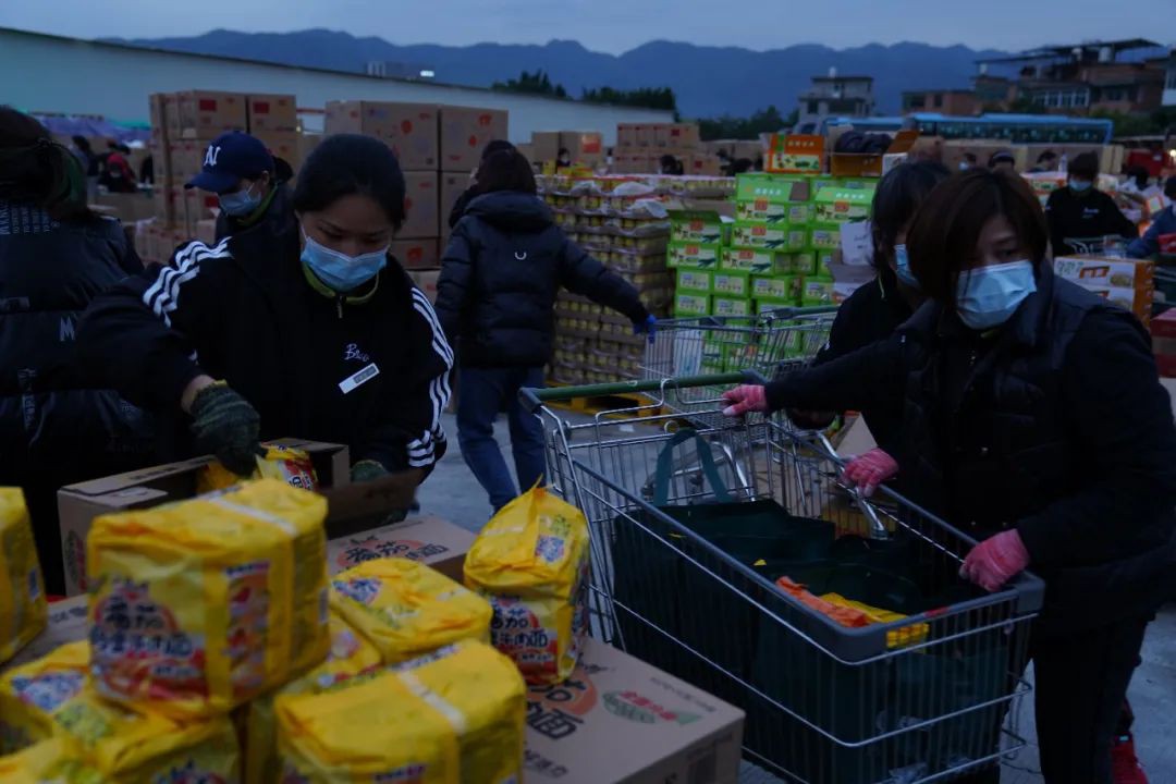 近日,上海進(jìn)入疫情防控攻堅(jiān)階段。在全市封控篩查期間,各省愛心物資陸續(xù)運(yùn)抵上海。 4月1日,永輝接到福建省商務(wù)廳委托,福建省將提供10萬份物資馳援上海,由永輝負(fù)責(zé)擬定馳援物資清單、組織貨源及分揀商品。 據(jù)了解,該批物資重770噸,共計(jì)10萬份,分裝打包成生活包。每個(gè)生活包內(nèi)含盼盼面包、沙縣拌面、古龍罐頭、古田銀耳、霞浦紫菜、清水鮮筍、心相印抽紙、貝奇蘿卜干、方便面等九種福建地產(chǎn)商品。 為保證支援物資盡快到位,永輝各方聯(lián)動(dòng),十余小時(shí)完成90萬件物資的調(diào)配并運(yùn)抵永輝物流南嶼基地。 90萬件物資,9000平方米空地,數(shù)十條生產(chǎn)線,近千名永輝人,爭(zhēng)分奪秒、連續(xù)奮戰(zhàn)27小時(shí),終于完成了10萬份商品的拆包、分裝、打包工作。 拆包、分裝、打包從白天持續(xù)到深夜 凌晨的永輝物流中心燈火通明 4月4日中午12時(shí),由31部車輛組成,滿載福建省支援上海生活物資的車隊(duì)順利抵達(dá)江蘇昆山順豐轉(zhuǎn)運(yùn)中心,與上海市商務(wù)委完成物資交接。抗擊疫情,守護(hù)民生,永輝不辱使命。 |