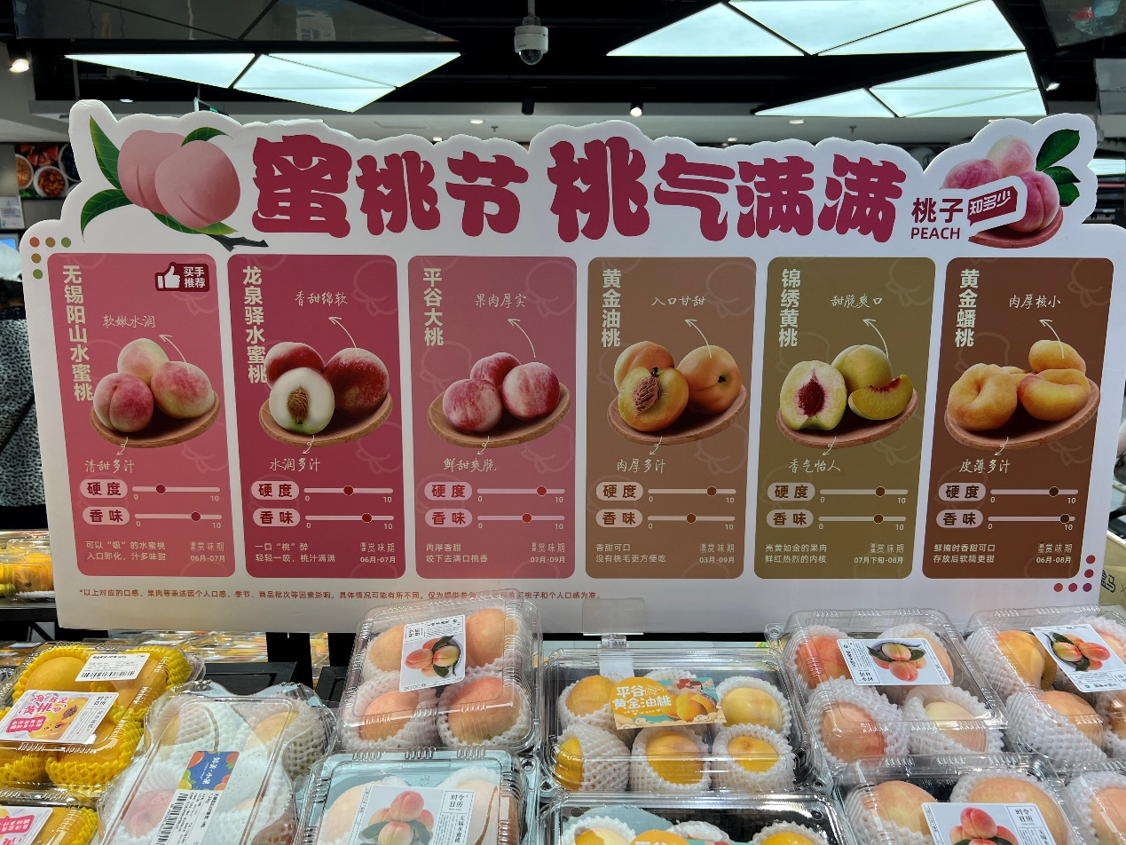近期首批“可軟可硬”的平谷桃被送上盒馬貨架,由于兼顧了北方桃的脆甜和南方水蜜桃的軟糯,一上市就受到市民青睞。 據(jù)介紹,除了這款“可軟可硬”的平谷桃,盒馬今年還將從云南、浙江、四川等二十多個(gè)產(chǎn)地引入鷹嘴桃、桃太萌、棗油桃、黃金蜜桃、新疆黃肉油桃等超過30多款不同品種的桃,豐富北京市民的果籃。由于選擇眾多,盒馬發(fā)布了桃子“硬度標(biāo)準(zhǔn)”,方便市民挑選。 圖說:盒馬推出桃“硬度標(biāo)準(zhǔn)”,顧客面對(duì)各個(gè)品種“有據(jù)可查” 記者在盒馬門店走訪時(shí)看到,店內(nèi)水果區(qū)域已經(jīng)擺上了桃子“硬度標(biāo)準(zhǔn)”展示牌。盒馬水果采購(gòu)經(jīng)理方銘表示,由于今年盒馬有30多款桃子售賣,產(chǎn)季集中時(shí),同時(shí)供應(yīng)的超過10種,讓不少消費(fèi)者都有了“選擇恐懼癥”。因此盒馬對(duì)桃子硬度進(jìn)行了分級(jí),共分為10個(gè)等級(jí),數(shù)字越大硬度越高!昂旭R工作人員通過品種、種植地等因素,集合十幾年的經(jīng)驗(yàn)做一個(gè)初步判斷,再配合專用的硬度儀,對(duì)每批桃進(jìn)行抽檢,再取平均值作為最終數(shù)值。” 對(duì)消費(fèi)者來說,喜歡咬一口“嘎嘣脆”的硬桃,可以選擇硬度超過8的品種,如北京的平谷桃、黃肉油桃!败浱摇钡挠捕戎刀荚4以下,陽山水蜜桃更是介于2-3之間,擁有“入口即化”的細(xì)膩口感。 圖說:盒馬 “可硬可軟”的平谷桃,已經(jīng)在北京門店上架 不過,也有一款新上市的平谷桃,可以在“硬度標(biāo)準(zhǔn)”表格中反復(fù)橫跳;叵嚓P(guān)負(fù)責(zé)人表示,大多數(shù)硬桃放置幾天后會(huì)變得不新鮮,甚至腐爛。但這款平谷桃在采摘之初,平均硬度在7.5-8左右;在陰涼通風(fēng)處以室溫儲(chǔ)存中,新品桃子會(huì)“繼續(xù)成熟”,完成最后的軟化。經(jīng)過2天左右的存放,硬度會(huì)降低到5以下,呈現(xiàn)水蜜桃的軟糯口感。 為了實(shí)現(xiàn)這種口感變化,北京金果豐果品產(chǎn)銷專業(yè)合作社經(jīng)過13年的土壤培育,將有機(jī)值含量提高了近3倍。三年前與北京農(nóng)林科學(xué)院合作,對(duì)桃樹進(jìn)行了培育。合作社負(fù)責(zé)人張海合表示,這款桃在傳統(tǒng)的平谷大桃上進(jìn)行嫁接、改良后,有機(jī)質(zhì)含量更高,在避光室溫保存幾天后,可以實(shí)現(xiàn)“硬桃變軟”。 |