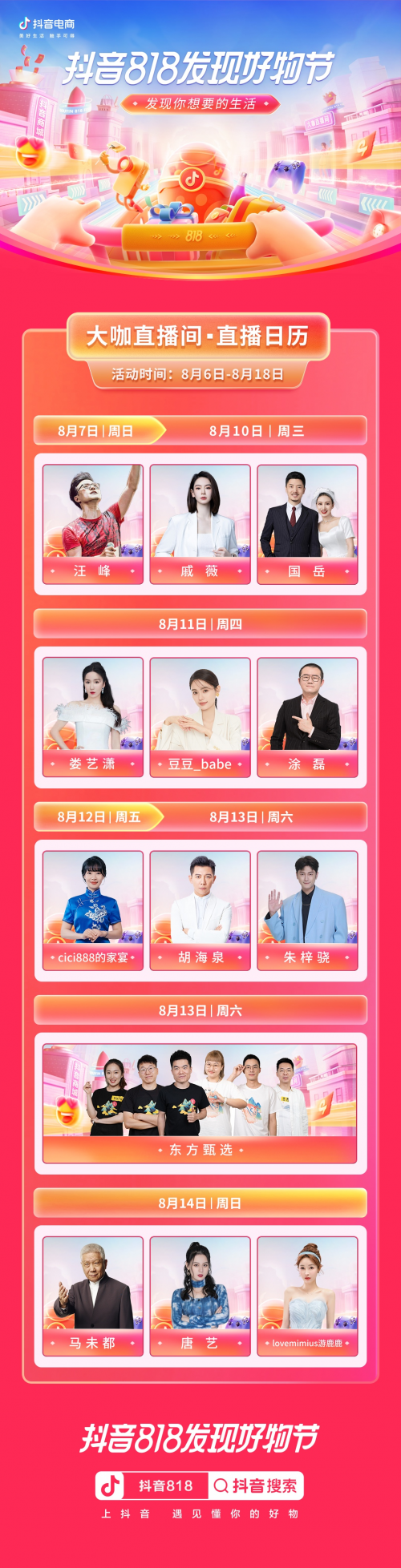 隨著全域興趣電商的發(fā)展,消費(fèi)者對(duì)“好物”的需求和消費(fèi)熱情持續(xù)上漲。“好物”不僅承載了現(xiàn)代社會(huì)人們對(duì)品質(zhì)生活的追求,也為人們帶來了使用功能之外的社交、情緒、文化、審美等多種價(jià)值,并因此爆發(fā)出很大的生意潛力。 基于對(duì)大眾消費(fèi)趨勢(shì)的洞察,抖音818發(fā)現(xiàn)好物節(jié)以“發(fā)現(xiàn)好物”為主題,通過扶持優(yōu)質(zhì)直播間、優(yōu)質(zhì)視頻內(nèi)容、抖音商城等形成全域興趣電商專屬特色,將更多優(yōu)價(jià)好物推薦給更多消費(fèi)者,并對(duì)特色貨品進(jìn)行補(bǔ)貼,為消費(fèi)者帶來心動(dòng)好物。其中好物直播間是活動(dòng)期間平臺(tái)重點(diǎn)扶持的直播間玩法,抖音電商為各行業(yè)符合條件的頭部作者/自播商家提供運(yùn)營(yíng)支持或貨品補(bǔ)貼,以及抖音818發(fā)現(xiàn)好物節(jié)活動(dòng)主會(huì)場(chǎng)及分會(huì)場(chǎng)的曝光露出等活動(dòng)權(quán)益,助力其在大促期間沖刺目標(biāo),實(shí)現(xiàn)躍遷。 自抖音818發(fā)現(xiàn)好物節(jié)上線以來,汪峰、戚薇、婁藝瀟、豆豆_babe、涂磊、cici888的家宴等大咖直播間陸續(xù)開播,為粉絲帶來了多品類優(yōu)價(jià)好物,并以各具特色的優(yōu)質(zhì)內(nèi)容助力優(yōu)價(jià)好物推廣。聯(lián)合利華、大希地、Mistine等品牌總裁也分別走進(jìn)自播間,分享多款品牌好物,并邀請(qǐng)品牌明星代言人助力直播,營(yíng)造出積極的互動(dòng)氛圍,為好物打call。抖音電商和巨量引擎、巨量算數(shù)、算數(shù)電商研究院還聯(lián)合制作了“抖音818百大好物”清單,揭曉了51款暢銷好物、35款潮流好物和14款哇塞好物。 圍繞“好物”打造特色內(nèi)容,大咖直播間助力品牌好物被更多用戶看見 大咖直播間是本次活動(dòng)重點(diǎn)扶持的直播間之一,抖音818發(fā)現(xiàn)好物節(jié)主會(huì)場(chǎng)會(huì)展示大咖直播間入口,同時(shí)也為達(dá)人定制了專屬的活動(dòng)頁(yè)面,多入口為其帶來流量曝光,并便于用戶預(yù)約/觀看直播。達(dá)人則會(huì)基于自身內(nèi)容風(fēng)格和產(chǎn)品特征打造特色場(chǎng)景,如通過短視頻預(yù)告直播間亮點(diǎn),和消費(fèi)者保持高頻次互動(dòng),直播間結(jié)合自身內(nèi)容特性講解品牌好物,持續(xù)吸引更多的粉絲涌入直播間,并通過超級(jí)福袋、平臺(tái)補(bǔ)貼等多重福利,進(jìn)一步激發(fā)消費(fèi)者購(gòu)買熱情,完成高效轉(zhuǎn)化。 以汪峰直播間為例,作為“818好物發(fā)現(xiàn)官”,汪峰在8月7日直播前發(fā)布了1條短視頻,以零基礎(chǔ)妙變大廚的秘密調(diào)動(dòng)起粉絲的好奇心,為直播間引流,其視頻所帶話題#給自己花錢找了一個(gè)正當(dāng)理由 還登上了抖音熱榜。在直播的過程中,汪峰不止于描述品牌優(yōu)勢(shì)、產(chǎn)品特征,還親自測(cè)試產(chǎn)品功能,如為了展示超能洗衣液的強(qiáng)去污能力,他以洗衣前后的對(duì)比增強(qiáng)用戶對(duì)產(chǎn)品的信任;為展示維達(dá)紙巾的韌性,他用紙巾將堆砌的磚塊托起,差異化的實(shí)驗(yàn)玩法讓消費(fèi)者快速了解產(chǎn)品優(yōu)勢(shì),激發(fā)其潛在興趣。 戚薇、婁藝瀟、豆豆_babe、涂磊、cici888的家宴等大咖直播間也在其專場(chǎng)直播前陸續(xù)發(fā)布了多個(gè)短視頻,逐步釋放直播信息,吸引用戶關(guān)注。如豆豆_babe作為美妝達(dá)人,以教粉絲護(hù)膚、化妝為出發(fā)點(diǎn)進(jìn)行選品組合,在8月11日的寵粉首播前發(fā)布了多期直播預(yù)告短視頻,包括彩妝篇、面膜篇、抗老篇、個(gè)護(hù)篇等,為粉絲劃重點(diǎn)。 直播期間,這些達(dá)人還為粉絲帶來了很多福利,如限時(shí)優(yōu)惠、低價(jià)折扣、買贈(zèng)福利、滿減等,配合主播券、超級(jí)福袋等平臺(tái)工具,以及平臺(tái)發(fā)放的全場(chǎng)景購(gòu)物紅包,為消費(fèi)者帶來實(shí)實(shí)在在的補(bǔ)貼與優(yōu)價(jià)好物。此外,平臺(tái)還通過“安心購(gòu)”權(quán)益產(chǎn)品為消費(fèi)者權(quán)益保駕護(hù)航,包括7天無理由退貨、正品保障、過敏包退、壞單包賠等多項(xiàng)服務(wù),攜手達(dá)人持續(xù)提升消費(fèi)者購(gòu)物體驗(yàn),進(jìn)一步提升轉(zhuǎn)化效率。 品牌“總裁”攜手明星直播,專業(yè)分享好物掀起品牌嘉年華互動(dòng)熱潮 除了達(dá)人直播,在抖音818發(fā)現(xiàn)好物節(jié)期間,眾多品牌“總裁”親自下場(chǎng)直播,嘗試更多的營(yíng)銷玩法,吸引了很多消費(fèi)者關(guān)注。一方面,品牌“總裁”作為最了解品牌及產(chǎn)品的人之一,能夠基于對(duì)品牌和產(chǎn)品的理解豐富直播內(nèi)容,拉近品牌和用戶之間的距離,同時(shí)“總裁”也是權(quán)威、品質(zhì)的象征,其所推薦的產(chǎn)品更容易獲得用戶信任;另一方面,品牌“總裁”走進(jìn)直播間總是伴隨著很大的優(yōu)惠力度和抽獎(jiǎng)福利,滿足用戶對(duì)優(yōu)價(jià)好物的需求。 此次活動(dòng),Amiro、大希地、妃魚、科沃斯、徠芬、Mistine、Olay、Ulike、五個(gè)女博士(按照拼音首字母排序)等品牌的總裁分別走進(jìn)直播間介紹品牌和產(chǎn)品信息,還有明星助陣,幫助用戶快速了解并獲取品牌好物。如,泰國(guó)明星yinwar