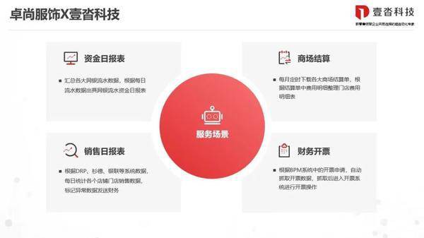 「一拍即合」 在企業(yè)數(shù)字化創(chuàng)新的道路上,品牌與拍檔如何坦誠相待、精誠合作在當(dāng)前營銷環(huán)境中顯得更為重要。Innovation Week 線上直播之「一拍即合」,重點關(guān)注品牌&拍檔中的“最佳好友”,邀請品牌與其服務(wù)商伙伴一同圍桌對談,聚焦?fàn)I銷數(shù)字化領(lǐng)域的創(chuàng)新案例與幕后故事展開探討。 十月,胖鯨邀請了卓尚服飾集團(tuán)數(shù)字化總監(jiān)桂益龍和他的服務(wù)商壹沓科技合伙人高慶軍一同進(jìn)行圓桌對談,探討超自動化平臺,如何幫助傳統(tǒng)服飾行業(yè)找到降本增效發(fā)力點以及以及針對傳統(tǒng)企業(yè)升級轉(zhuǎn)型創(chuàng)新的挑戰(zhàn)與機(jī)遇進(jìn)行深度探討。 圓桌嘉賓 卓尚服飾 x 壹沓科技:傳統(tǒng)服飾行業(yè)如何找到降本增效的發(fā)力點? 桂益龍 卓尚服飾集團(tuán)數(shù)字化總監(jiān) 國內(nèi)上市軟件公司 十年工作經(jīng)驗,歷任咨詢顧問、項目經(jīng)理;十五年香港上市服飾集團(tuán)信息負(fù)責(zé)人, 從0到1組建信息技術(shù)部門, 深入理解集團(tuán)戰(zhàn)略與業(yè)務(wù)發(fā)展策略, 精通財務(wù)和業(yè)務(wù)運營, 組織開發(fā)分銷POS、ERP、OMS系統(tǒng)、實施SAP系統(tǒng)和WMS系統(tǒng)、建立財務(wù)共享服務(wù)中心平臺,2016年搭建了服飾行業(yè)的第一個業(yè)務(wù)中臺,實現(xiàn)全渠道會員、商品一體化運營,2020年實施數(shù)據(jù)中臺項目,以數(shù)據(jù)驅(qū)動零售精準(zhǔn)營銷和商品高效運營。 個人理念:數(shù)字化與業(yè)務(wù)合作共創(chuàng),實現(xiàn)“創(chuàng)效益、提效率、控風(fēng)險、做閉環(huán)”的價值。 卓尚服飾 x 壹沓科技:傳統(tǒng)服飾行業(yè)如何找到降本增效的發(fā)力點? 高慶軍 壹沓科技合伙人 現(xiàn)擔(dān)任壹沓科技新零售事業(yè)部總經(jīng)理,為新零售客戶提供面向未來的數(shù)字化產(chǎn)品及服務(wù),通過壹沓超自動化平臺產(chǎn)品實現(xiàn)新零售客戶在財務(wù)、電商等多領(lǐng)域的業(yè)務(wù)超自動化,已向數(shù)千家新零售客戶提供服務(wù)。在toC及toB領(lǐng)域有著豐富的管理經(jīng)驗。 主持人 卓尚服飾 x 壹沓科技:傳統(tǒng)服飾行業(yè)如何找到降本增效的發(fā)力點? 范懌Ryan 胖鯨傳媒CEO 營銷媒體平臺胖鯨創(chuàng)始人,打造新時代營銷人首選知識服務(wù)平臺,助力企業(yè)在營銷創(chuàng)新過程中做更明智決策。 回顧內(nèi)容 從白酒走向冰淇淋,咖啡店走向預(yù)制菜和共享辦公,餐飲走向露營生意,那服裝行業(yè)應(yīng)該走向哪里……… 如何更好的適應(yīng)時代,并賦能整個服飾行業(yè),讓大家共同在數(shù)字化的道路上大步流星的向前走,是卓尚時刻問自己的問題。為了尋找這個答案,卓尚服飾與壹沓科技 “一拍即合” 開啟了數(shù)字化轉(zhuǎn)型之路。 卓尚服飾:杭派女裝的代表之一,創(chuàng)建于 1997 年,是一家集設(shè)計、生產(chǎn)、營銷、物流、信息化為一體的時尚產(chǎn)業(yè)公司。旗下現(xiàn)有 3COLOUR(三彩)、IBUDU(伊布都)、LEISURE、U&U 等多個知名服裝品牌,銷售網(wǎng)絡(luò)遍及全國 30 余個省、市、自治區(qū)。 卓尚服飾 x 壹沓科技:傳統(tǒng)服飾行業(yè)如何找到降本增效的發(fā)力點? 壹沓科技:與卓尚服飾相比,壹沓科技的歷史沒有這么長,是個僅成立 6 年的公司,但在這六年時間中,他們服務(wù)了上萬家企業(yè),一步步成為全球領(lǐng)先的數(shù)字機(jī)器人公司。聚焦前沿技術(shù)創(chuàng)造數(shù)字機(jī)器人,賦能用戶實現(xiàn)業(yè)務(wù)超自動化,構(gòu)建未來數(shù)智世界。目前,壹沓數(shù)字機(jī)器人已經(jīng)為近萬家品牌消費、零售、供應(yīng)鏈等企業(yè)提供數(shù)字化產(chǎn)品及服務(wù),助力企業(yè)數(shù)字化轉(zhuǎn)型。 卓尚服飾 x 壹沓科技:傳統(tǒng)服飾行業(yè)如何找到降本增效的發(fā)力點? 何為超自動化平臺:與賓館運用服務(wù)機(jī)器人節(jié)約人力成本相似,在壹沓科技看來,由于人口結(jié)構(gòu)變化,在未來,勞動力成本逐步呈上升趨勢。因此,為了節(jié)省成本,有些機(jī)械且容易出錯的項目可以交給超自動化平臺的機(jī)器人來完成,而在財務(wù)方面,快速、準(zhǔn)確、直觀顯得格外重要,因此財稅自動化平臺應(yīng)運而生。 超自動化平臺能為卓尚帶來什么? 0人工需求 100% 準(zhǔn)確性 5 倍效率提升 120% 及時性提升 這已不是卓尚與壹沓科技的第一次合作,早在上次合作中,兩個品牌就意識到,對于未來發(fā)展的共識已經(jīng)寫到了基因里。 在這第二次的合作中,壹沓科技主要目的就是將財稅自動化平臺運用到卓尚服飾的每日運營中,包括:資金日報表,銷售日報表,商場結(jié)算,以及財務(wù)開票。 不僅針對頭部企業(yè)在財稅方面的痛點,每個想要發(fā)展壯大走向未來的新銳企業(yè),財稅自動化平臺也能提供不少主力。 卓尚服飾 x 壹沓科技:傳統(tǒng)服飾行業(yè)如何找到降本增效的發(fā)力點? 數(shù)字機(jī)器人給卓尚帶來了什么 通過全產(chǎn)業(yè)鏈的協(xié)同,穩(wěn)坐服裝行業(yè)龍頭 不管外部環(huán)境多么惡劣,卓尚總能逆風(fēng)而上。在零售端的持續(xù)創(chuàng)新使得卓尚始終能有穩(wěn)定的增長。在供應(yīng)鏈端的快速反應(yīng),又讓卓尚可以最大程度的