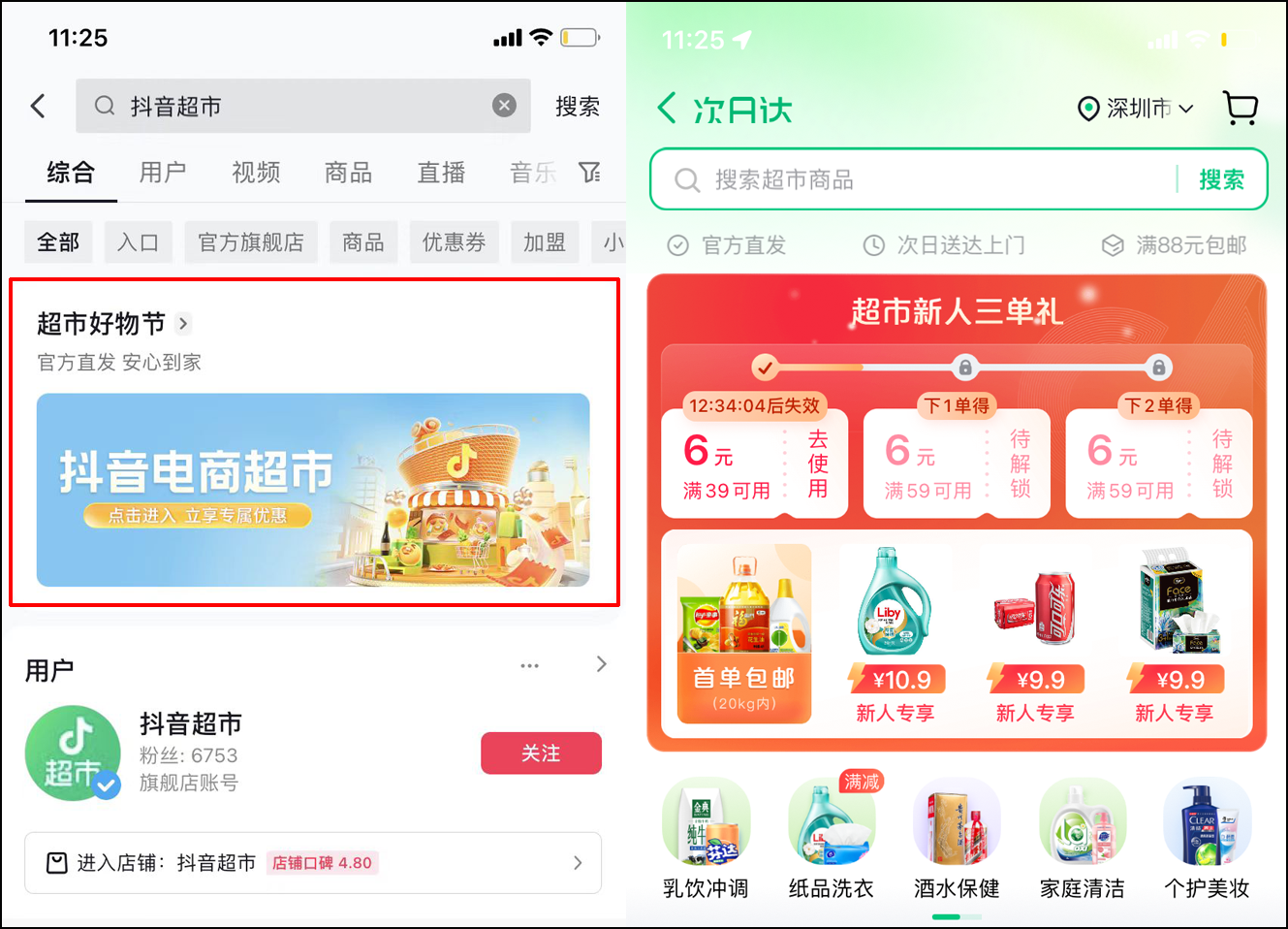 01 抖音超市正式上線 1月28日消息,抖音超市已上線抖音 App,用戶可以在抖音內(nèi)進(jìn)行線上超市的購(gòu)物體驗(yàn)。在搜索欄或購(gòu)物入口內(nèi)搜索“抖音超市”,即可進(jìn)入到抖音超市內(nèi)進(jìn)行購(gòu)物。 抖音超市的商品涵蓋:乳飲沖調(diào)、紙品洗衣、酒水保健、家庭清潔,以及個(gè)護(hù)美妝、零食糖巧、母嬰寵物、糧油速食、電器百貨等品類,幾乎覆蓋了除生鮮之外的全部超市品類,都為官方直發(fā),享受正品保障,用戶購(gòu)買后可以享受“當(dāng)日發(fā)”的配送服務(wù),滿88元包郵。 據(jù)了解,目前抖音超市推出了“春節(jié)不打烊”的活動(dòng),還推出了每日上新的“爆款秒殺”活動(dòng),并強(qiáng)調(diào)“真實(shí)補(bǔ)貼價(jià),安心買”、“不用比,就是 30 天最低”。 據(jù)Tech星球報(bào)道,行業(yè)人士分析,抖音超市是針對(duì)消費(fèi)客群差異所做的布局,而且根據(jù)目前用戶消費(fèi)習(xí)慣和趨勢(shì),線下購(gòu)買的客戶會(huì)逐步轉(zhuǎn)化成線上購(gòu)買,而且轉(zhuǎn)化速度在加快。 截至發(fā)稿,抖音方面對(duì)此未作出回應(yīng)。 02 抖音超市 與天貓超市、京東超市很相似 2022年下半年,抖音傳出正在布局線上超市的消息,廣州、深圳、惠州和東莞四個(gè)城市的部分消費(fèi)者可以在抖音商城中找到“超市”入口,在抖音超市中購(gòu)物。 據(jù)了解,抖音超市由抖音電商部門負(fù)責(zé)開發(fā)運(yùn)營(yíng),與抖音本地生活業(yè)務(wù)分屬兩個(gè)團(tuán)隊(duì)。也就是說,抖音超市屬于抖音電商旗下的業(yè)務(wù)。 在超市官方頁面中,目前抖音超市主打的核心體驗(yàn)有三個(gè),“官方直發(fā)”,“次日送達(dá)上門”,“滿88元包郵”。 從目前抖音超市頁面模式和提供的服務(wù)來看,目前的抖音超市,和天貓超市、京東超市都十分相似。 面對(duì)如此大的一個(gè)增量市場(chǎng),抖音電商化的趨勢(shì)早已確定。2022年抖音用戶數(shù)量在8.42億左右,日;钴S人數(shù)超過7億。截至2022年10月,抖音生活服務(wù)已經(jīng)覆蓋全國(guó)377個(gè)城市,整體交易金額同比去年增長(zhǎng)了30多倍。 其實(shí)2022年8月,抖音電商就曾在內(nèi)部宣布,未來將主要做商城和品牌,而超市就是商城和品牌的重要一步。而且抖音超市與抖音電商的方向是相輔相成的。 在業(yè)內(nèi)人士看來,抖音推出線上超市并不意外,超市屬于高頻消費(fèi)品類,很多品類屬于每周或者每個(gè)季度必須要購(gòu)買的易耗品,復(fù)購(gòu)率高,而且屬于標(biāo)品,有較大的發(fā)展?jié)摿Α?/div> 比如,洗衣液、洗發(fā)水、牙膏、零售等商品,標(biāo)準(zhǔn)化程度高,不需要過于依賴直播帶貨。抖音可通過運(yùn)營(yíng)超市品類提升電商的復(fù)購(gòu)率以及流量的變現(xiàn)效率,為區(qū)別于抖音小店商家,抖音超市打出了官方直發(fā)、正品保障和售后無憂的口號(hào)。 最后 資料顯示,北京字跳網(wǎng)絡(luò)技術(shù)有限公司在去年11月3日申請(qǐng)注冊(cè)“抖音超市”商標(biāo),國(guó)際分類為 41類,包括廣告銷售、教育娛樂等,目前,這枚商標(biāo)的狀態(tài)為申請(qǐng)中。 2022年以來,抖音一直在加速電商普及,尤其在物流配送方面下功夫。2022年8月,抖音與餓了么合作,為用戶提供物流配送服務(wù);9月,京東快遞、中通、圓通、韻達(dá)、順豐等接入抖音電商“音需達(dá)”服務(wù),將為抖音用戶提供送貨上門等高質(zhì)量配送服務(wù);12月,抖音與達(dá)達(dá)、順豐同城、閃送達(dá)成合作,提供“團(tuán)購(gòu)配送”服務(wù),逐步實(shí)現(xiàn)團(tuán)購(gòu)套餐“全城平均1小時(shí)達(dá)”。 不過,抖音想要靠電商“出圈”,不僅僅是流量,更需要構(gòu)建成熟、穩(wěn)健的供應(yīng)鏈,而這正是天貓、京東等傳統(tǒng)電商的“殺手锏”。 |
