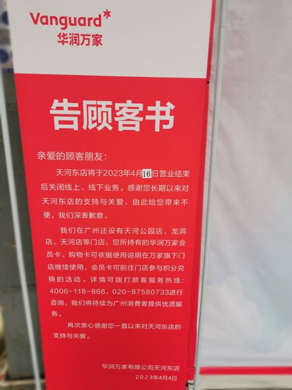 近日,華潤(rùn)萬(wàn)家廣州天河?xùn)|店發(fā)布《告顧客書》顯示,天河?xùn)|店將于2023年4月16日營(yíng)業(yè)結(jié)束后關(guān)閉線上、線下業(yè)務(wù)。 該店關(guān)閉后,我們?cè)趶V州還有天河公園店、龍洞店、天河店等門店,廣州還有二十多家店。您所持有的華潤(rùn)萬(wàn)家會(huì)員卡、購(gòu)物卡可依據(jù)使用說(shuō)明在萬(wàn)家旗下門店繼續(xù)使用。 至于為什么關(guān)店,華潤(rùn)萬(wàn)家方面回應(yīng)稱,撤場(chǎng)的原因是租約到期。并稱華潤(rùn)萬(wàn)家以后會(huì)向標(biāo)超發(fā)展,縮小面積,如天河公園還將開一家標(biāo)超。 圖來(lái)源:大眾點(diǎn)評(píng)。 日前,記者來(lái)到位于廣州天河南二路的華潤(rùn)萬(wàn)家天河?xùn)|店,門口貼著大幅海報(bào),“完美謝幕 感恩有你”,顯示從3月17日至4月17日,會(huì)員精選品類五折起。 圖片來(lái)源:小紅書博主@攝影師老林 該店一共有三層。一樓黃金柜臺(tái)正在清貨,二樓的絕大部分商品都有折扣,從五折到七折,一些貨架、冷柜已經(jīng)空了,三樓名品樂(lè)淘的售貨員說(shuō),所有商品在已打折基礎(chǔ)上再打六折,下月撤場(chǎng)。 在門店內(nèi)看到,到處掛著清倉(cāng)促銷的活動(dòng)海報(bào),5折、6折、7.2折,不同的商品貨架上,都標(biāo)注著打折的指示牌。 圖來(lái)源:大眾點(diǎn)評(píng)。 還有不少貨架已經(jīng)被清空了,有部分清空的冰柜也已經(jīng)搬走了。 圖來(lái)源:大眾點(diǎn)評(píng)。 資料顯示,2001年,華潤(rùn)萬(wàn)家在五羊新城開設(shè)第一家分店,2010年,華潤(rùn)萬(wàn)家在收購(gòu)宏城超市之后,成為廣佛地區(qū)最大的零售企業(yè),幾乎在每個(gè)社區(qū)都能看到它的身影。 近幾年來(lái),受疫情、租金、電商等沖擊,超市行業(yè)也不好過(guò),調(diào)整關(guān)店也是正,F(xiàn)象。其實(shí)華潤(rùn)萬(wàn)家早在2019年就開啟變革,同年1月推出萬(wàn)家MART亮相深圳,12月又推出萬(wàn)家LIFE在杭州、蘇州、無(wú)錫三地齊開;2020年12月31日,萬(wàn)家CITY全國(guó)首店開業(yè)… 目前,華潤(rùn)萬(wàn)家旗下?lián)碛腥A潤(rùn)萬(wàn)家、萬(wàn)家CITY、萬(wàn)家MART、萬(wàn)家LIFE、蘇果、Olé、blt等多個(gè)品牌,涵蓋大賣場(chǎng)、生活超市、便利超市、區(qū)域購(gòu)物中心等多種業(yè)態(tài)。 其中,華潤(rùn)萬(wàn)家、萬(wàn)家CITY均主打大賣場(chǎng)模式經(jīng)營(yíng),但在面積規(guī)模有所區(qū)分,萬(wàn)家CITY屬于賣場(chǎng)模式的升級(jí)品牌;萬(wàn)家MART、萬(wàn)家LIFE以大型超市的方式呈現(xiàn),滿足一定范圍的家庭生活超市服務(wù)需求;而Olé則定位體驗(yàn)式精品超市,探索中高消費(fèi)市場(chǎng)。 據(jù)華潤(rùn)萬(wàn)家官方數(shù)據(jù)顯示,截至2023年1月,華潤(rùn)萬(wàn)家已經(jīng)覆蓋112個(gè)地級(jí)以上城市,自營(yíng)門店總數(shù)超過(guò)3300家,實(shí)現(xiàn)銷售近800億元,注冊(cè)會(huì)員數(shù)達(dá)7000萬(wàn)。 |