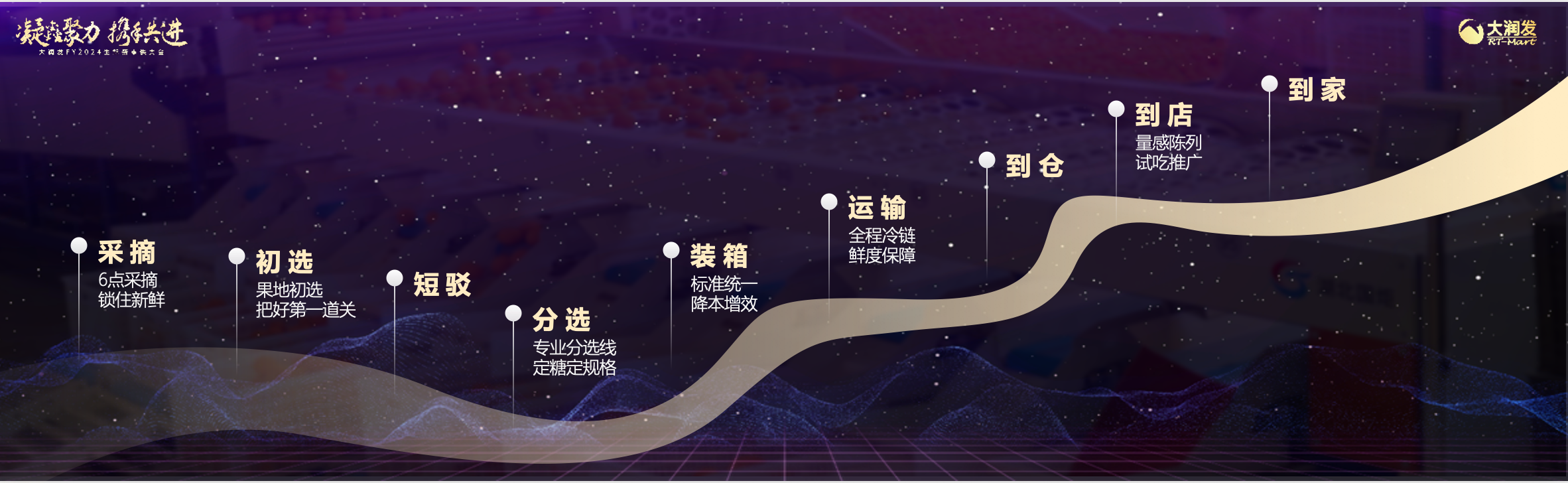 4月17日下午,在上海靜安體育中心,大潤發(fā)開啟了一場面向500多家供應商的生鮮新零供大會,這在大潤發(fā)26年的發(fā)展歷程中,尚屬首次。 其里程碑式的重要性不言而喻。大潤發(fā)CEO林小海將其與公司2024財年明確的第一戰(zhàn)略相關(guān)聯(lián):聚焦帶娃一族和灰發(fā)一族顧客,以質(zhì)價比為基礎(chǔ),打造健康快樂為用戶價值的差異化商品力。 在演講的開篇,他說在過去充滿挑戰(zhàn)的一年,大潤發(fā)跑贏了對手,在大賣場行業(yè)的市場份額增長了1.1%,達到28.6%。這是與合作伙伴共同達成的成績,未來大潤發(fā)需要與合作伙伴共同開發(fā)更多獨家差異化的好商品。 大潤發(fā)將給予該類商品分銷、陳列、營銷、內(nèi)容、試吃等全鏈路的支持,目標是在2024財年,差異化商品占比達到10%。這些獨家差異化的商品,既是為目標顧客度身定制的寶藏商品,也是為大潤發(fā)創(chuàng)造用戶價值和商業(yè)價值的寶藏商品。 差異化商品的更大發(fā)揮空間在自營的生鮮品類里。在大潤發(fā)生鮮商品總經(jīng)理林澄洲呈現(xiàn)的一幅大潤發(fā)生鮮圖鑒中,包含了蔬菜、水果、南北貨、水產(chǎn)、肉品、烘焙、熟食、米面點8大品類,覆蓋顧客一日四餐、一年四季、一家(好友)團圓(團聚)各種生活場景。 林澄洲說“新鮮、健康、好吃、質(zhì)價比”是大潤發(fā)打造生鮮商品力的關(guān)鍵詞,目前至少有10個生鮮單品銷量過億,有超500個單品銷售破千萬,其中不少是5000萬+規(guī)模級別的,這些組成了大潤發(fā)生鮮大單品矩陣。 他以瑞士卷為例,講述了大潤發(fā)從這個品類的后進者,之后歷時三個月,經(jīng)過八次配方調(diào)整、近千人次的盲測,最終上市并引發(fā)諸多好評與高復購率的原創(chuàng)荔浦芋泥瑞士卷的故事,呈現(xiàn)什么是大潤發(fā)的“菜”——被貼上清晰的大潤發(fā)標簽,并產(chǎn)生顧客口碑和心智。這只是其中一個縮影。 “生鮮就是和時間賽跑!贝鬂櫚l(fā)生鮮商品部總經(jīng)理特助季景丹說,鏈路越短越好,中間環(huán)節(jié)越少越好,從農(nóng)田到餐桌,從中央廚房到顧客手上的時間越短越好。而生鮮供應鏈效率是決定能否跑的更快的關(guān)鍵。 (一個沃柑從枝頭到餐桌的時間旅程) 她在會上首次披露了相關(guān)數(shù)據(jù),截至現(xiàn)在,大潤發(fā)在全國已經(jīng)建立了16個自營的軟硬件系統(tǒng)配套的生鮮倉,并且還在陸續(xù)籌備其它倉。生鮮倉網(wǎng)布局能夠服務全國450多家門店,日均吞吐量超過1000噸。 “我們希望和合作伙伴一起持續(xù)投入生鮮供應鏈能力建設(shè),提高商品品質(zhì)和價格競爭力。”林小海坦言,質(zhì)價比只是顧客去線下的必要條件,今天的大賣場只是提供商品買賣的用戶價值已經(jīng)很難比電商更高效,只有堅持在質(zhì)價比基礎(chǔ)上,創(chuàng)造超越線上對手的健康快樂的商品場景體驗服務的用戶價值,就像如今的電影院提供杜比聲、3D體驗,大潤發(fā)才有機會成為大賣場的iMax。 |