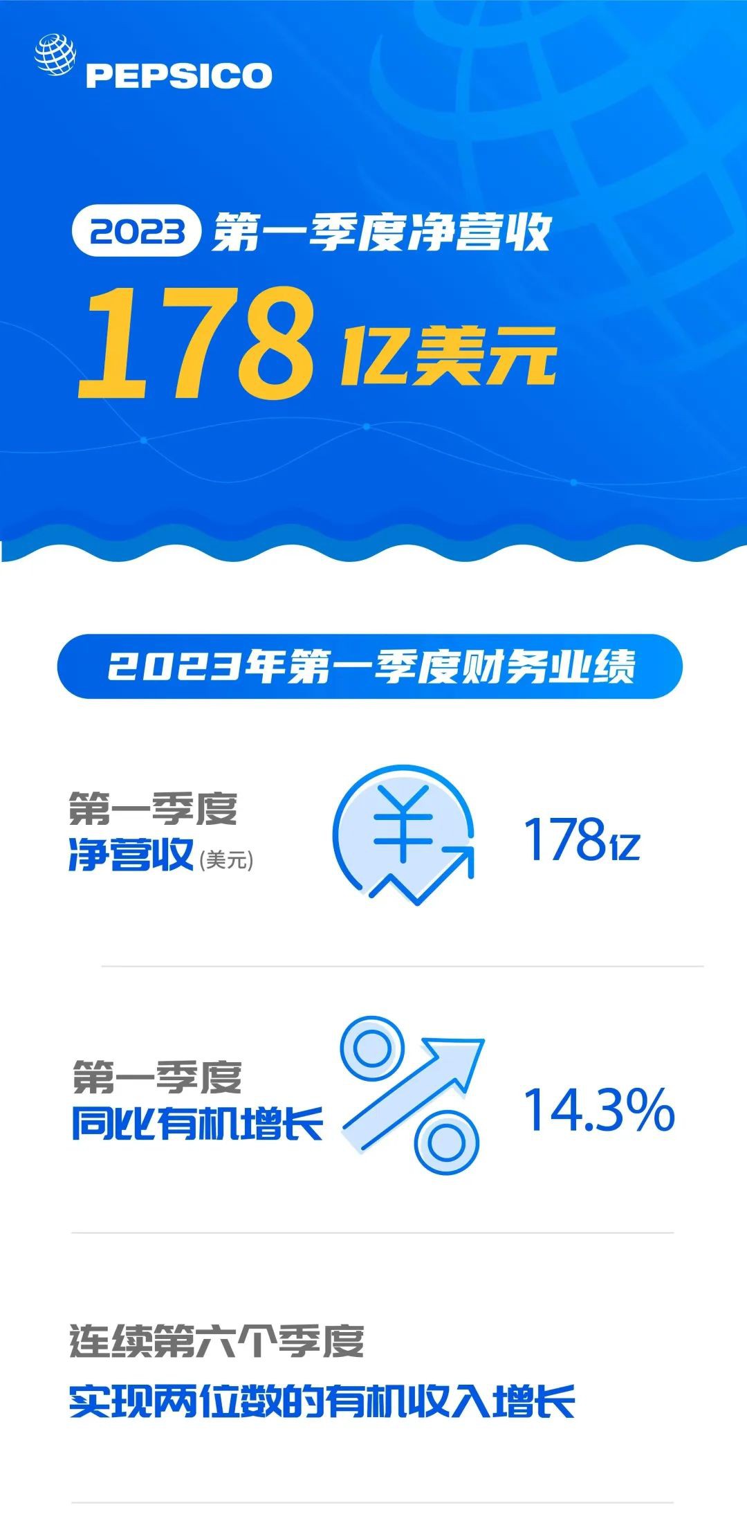 4月26日,百事公司公布2023年第一季度財(cái)務(wù)業(yè)績(jī)顯示,實(shí)現(xiàn)凈營(yíng)收178.46億美元,同比增長(zhǎng)10.2%,好于市場(chǎng)預(yù)期的172億美元,有機(jī)營(yíng)收同比增長(zhǎng)14.3%。鑒于開局強(qiáng)勁,百事公司預(yù)計(jì)2023年全年有機(jī)收入增長(zhǎng)為8%。 分業(yè)務(wù)來看,百事公司飲料業(yè)務(wù)的銷售量上升1%,食品部門的銷售量下降3%。所有類別的銷量下降2%,而價(jià)格則總體上升16%。百事可樂北美飲料公司的有機(jī)收入增長(zhǎng)12%,其中百事可樂實(shí)現(xiàn)兩位數(shù)的凈收入增長(zhǎng),佳得樂和Aquafina(百事旗下瓶裝水品牌)等品牌實(shí)現(xiàn)高個(gè)位數(shù)的凈收入增長(zhǎng)。 在銷售區(qū)域上,拉丁美洲業(yè)務(wù)營(yíng)收同比增長(zhǎng)21%,歐洲業(yè)務(wù)營(yíng)收同比增長(zhǎng)5%,非洲、中東和南亞業(yè)務(wù)營(yíng)收同比增長(zhǎng)2%,亞太、澳大利亞、新西蘭和中國(guó)區(qū)域營(yíng)收同比下降1%。 百事公司董事長(zhǎng)兼首席執(zhí)行官龍嘉德表示,“業(yè)績(jī)表明,我們?cè)凇偈抡钟?jì)劃’指導(dǎo)下成為更快、更強(qiáng)、更好的公司而進(jìn)行的投資,正在打造持久和可持續(xù)發(fā)展的基礎(chǔ)。我們將繼續(xù)投資員工、品牌、供應(yīng)鏈、市場(chǎng)策略和數(shù)字化舉措,以建立競(jìng)爭(zhēng)優(yōu)勢(shì)并贏得市場(chǎng)! |