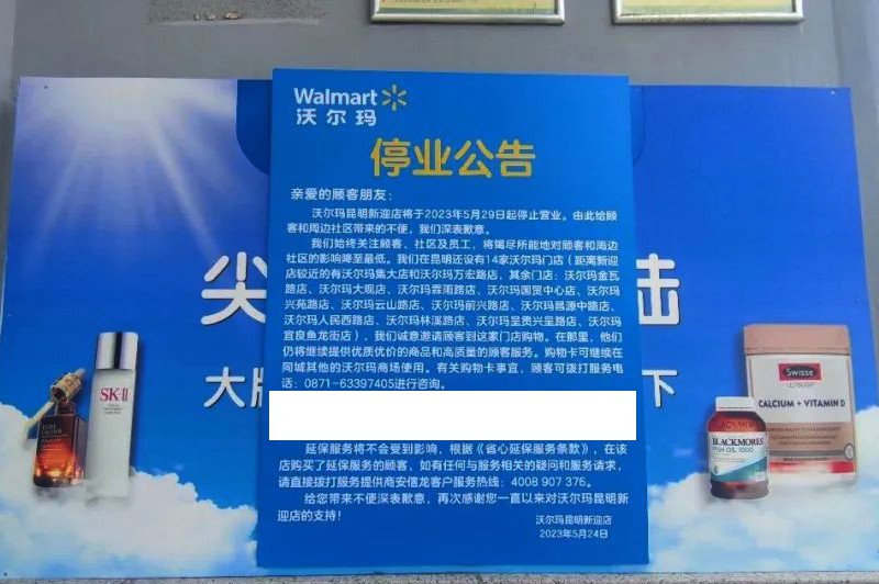 5月24日,沃爾瑪昆明新迎店發(fā)布《停業(yè)公告》。 公告稱,沃爾瑪昆明新迎店將于2023年5月29日起停止?fàn)I業(yè)。由此給顧客和周邊社區(qū)帶來(lái)的不便,我們深表歉意。 該店關(guān)閉后,沃爾瑪在昆明還有14家門店,分別是集大店、萬(wàn)宏路店、金瓦路店、大觀店、霖雨路店、國(guó)貿(mào)中心店、興苑路店、云山路店、前興路店、昌源中路店、人民西路店、林溪路店、呈貢興皇路店和宜良魚(yú)龍街店。 有關(guān)購(gòu)物卡事宜,可以繼續(xù)在同城其他的沃爾瑪商場(chǎng)使用,也可以撥打服務(wù)電話咨詢。 至于為何關(guān)店呢?據(jù)《昆明日?qǐng)?bào)》記者報(bào)道,停業(yè)原因是租期屆滿。 資料顯示,該店位于白龍路與新迎路交匯處,以前為好又多新迎店,于2011年改名為沃爾瑪昆明新迎店。 |