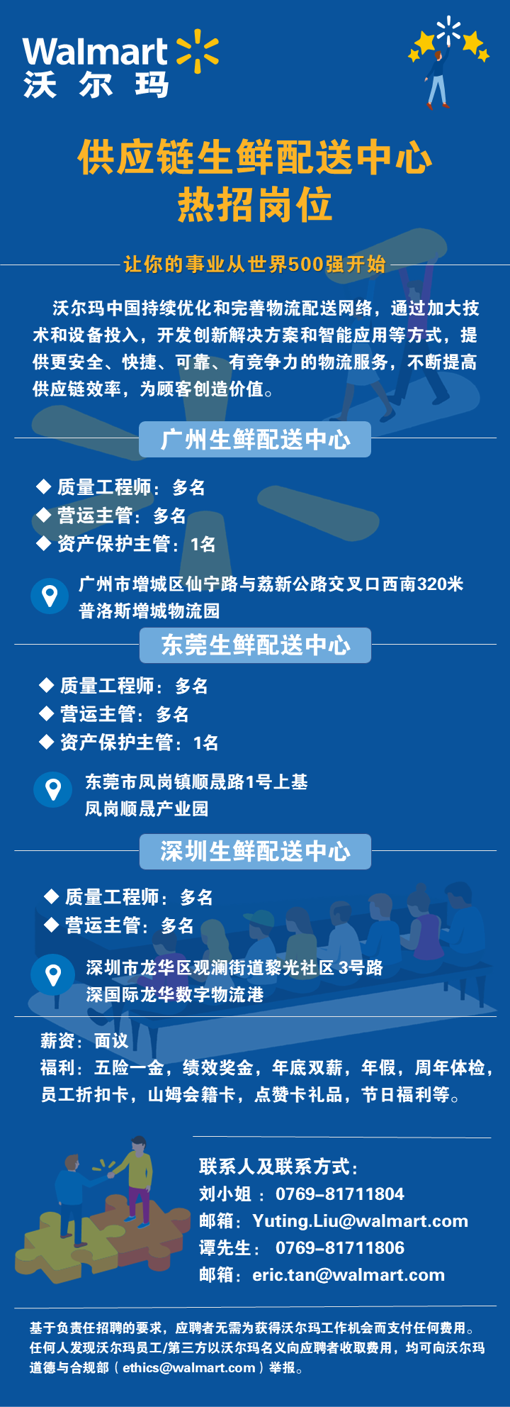 | 《職業(yè)零售網(wǎng)》獲悉,6月8日,沃爾瑪發(fā)布供應(yīng)鏈生鮮配送中心招聘信息,涉及廣州生鮮配送中心、東莞生鮮配送中心、深圳生鮮配送中心等多個城市,招聘質(zhì)量工程師、營運主管、資產(chǎn)保護主管等多個職位。 |