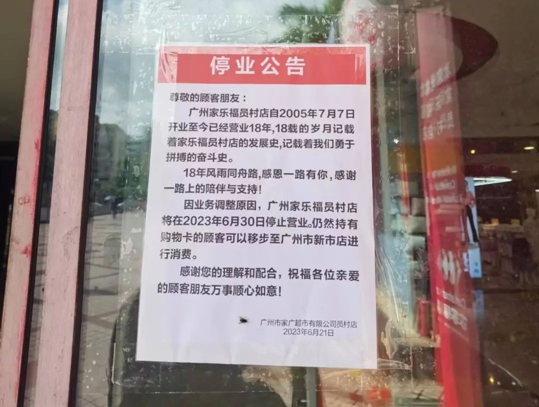 6月23日消息,家樂福廣州員村店發(fā)布停業(yè)公告,宣布將在6月30日停止營業(yè)。 公告稱,因業(yè)務(wù)調(diào)整原因,廣州家樂福員村店將在2023年6月30日停止營業(yè)。仍然持有購物卡的顧客可以移步廣州市新市店進行消費。 其實今年年初,家樂福中國在廣州就僅剩下3家門店。3月31日,家樂福廣州康王店正式關(guān)閉。如今,家樂福員村店也將月底停業(yè),這也意味著家樂福在廣州僅余新市店1家門店。 |