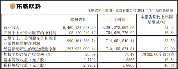 職業(yè)零售網(wǎng)獲悉,東鵬飲料發(fā)布2023年半年報(bào)顯示,實(shí)現(xiàn)營(yíng)業(yè)收入54.6億元,同比增長(zhǎng)27.24%;凈利潤(rùn)11.08億元,同比增長(zhǎng)46.84%。 公司的主營(yíng)業(yè)務(wù)為飲料的研發(fā)、生產(chǎn)及銷售,主要產(chǎn)品包括東鵬特飲、東鵬大咖、東鵬補(bǔ)水啦、包裝飲用水等,其中東鵬特飲是公司的核心產(chǎn)品。截至2023年6月底,公司經(jīng)銷商數(shù)量達(dá)2796家,銷售終端網(wǎng)點(diǎn)數(shù)量達(dá)330萬(wàn)家,同比增長(zhǎng)32%。 |