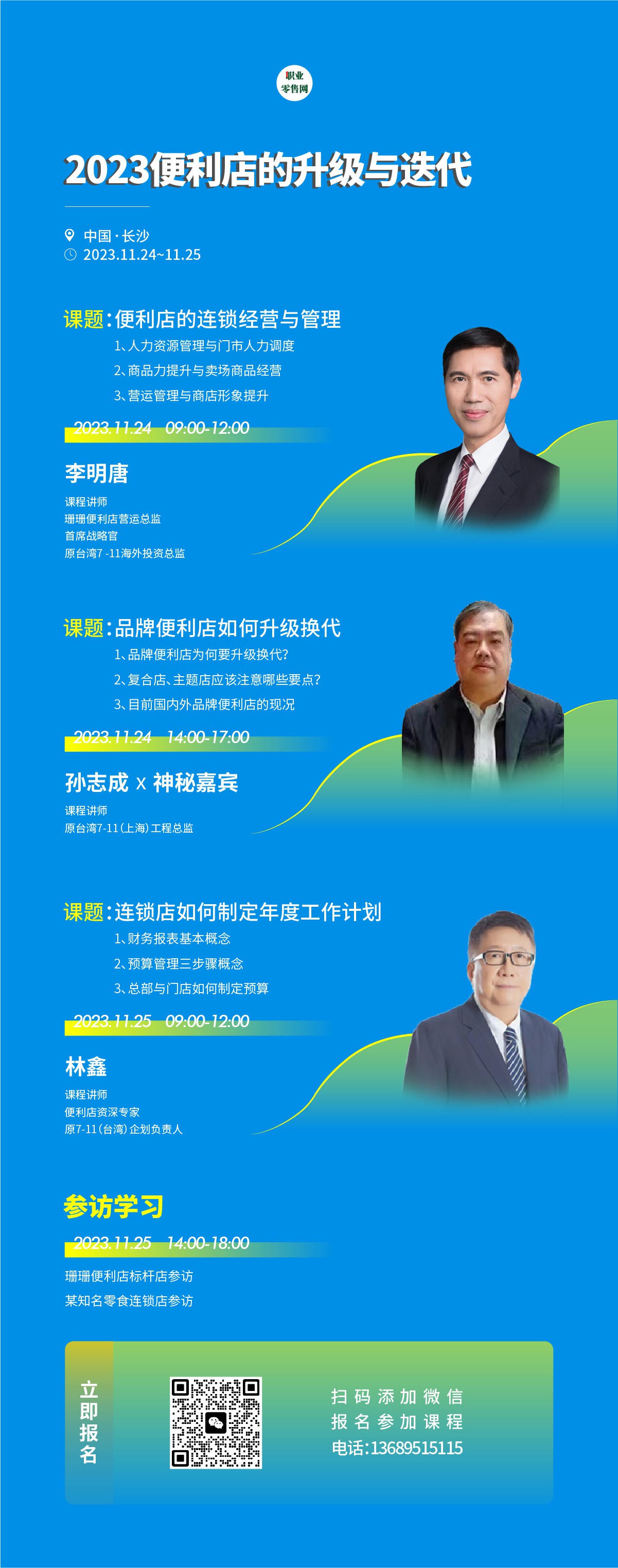 課程背景: 隨著網(wǎng)絡(luò)消費(fèi)興起和消費(fèi)者需求的轉(zhuǎn)變,國內(nèi)便利店市場也發(fā)生了巨大變化,很多便利店面臨著內(nèi)外雙重壓力。尤其是很多中高層管理者在工作中,找不到重點(diǎn),團(tuán)隊(duì)士氣低落,顧客流量減少,銷售業(yè)績也不斷下滑,每天總有干不完的工作,卻找不到解決辦法。如何提升管理者的解決問題能力已成為當(dāng)前企業(yè)亟待攻克的難題。 為了解決這一難題,我們引入了課程運(yùn)營創(chuàng)新的四維方式,結(jié)合品牌便利店的發(fā)展經(jīng)驗(yàn),同時結(jié)合同行品牌的發(fā)展經(jīng)驗(yàn),將枯燥的理論講解轉(zhuǎn)化為理論+案例+參訪等多維度課程。這一創(chuàng)新模式全方位解決了學(xué)員在學(xué)習(xí)過程中面臨的“聽不懂、想不到、做不了”的三大難題,使學(xué)員能夠真正解惑,所學(xué)能落地,從而徹底釋放內(nèi)心的潛能,徹底改變現(xiàn)狀。 課程亮點(diǎn): 1、特邀:連鎖便利店專家林老師擔(dān)任課程主講 2、邀請:珊珊便利店首席戰(zhàn)略官李總進(jìn)行主題分享 3、邀請:原臺灣7-11(上海)工程總監(jiān)孫老師進(jìn)行主題分享 4、課程:《抓住年輕消費(fèi)者——品牌便利店的升級與迭代》 5、訪店:參訪長沙珊珊便利店和湖南知名零食連鎖店的標(biāo)桿門店 課程時間: *時間:11月24-25日 *地址:湖南-長沙 課程對象: 董事長、總經(jīng)理、各部門中高層領(lǐng)導(dǎo) 課程方式: 主題講授+案例分享+門店參訪 解決如下具體問題: 1、如何做好人力資源與門店人員管理? 2、如何提升賣場的商品經(jīng)營能力? 3、如何做好門店的形象提升? 4、為什么要對門店及時升級換代? 5、做復(fù)合店、主題店時注意哪些要點(diǎn)? 6、制定預(yù)算管理的三大步驟? 7、連鎖門店如何制定年度工作計(jì)劃? 8、總部與門店如何制定季度、年度預(yù)算? 課程收益: 通過科學(xué)地規(guī)劃和預(yù)算,提升門店運(yùn)營管理,重塑門店形象,提升門店的客流,推動門店持續(xù)發(fā)展。 歡迎企業(yè)管理人員報(bào)名學(xué)習(xí),課程內(nèi)容詳情見海報(bào)! 課程須知: 課程費(fèi)用:2980元/人,3人及以上團(tuán)隊(duì)報(bào)名1980元/人(含培訓(xùn)費(fèi)、資料費(fèi)、會場費(fèi)、巡店交通費(fèi))。凡是在11月1日前報(bào)名并付款者贈送督導(dǎo)手冊資料一本(紙質(zhì)版本,現(xiàn)場領(lǐng)。,僅20本送完為止。 授課時間:2023年11月24-25日(2天) 報(bào)名截止:2023年11月15日 課程地點(diǎn):長沙三星級酒店以上(具體地址見報(bào)名通知書) |