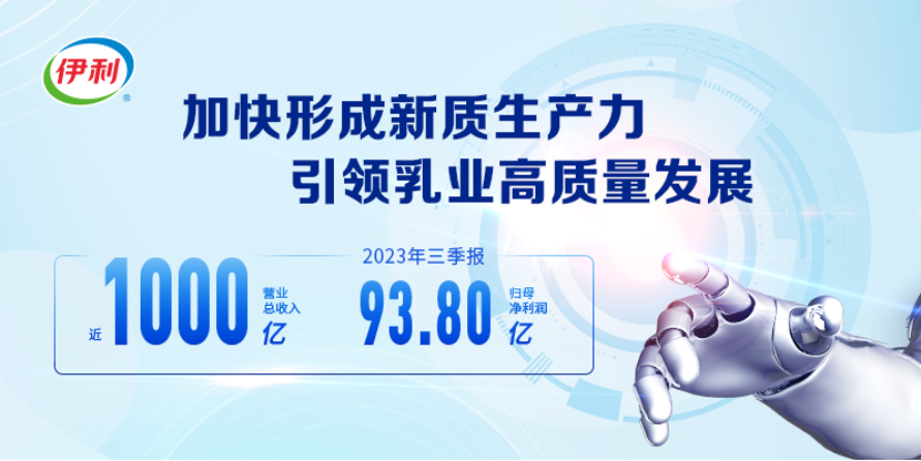 10月30日,伊利股份發(fā)布2023年三季報。 報告期內(nèi),前三季度公司實現(xiàn)營業(yè)收入970.91億元,同比增長3.84%;實現(xiàn)歸母凈利潤93.8億元,同比增長16.36%。第三季度,伊利營收311.09億元,同比增長2.71%;凈利潤實現(xiàn)30.75億元,同比增長59.44%。公司指出,報告期內(nèi)創(chuàng)新成果轉(zhuǎn)化提速,上市多款健康新品,收獲市場積極反饋,營收和凈利也再創(chuàng)歷史新高,核心經(jīng)營能力持續(xù)提升。 伊利液奶業(yè)務(wù)穩(wěn)居行業(yè)第一,并呈現(xiàn)出逐“季”走強趨勢。1-9月,液態(tài)奶營收654.32億元,同比增長2.07%,第三季度增速達8.48%。常溫白奶市占率提升至43.4%,穩(wěn)居行業(yè)第一,以金典品牌為代表的高端白奶實現(xiàn)雙位數(shù)增長。 奶粉及奶制品營收199.22億元,奶粉市場份額逆勢增長領(lǐng)跑行業(yè),成人奶粉保持快速增長,市占率提升至23.9%,繼續(xù)遙遙領(lǐng)先;冷飲業(yè)務(wù)營業(yè)收入103.83億元,持續(xù)高速增長,市占份額穩(wěn)居行業(yè)第一。 在消費弱復蘇的大環(huán)境下,公司堅持以消費者為中心,主動求新求變。報告期,公司基于關(guān)鍵技術(shù)突破的創(chuàng)新產(chǎn)品一再“引爆市場”,全鏈數(shù)智化賦能下整體運營效率顯著提升,正在形成強勁活躍的“新質(zhì)生產(chǎn)力”,新的競爭優(yōu)勢助推公司經(jīng)營業(yè)績持續(xù)增長,也將為行業(yè)高質(zhì)量發(fā)展開辟新的路徑。 數(shù)據(jù)可見,“數(shù)智化”技術(shù)的應(yīng)用正在大力提升公司運營效率、降低成本。推動全產(chǎn)業(yè)鏈數(shù)智化轉(zhuǎn)型以來,公司端到端的產(chǎn)品創(chuàng)新周期縮短20%,間接采購效率提升40%,采購成本對比市場下降10%,整體采購成本對比行業(yè)市場一直保持5%到7%左右的優(yōu)勢。 在終端,“數(shù)智化”的全面賦能,帶來消費新體驗的同時,也在催化新一波品牌紅利。作為杭州亞運會官方乳制品獨家供應(yīng)商,圍繞亞運營銷,公司以AIGC技術(shù)輔助包裝設(shè)計,推出多款亞運定制裝純牛奶,成功搶占亞運營銷制高點,助力公司終端銷量迎來小高潮。在“2023全球最具價值乳品品牌10強”榜單中,伊利以124億美元品牌價值位列第一位,品牌價值較去年增長17%,連續(xù)四年位居全球乳業(yè)第一。 |