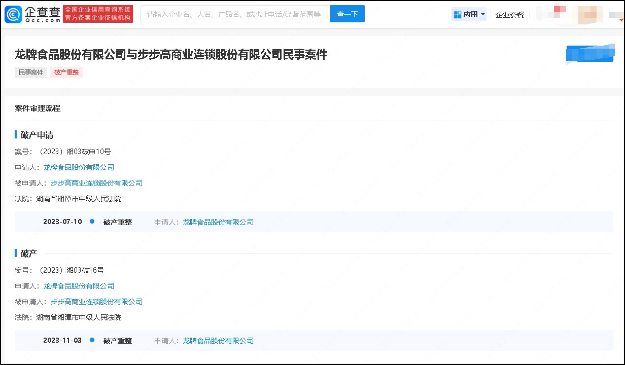 企查查APP顯示,11月3日,步步高(002251)新增一則破產(chǎn)案件,申請(qǐng)人為龍牌食品股份有限公司,經(jīng)辦法院為湖南省湘潭市中級(jí)人民法院。 今年7月,龍牌食品申請(qǐng)對(duì)步步高公司進(jìn)行破產(chǎn)審查。近日,湘潭市中級(jí)人民法院發(fā)布裁定書(shū)顯示,法院召開(kāi)聽(tīng)證會(huì),步步高公司對(duì)龍牌食品申請(qǐng)其重整沒(méi)有異議。本著及時(shí)挽救企業(yè)、維護(hù)債權(quán)人合法權(quán)益的原則,法院確定對(duì)步步高公司啟動(dòng)預(yù)重整,期限至2023年11月16日。 根據(jù)步步高公司2022年年度報(bào)告,其本部資產(chǎn)總額399.70億元,負(fù)債總額341.06億元。被申請(qǐng)人步步高公司不能清償?shù)狡趥鶆?wù),且明顯缺乏清償能力,符合破產(chǎn)重整條件。最終,法院裁定受理龍牌食品對(duì)步步高公司的重整申請(qǐng)。 |