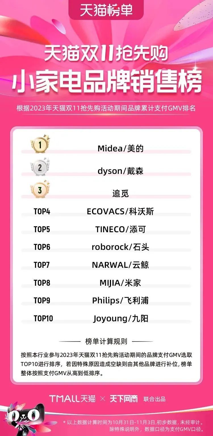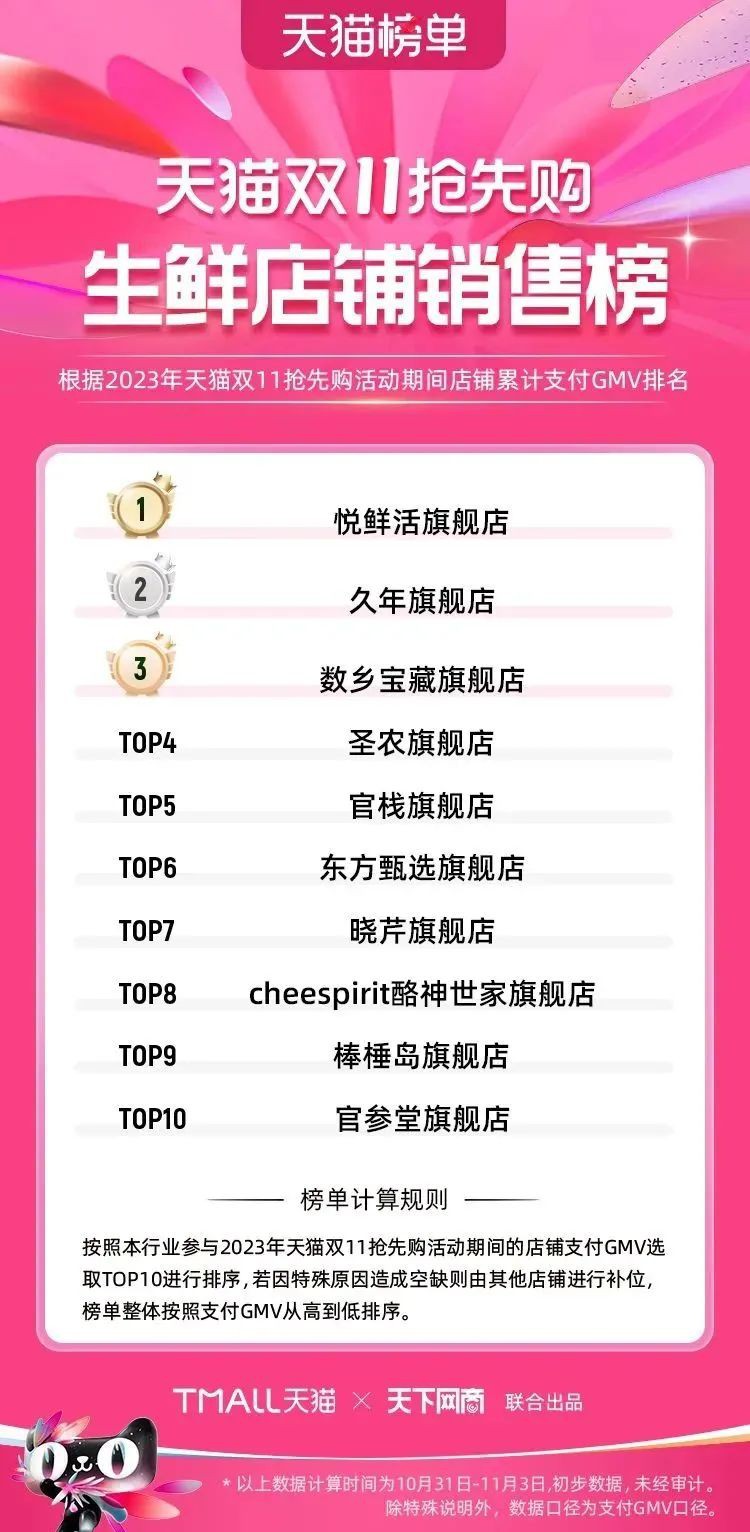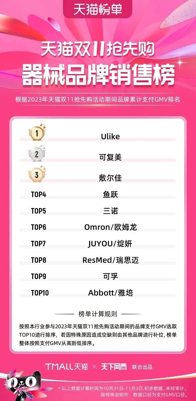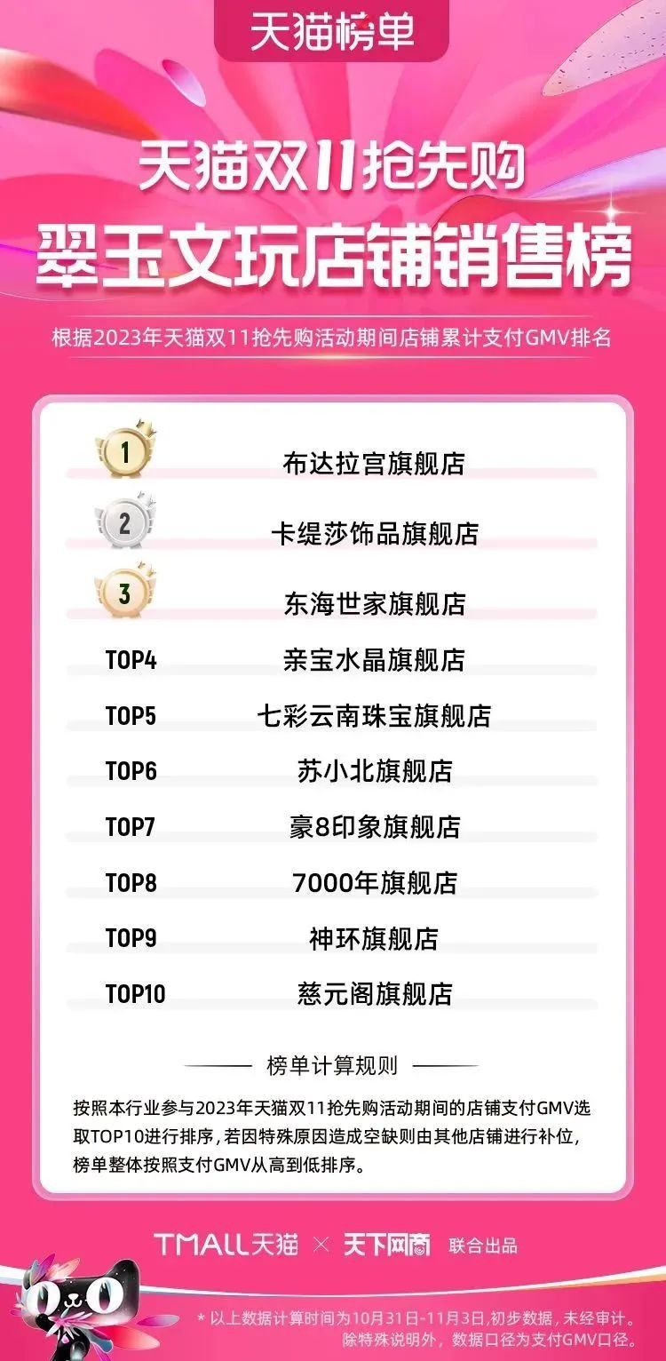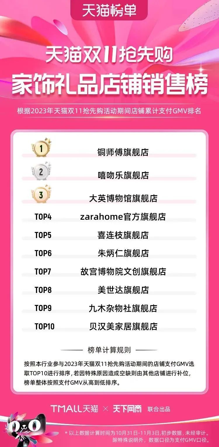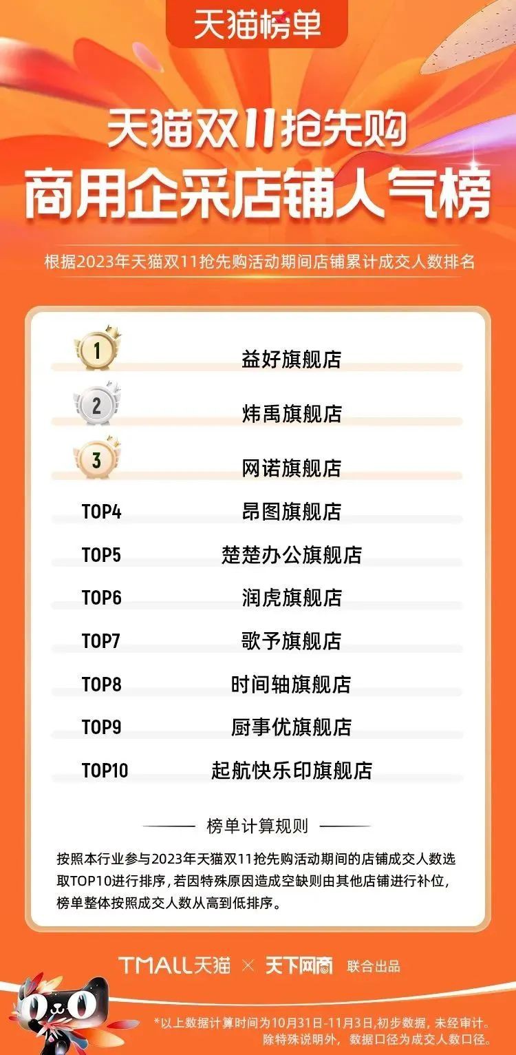 2023年天貓雙11強(qiáng)勁開局,第一波剛開售155個(gè)品牌開賣成交即破億,開售首小時(shí)7.19萬(wàn)個(gè)品牌成交額超去年首日全天。 11月4日,天貓雙11發(fā)布第一階段(10月31日-11月3日)品牌商家成交金額排行榜及品牌商家成交人數(shù)排行榜,大快消、服飾、運(yùn)動(dòng)戶外、消費(fèi)電子、家裝家居、玩具潮玩、食品生鮮、汽車等行業(yè)的“領(lǐng)跑者”出爐。 星圖最新數(shù)據(jù)顯示,2023年雙11正式開售首日,淘寶天貓份額占比近6成,市場(chǎng)份額相比去年進(jìn)一步擴(kuò)大。此外,QuestMobile數(shù)據(jù)顯示,2023年10月24日雙11預(yù)售當(dāng)天,淘寶APP活躍用戶數(shù)達(dá)5.07億,為行業(yè)第一,DAU同比增幅超5%。 作為品牌線上經(jīng)營(yíng)的主陣地,天貓雙11前,天貓投入總額20億的“真金白銀”,用于品牌商家經(jīng)營(yíng)激勵(lì),支持品牌以最小的投入,獲得最大的增長(zhǎng)。 以下為天貓雙11第一階段(10月31日-11月3日)榜單: 快消銷售榜 快消人氣榜 服飾時(shí)尚銷售榜 服飾時(shí)尚人氣榜 運(yùn)動(dòng)戶外銷售榜 運(yùn)動(dòng)戶外人氣榜 消費(fèi)電子銷售榜 消費(fèi)電子人氣榜 家裝家居銷售榜 家裝家居人氣榜 玩具潮玩銷售榜 玩具潮玩人氣榜 香氛香薰銷售榜 香氛香薰人氣榜 寵物銷售榜 寵物人氣榜 食品銷售榜 食品人氣榜 汽車人氣榜 汽車銷售榜 生鮮銷售榜 生鮮人氣榜 文教銷售榜 文教人氣榜 珠寶飾品銷售榜 珠寶飾品人氣榜 企業(yè)服務(wù)銷售榜 企業(yè)服務(wù)人氣榜 健康銷售榜 |