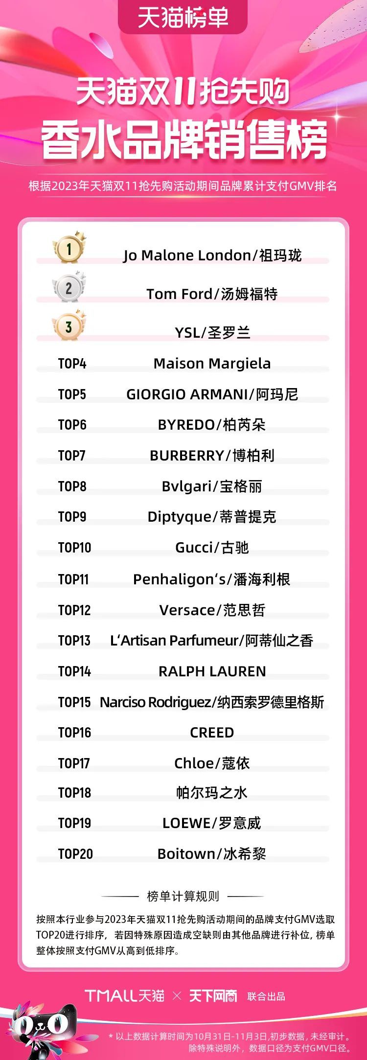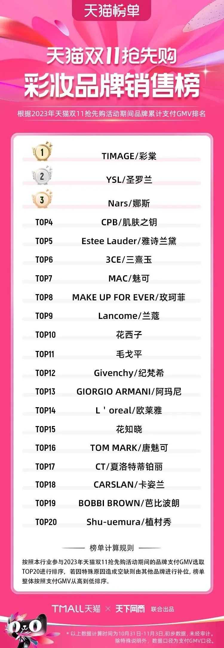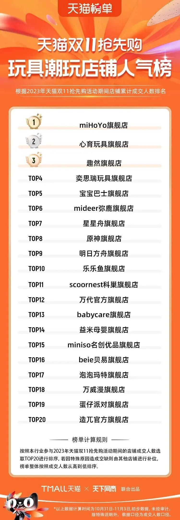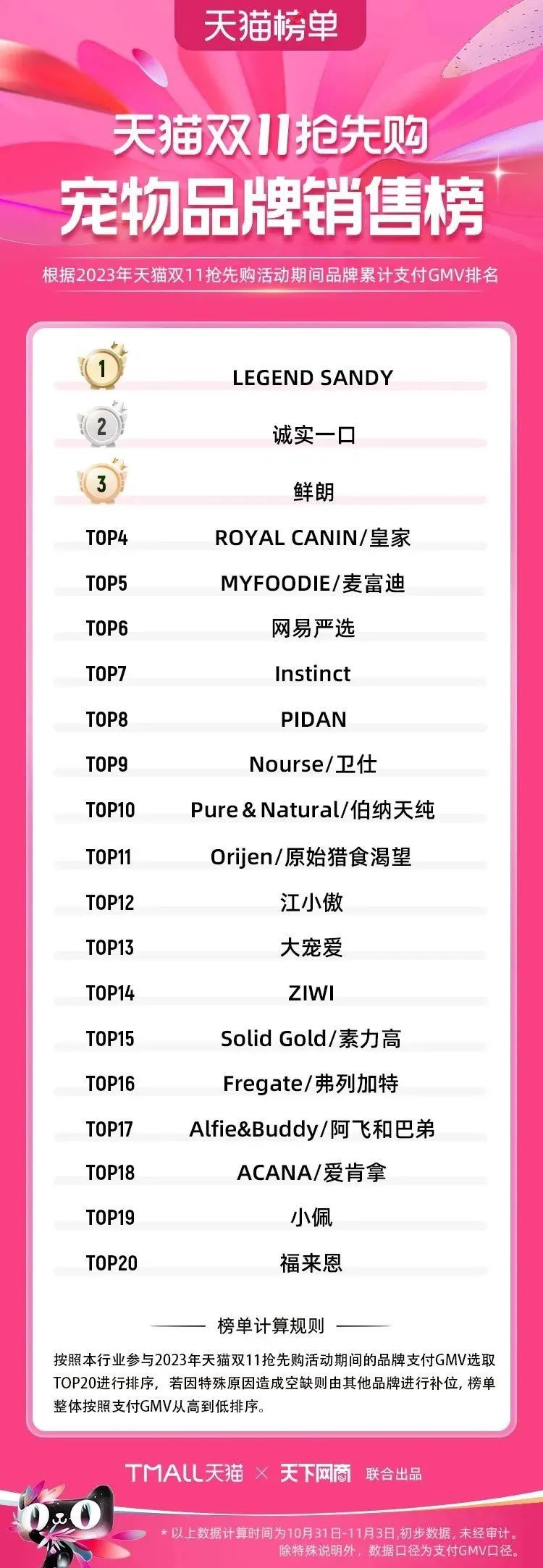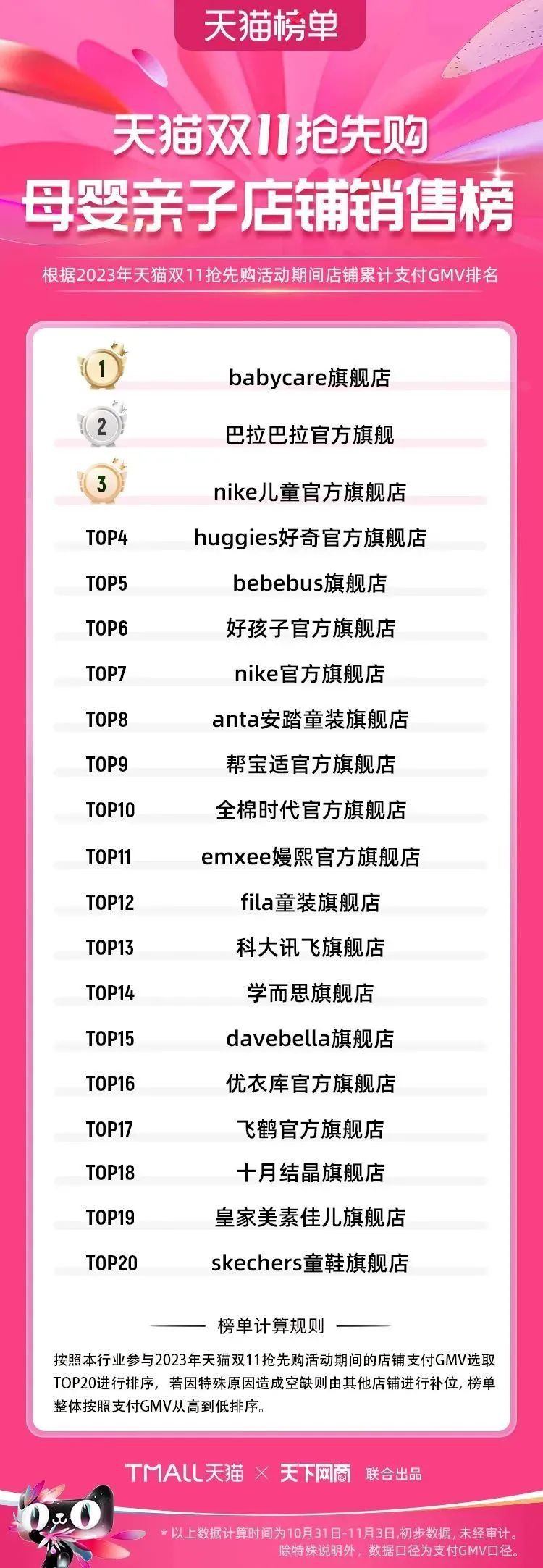 2023年天貓雙11強(qiáng)勁開局,第一波剛開售155個(gè)品牌開賣成交即破億,開售首小時(shí)7.19萬(wàn)個(gè)品牌成交額超去年首日全天。 11月4日,天貓雙11發(fā)布第一階段(10月31日-11月3日)品牌商家成交金額排行榜及品牌商家成交人數(shù)排行榜,大快消、服飾、運(yùn)動(dòng)戶外、消費(fèi)電子、家裝家居、玩具潮玩、食品生鮮、汽車等行業(yè)的“領(lǐng)跑者”出爐。 星圖最新數(shù)據(jù)顯示,2023年雙11正式開售首日,淘寶天貓份額占比近6成,市場(chǎng)份額相比去年進(jìn)一步擴(kuò)大。此外,QuestMobile數(shù)據(jù)顯示,2023年10月24日雙11預(yù)售當(dāng)天,淘寶APP活躍用戶數(shù)達(dá)5.07億,為行業(yè)第一,DAU同比增幅超5%。 作為品牌線上經(jīng)營(yíng)的主陣地,天貓雙11前,天貓投入總額20億的“真金白銀”,用于品牌商家經(jīng)營(yíng)激勵(lì),支持品牌以最小的投入,獲得最大的增長(zhǎng)。 以下為天貓雙11第一階段(10月31日-11月3日)榜單: 快消銷售榜 快消人氣榜 服飾時(shí)尚銷售榜 服飾時(shí)尚人氣榜 運(yùn)動(dòng)戶外銷售榜 運(yùn)動(dòng)戶外人氣榜 消費(fèi)電子銷售榜 消費(fèi)電子人氣榜 家裝家居銷售榜 家裝家居人氣榜 玩具潮玩銷售榜 玩具潮玩人氣榜 香氛香薰銷售榜 香氛香薰人氣榜 寵物銷售榜 寵物人氣榜 食品銷售榜 食品人氣榜 汽車人氣榜 汽車銷售榜 生鮮銷售榜 生鮮人氣榜 文教銷售榜 文教人氣榜 珠寶飾品銷售榜 珠寶飾品人氣榜 企業(yè)服務(wù)銷售榜 企業(yè)服務(wù)人氣榜 健康銷售榜 |