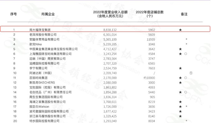 本文來源 / 柳先說 2022年中國時(shí)尚零售冠軍——周大福珠寶集團(tuán)。 中國連鎖經(jīng)營協(xié)會(CCFA)在前不久公布了“中國時(shí)尚零售與時(shí)尚消費(fèi)TOP100”,相關(guān)數(shù)據(jù),按照企業(yè)去年度旗下主營品牌、營業(yè)收入總額和店鋪總數(shù)匯總統(tǒng)計(jì)并整理形成本榜單。下面簡單來盤點(diǎn)上榜的企業(yè),來看看哪家企業(yè)能稱得上是中國的“時(shí)尚之王”。 中國時(shí)尚零售與時(shí)尚消費(fèi)榜單26-30名:珀萊雅化妝品、贏家時(shí)尚、雅戈?duì)柤瘓F(tuán)、云南貝泰妮生物科技集團(tuán)以及水羊集團(tuán)。排在第27名的贏家時(shí)尚,旗下品牌包括有Koradior、La Koradior、CADIDL以及elsewhere等,去年?duì)I收總額約56.63億,門店數(shù)超過了2000家。是一家具有獨(dú)特品牌文化理念、先進(jìn)研發(fā)設(shè)計(jì)中心、高效物流配送和網(wǎng)絡(luò)管理體系的輕奢時(shí)尚集團(tuán)。旗下多個品牌先后受邀登陸米蘭時(shí)裝周、紐約時(shí)裝周展現(xiàn)中國品牌魅力。 中國時(shí)尚零售與時(shí)尚消費(fèi)榜單21-25名:六福集團(tuán)、周大生珠寶、寧波太平鳥時(shí)尚服飾、上海家化聯(lián)合股份以及361度國際。太平鳥排在榜單的第23名,旗下品牌包括有太平鳥女裝、太平鳥男裝、太平鳥童裝以及COPPOLELLA等,去年?duì)I收總額約86億元,門店數(shù)為4671家。各品牌在目標(biāo)消費(fèi)群、品牌定位及品牌風(fēng)格等方面錯位互補(bǔ),滿足多元化的消費(fèi)需求。 中國時(shí)尚零售與時(shí)尚消費(fèi)榜單16-20名:海瀾之家集團(tuán)、屈臣氏、波司登、浙江森馬服飾以及特步。海瀾之家集團(tuán)排在榜單第16名,旗下品牌有海瀾之家、黑鯨、男生女生、圣凱諾以及海瀾優(yōu)選等,去年?duì)I收總額約176.86億元,門店數(shù)為8219家。主打品牌海瀾之家,經(jīng)歷二十年打磨,已經(jīng)從“男人的衣柜”轉(zhuǎn)變?yōu)椤胺b國民品牌”。 中國時(shí)尚零售與時(shí)尚消費(fèi)榜單11-15名:百麗時(shí)尚集團(tuán)、斯凱奇、寶勝國際、名創(chuàng)優(yōu)品以及周生生集團(tuán)。百麗時(shí)尚集團(tuán)排在榜單第11名,旗下運(yùn)營的品牌有BELLE、STACCATO、73Hours等,去年?duì)I收總額約217億元,門店數(shù)為1萬家。手握的品牌覆蓋女鞋、男鞋和童鞋以及服裝、包袋和配飾等品類,深耕時(shí)尚鞋服行業(yè)數(shù)十年,已建立以消費(fèi)者為中心的垂直一體化業(yè)務(wù)模式。 中國時(shí)尚零售與時(shí)尚消費(fèi)榜單6-10名:上海豫園珠寶時(shí)尚集團(tuán)、迅銷(中國)、滔搏國際控股、李寧以及阿迪達(dá)斯(中國)。排在榜單第9名的李寧,旗下品牌有李寧、李寧YOUNG以及紅雙喜,去年?duì)I收總額約253.5億元,門店數(shù)為7603家。擁有完善的研發(fā)、設(shè)計(jì)、制造、經(jīng)銷及零售運(yùn)營能力,主要經(jīng)營李寧品牌專業(yè)及休閑運(yùn)動鞋、服裝、器材和配件產(chǎn)品業(yè)務(wù),已建立起領(lǐng)先的全渠道銷售網(wǎng)絡(luò)和完善的供應(yīng)鏈管理體系,并在電商生態(tài)與數(shù)字化領(lǐng)域持續(xù)布局和突破。 中國時(shí)尚零售與時(shí)尚消費(fèi)榜單前五名:周大福珠寶集團(tuán)、老鳳祥、安踏體育用品、耐克以及中國黃金集團(tuán)黃金珠寶股份。周大福珠寶集團(tuán)位居榜首,去年?duì)I收總額約828.87億元,門店數(shù)為7404家。旗下主營品牌有周大福珠寶、MONOLOGUE以及ENZO等。周大福品牌有著九十多年的發(fā)展歷史,以產(chǎn)品設(shè)計(jì)、品質(zhì)與價(jià)值而聞,提供多元化的產(chǎn)品、服務(wù)和銷售渠道,滿足顧客不同人生階段的需要。集團(tuán)擁有龐大的零售網(wǎng)絡(luò),遍及中日韓、東南亞、北美,能有效地執(zhí)行線上線下策略,在現(xiàn)今的全渠道零售環(huán)境下成功突圍而出。 |