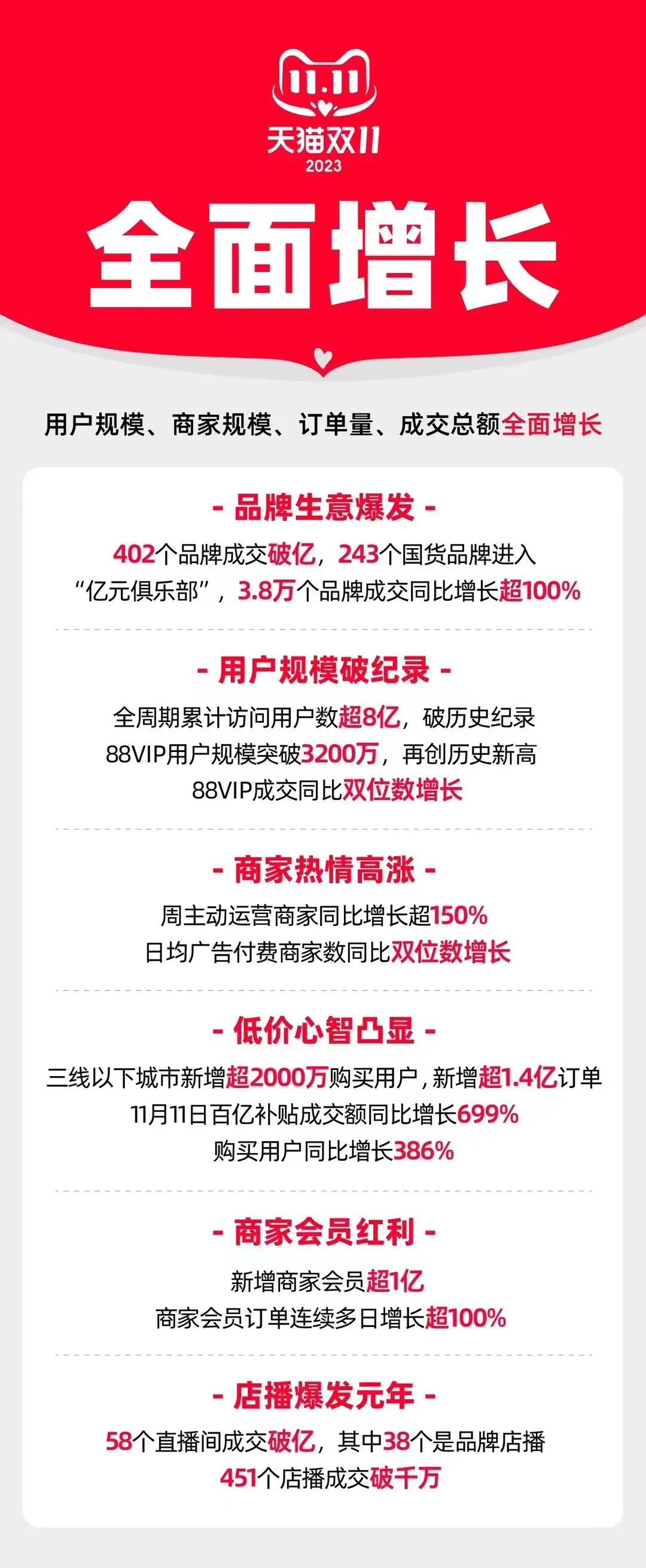 本文來源 / 雪豹財經(jīng)社 作者 / 葉增文 未來的淘寶是什么樣子?自組建新淘天以來,CEO戴珊被多次問及這個問題。 在今年5月淘天新團隊初次亮相時,戴珊認為淘寶將成為一個“充滿煙火氣,人來人往的熱鬧街區(qū)”。此后,她又用“熱帶雨林”來形容未來的淘寶。 熱帶雨林是世界上最具物種多樣化的生態(tài)環(huán)境,這里有超百米高的喬木,也有貼地生長的苔蘚地衣,一棵樹都能形成一個獨立的生態(tài)。 2023年的雙11戰(zhàn)報顯示,這個熱帶雨林已初具規(guī)模。據(jù)淘寶披露,今年天貓雙11用戶商家規(guī)模、訂單量、成交總額全面增長,截至11月11日零點,共有402個品牌成交破億,其中有243個是國貨品牌;3.8萬個品牌、220萬個中小商家成交額同比翻倍;全周期累計訪問用戶數(shù)超8億,創(chuàng)下歷史峰值。 內(nèi)容豐富、生態(tài)多樣化,正是戴珊設(shè)想中的淘寶,支撐她想法的是淘寶生態(tài)繁榮的戰(zhàn)略。 為獲一片雨林,今年來淘寶一直努力“種草”。5月,戴珊公開表態(tài):“淘寶將以遠超之前的投入推進全面內(nèi)容化!碧詫殐(nèi)容業(yè)務包括信息流、短視頻、生活百科、UGC等業(yè)務。 雪豹財經(jīng)社獲悉,雙11以來,淘寶短視頻觀看用戶同比增長142%,觀看時長同比增長439%,31個品牌在淘寶實現(xiàn)年種草成交金額過億。 生態(tài)的繁榮也促進了用戶的“入淘潮”和“返淘潮”。據(jù)高盛一份最新報告,9月淘寶DAU(日活躍用戶數(shù))同比增長6%,連續(xù)8個月高速增長。QuestMobile的數(shù)據(jù)顯示,天貓雙11首波售賣期間,淘寶APP日活躍用戶數(shù)連續(xù)4天破5億,打破歷史紀錄。 從流量到留量,從商品到內(nèi)容,淘寶如何將數(shù)千萬商家和10億消費者串聯(lián)成枝繁葉茂的雨林? 01 不只種草,而是造林 生態(tài)繁榮,是戴珊為淘寶定下的三大戰(zhàn)略之一。如何在電商存量時代讓用戶數(shù)和商家數(shù)繼續(xù)突破天花板? 淘寶給出的答案是全面內(nèi)容化。 戴珊這樣定性內(nèi)容之于淘寶的重要性:“過去的淘寶,商品即內(nèi)容;未來的淘寶,內(nèi)容即商品! 淘天集團成立后,內(nèi)容化這一重要戰(zhàn)略,變得更加徹底和全面。 據(jù)多家媒體近日報道,淘寶內(nèi)容業(yè)務負責人少游已直接向戴珊匯報,此前他的匯報對象是用戶運營中心負責人玄德。 雪豹財經(jīng)社觀察到,今年以來,淘寶App至少更新十余次,逛逛始終占據(jù)首頁寸土寸金的tab位,且內(nèi)容呈現(xiàn)形式從圖文逐漸過渡到以視頻為主。此外,淘寶還推出了打賞、簽到領(lǐng)紅包等產(chǎn)品功能,豐富內(nèi)容化的互動玩法。 但要想依仗內(nèi)容化實現(xiàn)生態(tài)繁榮,長成一片繁茂的熱帶雨林,僅靠產(chǎn)品調(diào)整是遠遠不夠的。少游表示,淘寶內(nèi)容化重點不在內(nèi)容本身,而在于創(chuàng)造一個內(nèi)容生態(tài)。 作為平臺方,淘寶了解一個生態(tài)的構(gòu)成因素:商家、達人和消費者。決心造林而非種草的淘寶內(nèi)容化,也必須圍繞這三者展開。 在今年的天貓雙11發(fā)布會上,戴珊表示,“誰能抓住好的消費內(nèi)容,誰就能獲得新的消費者”。為鼓勵商家投入內(nèi)容,淘寶推出了十余款AI產(chǎn)品來幫助商家產(chǎn)出內(nèi)容,并吸引了奧尼爾、梅西等明星入淘直播造勢。 熱門主播涌現(xiàn)“入淘潮”,淘寶直播是否面臨新老交替、爭搶流量的問題?淘寶直播總經(jīng)理道放表示,引入巨星來直播為的是做大蛋糕,巨星自帶流量和粉絲,入淘后能獲得新的增量觀眾。他認為這也是淘寶有別于傳統(tǒng)內(nèi)容平臺的優(yōu)勢,“我們不只是在一塊固定的蛋糕上切分,而是做大蛋糕”。 據(jù)淘寶雙11戰(zhàn)報,今年雙11共58個直播間成交破億,其中有14個是首次破億。38個店播破億,451個店播破千萬。道放表示,店播的增長并沒有搶占達播的空間,今年以來達播和店播的用戶觀看時長和GMV均大幅增長。 目前商家投入直播熱情高漲,據(jù)淘寶披露,近一年來,在淘寶新開直播的品牌和商家超過30萬個,破千萬的有近4000個。 據(jù)悉,淘寶正在繼續(xù)布局短直聯(lián)動(短視頻和直播),實現(xiàn)從短視頻增長到店播增長的商業(yè)路徑。短直聯(lián)動的策略已初見成效。雙11期間,有頭部美妝品牌短視頻播放人群相比6月增長350%,短視頻人群進入直播間后成交轉(zhuǎn)化率是直播間整體的1.6倍。 達人則是生產(chǎn)內(nèi)容的主力。今年9月的明星達人創(chuàng)造營上,淘寶促成了160名達人與華為、小米、李寧等品牌達成合作意向。今年雙11,淘寶將給予達人更確定性的流量和商業(yè)化激勵。 據(jù)淘寶披露,今年已有超過20萬達人和1000家專業(yè)機構(gòu)入駐淘寶,他們中有的人僅有千粉也能接到商單。 而對消費者而言,內(nèi)容化意味著淘寶從目的性很強的工具型App,逐漸延伸為既能滿足購物需求也能滿足內(nèi)容需求的平臺。商家和達人持續(xù)的內(nèi)容產(chǎn)出,則可以吸引消費者駐足更久。無論今年618還是雙11,觀看用戶、觀看時長等增速都十分顯著。 有趣的內(nèi)容也在一直不斷讓淘寶頂破用戶數(shù)量的天花板。 受益于內(nèi)容帶來的新增長力,淘寶活躍用戶核心指標增長強勁。QuestMobile數(shù)據(jù)顯示,淘寶9月活躍用戶數(shù)(MAU)達8.95億,在電商類App中位居第一。高盛最新研報顯示,淘寶用戶活躍