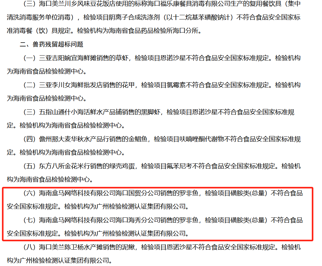 一邊暫緩上市,一邊又被海南省市場(chǎng)監(jiān)管局“點(diǎn)名”了。 11月16日,阿里巴巴集團(tuán)發(fā)布了2024財(cái)年第二季度業(yè)績(jī)公告,并披露了業(yè)務(wù)集團(tuán)分拆和融資進(jìn)展情況。 公告顯示,鑒于多方面不確定性因素,阿里巴巴不再推進(jìn)云智能集團(tuán)的完全分拆。同時(shí),盒馬的首次公開(kāi)募股計(jì)劃已經(jīng)暫緩,阿里巴巴正在評(píng)估確保成功推進(jìn)項(xiàng)目實(shí)施和提升股東價(jià)值所必須的市場(chǎng)狀況和其他因素。 盒馬是阿里前任CEO張勇力主推行的項(xiàng)目。新任CEO吳泳銘自9月上任以來(lái)還沒(méi)有對(duì)盒馬未來(lái)的定位做過(guò)公開(kāi)表態(tài)。11月16日的財(cái)報(bào)分析師電話(huà)會(huì)上,吳泳銘也沒(méi)有提及盒馬。 截11月16日美股收盤(pán),阿里巴巴美股股價(jià)下跌9.14%,至79.11美元/股,當(dāng)日市值一度跌破2000億美元。 01 擴(kuò)張、盈利與上市 2023年3月,阿里巴巴宣布“1+6+N”改革。其中,“6”指的是阿里云智能、淘寶天貓商業(yè)、本地生活、菜鳥(niǎo)、國(guó)際數(shù)字商業(yè)、大文娛等六大業(yè)務(wù)集團(tuán),“N”則是若干家單列的業(yè)務(wù)公司。盒馬也是“N”中之一。 “具備條件的業(yè)務(wù)集團(tuán)和公司,都將有獨(dú)立融資和上市的可能性!睍r(shí)任阿里巴巴CEO張勇如此說(shuō)道。 同時(shí),阿里董事會(huì)批準(zhǔn)啟動(dòng)執(zhí)行新零售項(xiàng)目盒馬的上市流程,預(yù)計(jì)該上市將在未來(lái)6到12個(gè)月內(nèi)完成。 但是,在二級(jí)市場(chǎng)上,零售商的表現(xiàn)十分低迷。 A股生鮮超市龍頭永輝超市的股價(jià)自2020年下半年以來(lái),一路下跌,當(dāng)前其273億元的市值距離其歷史最高點(diǎn),跌去近七成;大潤(rùn)發(fā)母公司高鑫零售同樣如此,自2020年的高點(diǎn)迄今,最大跌幅超九成;新零售業(yè)態(tài)的叮咚買(mǎi)菜在美股上市,當(dāng)前市值僅4.49億美元。 在媒體報(bào)道中,盒馬的估值也一直在下滑。在2022年1月,媒體援引知情人士消息稱(chēng),盒馬正在尋求以100億美元估值獨(dú)立融資。到了2023年7月,據(jù)媒體消息,盒馬正在尋求以約60億美元的估值融資;9月,又有消息稱(chēng),阿里巴巴認(rèn)為盒馬鮮生的估值可能只有40億美元左右。不到兩年的時(shí)間中,盒馬的估值縮水超過(guò)了一半。 披著“新零售”概念出生的盒馬,是由張勇一手促成成立的。2015年,從京東離開(kāi)的侯毅與張勇經(jīng)過(guò)了多次的碰面和討論,確立了生鮮電商+超市的“新零售”方向,最終落地的“成果”便是盒馬鮮生。 八年以來(lái),盒馬大刀闊斧地?cái)U(kuò)張。據(jù)不完全統(tǒng)計(jì),截至2023年9月中旬,盒馬的四種店型(盒馬生鮮、mini店、奧萊店、會(huì)員店),已經(jīng)超過(guò)了350家。 另?yè)?jù)2023年6月中國(guó)連鎖經(jīng)營(yíng)協(xié)會(huì)發(fā)布《2022中國(guó)連鎖TOP100》榜單,盒馬生鮮2022年銷(xiāo)售額為610億元,門(mén)店數(shù)為300個(gè),在線(xiàn)下連鎖零售商中排名第八。 另一方面,盒馬的盈利能力并不強(qiáng)。在2019年,談及虧損,侯毅用了一種委婉的說(shuō)法,“我們從來(lái)不用虧損這兩個(gè)字,我們認(rèn)為這是投資。對(duì)創(chuàng)新要有投入,沒(méi)有投入怎么能行。” 但是,在2021年,阿里推行經(jīng)營(yíng)責(zé)任制,盒馬需要自負(fù)盈虧,賺錢(qián)就也成為了現(xiàn)實(shí)問(wèn)題。到2022年底,侯毅在全員內(nèi)部信中稱(chēng),2022年是盒馬新零售的成熟期,主力業(yè)態(tài)盒馬鮮生實(shí)現(xiàn)盈利。 02 食品安全“達(dá)摩克利斯之劍”高懸 在盒馬暫緩上市消息傳開(kāi)的前一天,11月15日,海南省市場(chǎng)監(jiān)督管理局通告《海南省市場(chǎng)監(jiān)督管理局關(guān)于13批次不合格食品情況》,其中就包括海南盒馬網(wǎng)絡(luò)科技有限公司海口國(guó)貿(mào)分公司、海秀分公司銷(xiāo)售的羅非魚(yú),檢驗(yàn)項(xiàng)目磺胺類(lèi)(總量)不符合食品安全國(guó)家標(biāo)準(zhǔn)規(guī)定。 圖源:截圖自 海南省市場(chǎng)監(jiān)督管理局官網(wǎng) 巧的是,當(dāng)初阿里宣布分拆盒馬上市的同一天,5月18日,北京市市場(chǎng)監(jiān)督管理局公布一批食品安全典型案例,其中也包括盒馬新華東街分公司銷(xiāo)售的“冰鮮三文魚(yú)魚(yú)腩”,經(jīng)檢測(cè)發(fā)現(xiàn)菌落總數(shù)項(xiàng)目不達(dá)標(biāo),被處罰沒(méi)款合計(jì)5.11萬(wàn)元。 尤其是2022年下半年以來(lái),盒馬鮮生基本上每個(gè)月都會(huì)被質(zhì)檢部門(mén)點(diǎn)名。 如2022年8月7日,盒馬鮮生因銷(xiāo)售的Tipco橙汁檢驗(yàn)項(xiàng)目中“安賽蜜”超標(biāo),被罰款48.72萬(wàn)元,并沒(méi)收違法所得9761.22元;9月21日,因銷(xiāo)售的鯽魚(yú)檢驗(yàn)項(xiàng)目中廣譜抗菌藥“恩諾沙星”超標(biāo),被罰款5萬(wàn)元;10月,因生產(chǎn)銷(xiāo)售的面包配料表中無(wú)相關(guān)成分,被罰款 6 萬(wàn)元;12月,又因“恩諾沙星”超標(biāo)5倍以上被通報(bào),同月還因平度老姜中噻蟲(chóng)胺超標(biāo)而被罰款6.5萬(wàn)元。 就在今年“315”前夕,盒馬鮮生還因食品獸藥殘留超標(biāo)被罰款6.5萬(wàn)元。 除了監(jiān)管關(guān)注,消費(fèi)者也時(shí)常吐槽。在“黑貓投訴”搜索“盒