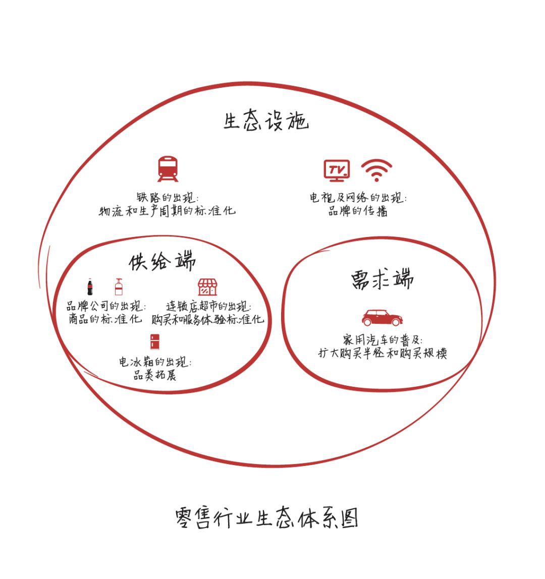 本文來源 / 高瓴創(chuàng)投GLV “Choose life,Choose Job……” 在先鋒電影的視角里,我們的消費、生活態(tài)度,構(gòu)建起了我們與世界相處的方式。不論是在11.11的購物狂歡中,還是當(dāng)下的新消費品牌崛起浪潮里,都不難看到對「零售業(yè)如何改變現(xiàn)代人類生活」這一命題的探討。正如《價值》一書中,作者張磊所認(rèn)為的,消費的本質(zhì)是消費者與世界和自我達(dá)成和解的過程,而零售的本質(zhì),則是構(gòu)建一整套體驗,與消費者實現(xiàn)理想共鳴。 歡迎來到我們的新欄目「G READS」。我們摘取張磊新書《價值》中對零售業(yè)“前世今生”的研究筆記,以及他尋找新零售獨特物種的故事,與你分享。Retail is Detail,希望對你有所啟發(fā)。 創(chuàng)立高瓴資本以后,我們花最多時間研究的行業(yè)就是零售業(yè)。零售業(yè)與每個人的生活息息相關(guān)。從某種程度上說,零售業(yè)塑造了現(xiàn)在的商業(yè)社會以及現(xiàn)代生活。這里,我想通過對零售業(yè)的研究來介紹高瓴資本的投資方法。從大的格局上來理解就是:零售即服務(wù),內(nèi)容即商品,所見即所得。 01 挖掘行業(yè)生態(tài)體系 零售行業(yè)如何誕生,發(fā)展? 要了解一個市場,首先要了解它的“前世今生”,所以我們從發(fā)展歷史悠久的美國零售業(yè)入手。 零售業(yè)本身是一個現(xiàn)代產(chǎn)業(yè),它是伴隨著商品經(jīng)濟(jì)的發(fā)展而誕生的。從歷史的角度看,現(xiàn)代零售的“前世”紛繁復(fù)雜,從200多年前出現(xiàn)的純粹的夫妻老婆店開始,零售業(yè)進(jìn)入現(xiàn)代經(jīng)濟(jì)體系后不斷演化,但直到現(xiàn)在,夫妻老婆店仍是不可或缺的商業(yè)形態(tài)。 其實,夫妻老婆店有它的獨特優(yōu)勢,比如它不存在公司治理的問題,資本的所有者和運營者是高度統(tǒng)一的,而且夫妻老婆店更有溫度,老板、老板娘很熟悉周邊的社區(qū),可以很友善地與客戶建立個人聯(lián)系,進(jìn)而形成情感綁定。但其劣勢更加明顯,比如規(guī)模比較小、產(chǎn)品選擇窄、供應(yīng)商體系混亂、消費者體驗不一致等。 零售業(yè)第一次出現(xiàn)大發(fā)展的標(biāo)志是連鎖店的誕生。需要看到的是,連鎖店的誕生是有前提的,這個前提就是生態(tài)體系的創(chuàng)建。而其生態(tài)體系包括什么呢?首先是鐵路的出現(xiàn)。美國第一條橫貫東西的鐵路于1869年完工,這為現(xiàn)代物流體系創(chuàng)造了新的標(biāo)準(zhǔn),物流的標(biāo)準(zhǔn)化、即時化進(jìn)程快速發(fā)展,使一家好的工廠可以生產(chǎn)供全國使用的產(chǎn)品。 從美國的發(fā)展歷程可以看到,1919年到1926年,美國出現(xiàn)了現(xiàn)代零售業(yè)的大規(guī)模市場整合。“新零售”這個詞當(dāng)時就已經(jīng)在美國出現(xiàn)了,那時美國甚至已經(jīng)出現(xiàn)了無人便利店。 連鎖店出現(xiàn)后,有些商家就開發(fā)出了超市業(yè)態(tài)。商品品類和數(shù)目的擴(kuò)張,使消費者一站式購物成為可能。這其中又蘊含著巨大的變化,如果說鐵路使零售生態(tài)體系得到現(xiàn)代化發(fā)展,那么連鎖店以及超市這種吸納大量消費者的業(yè)態(tài)就在整個零售生態(tài)體系中占據(jù)了關(guān)鍵位置,我們稱之為“生態(tài)位置”。 當(dāng)連鎖產(chǎn)生的時候,如果沒有好的商品,連鎖本身就不成立。這個時候,美國市場出現(xiàn)了兩家非常重要的消費品公司——寶潔和聯(lián)合利華。這兩家公司至今仍然是廣受信賴的消費品公司,它們的核心輸出是品牌,它們通過將產(chǎn)品品牌化、包裝化,使消費者對其產(chǎn)品有了統(tǒng)一的認(rèn)知,即“快消品”(Fast Moving Consumer Goods)。 其實,1839年就已經(jīng)出現(xiàn)了包裝好的商品——肥皂。 肥皂是生活必需品,特征是可包裝、易存儲且不需要電冰箱來儲存,最早的商品只能是擁有這些特征的商品。但是直到1930年以后,商品品牌才真正得到發(fā)展,其中的原因主要是電視機(jī)的出現(xiàn)。電視機(jī)和有線電視網(wǎng)的發(fā)展讓知名消費品公司有機(jī)會迅速大規(guī)模宣傳品牌,最早的電視節(jié)目也都是圍繞品牌來做的,“肥皂劇”最早就因給肥皂打廣告而得名。 在品類拓展中,還有一個重要突破:電冰箱的出現(xiàn)。這促使包裝商品品類終于可以從肥皂這一類商品擴(kuò)張到食品品類。食品的規(guī)模比其他商品的規(guī)模大好多倍,進(jìn)而使現(xiàn)代商品的規(guī)模也擴(kuò)大了好多倍。 至此,生態(tài)體系里已經(jīng)有了鐵路、連鎖超市、知名消費品公司、電視機(jī)、電冰箱這些構(gòu)成要素:鐵路把物流和生產(chǎn)周期標(biāo)準(zhǔn)化;連鎖超市把購買和服務(wù)體驗標(biāo)準(zhǔn)化;消費品公司把商品標(biāo)準(zhǔn)化,給消費者提供品牌的承諾和產(chǎn)品質(zhì)量的保證;電視機(jī)把大家的認(rèn)知標(biāo)準(zhǔn)化,通過電視節(jié)目使得所有品牌變得家喻戶曉,增加品牌的知名度和美譽(yù)度;再加上電冰箱的批量生產(chǎn),使得產(chǎn)品能被更長期地儲存。 在各種要素陸續(xù)出現(xiàn)以后,零售業(yè)的供給端完成了現(xiàn)代化進(jìn)程。生態(tài)體系的搭建是一個不斷完善的過程,在供給端的關(guān)鍵要素不斷出現(xiàn)后,有一個需求端的要素出現(xiàn)了,那就是家