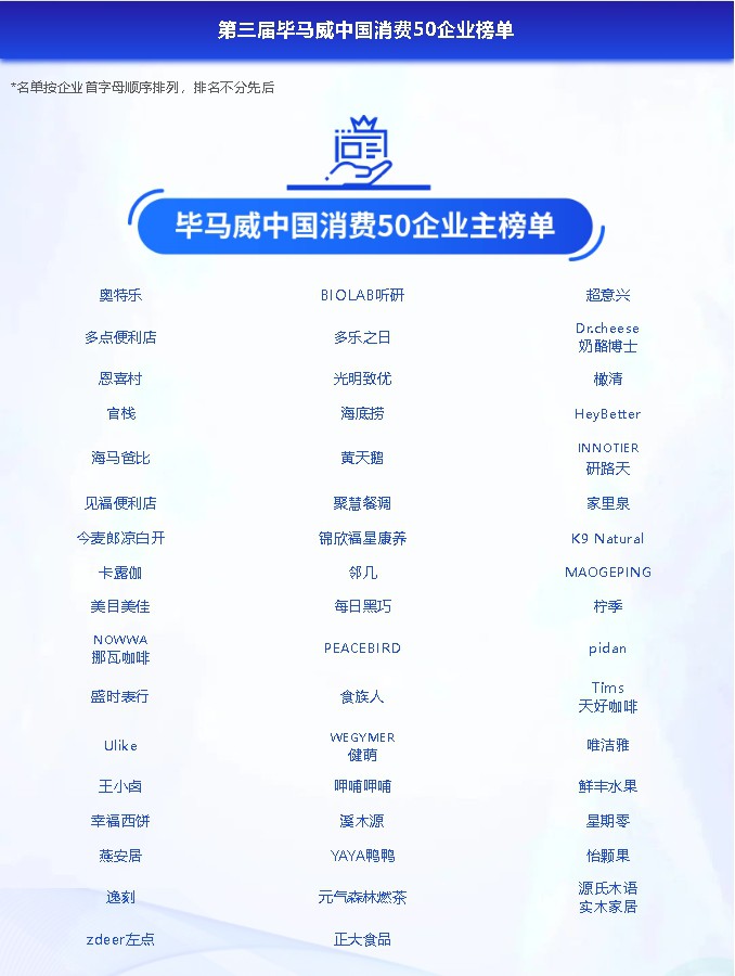11月22日消息,第三屆畢馬威中國消費50報告發(fā)布會暨頒獎禮近日在滬舉行,此次活動由畢馬威與小紅書投資聯(lián)合推出,活動公布了“畢馬威中國消費50榜單”。其中,奧特樂、多點便利店、見福便利店、鮮豐水果、逸刻等品牌上榜。 第三屆畢馬威中國消費50企業(yè)榜單如下: |