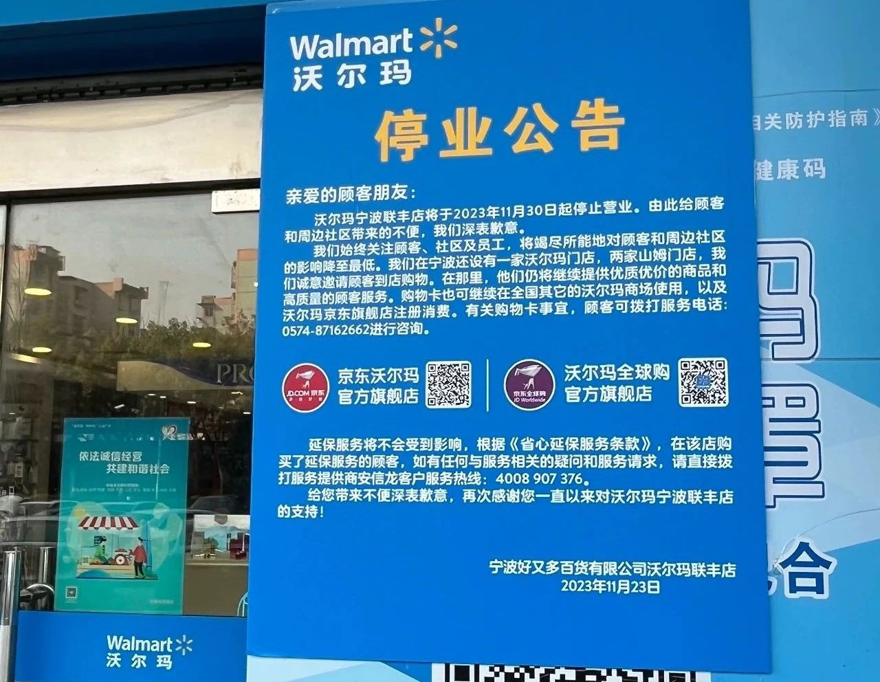 11月24日消息,沃爾瑪寧波聯(lián)豐店于11月23日發(fā)布《停業(yè)公告》。 公告稱,沃爾瑪寧波聯(lián)豐店將于11月30日起停止?fàn)I業(yè)。該店停業(yè)后,沃爾瑪在寧波還有一家沃爾瑪門店(四明中路店)和兩家山姆門店(江北店、鄞州店)。對(duì)于持有購(gòu)物卡的顧客,可以繼續(xù)在全國(guó)其它的沃爾瑪商場(chǎng)使用,以及沃爾瑪京東旗艦店注冊(cè)消費(fèi)。 資料顯示,沃爾瑪進(jìn)入寧波市場(chǎng)以來(lái),先后開設(shè)了4家沃爾瑪門店,分別是寧波四明中路分店、寧波聯(lián)豐店、寧波華僑店和余姚城東路分店。沃爾瑪聯(lián)豐店的前身是好又多超市,于199年開業(yè),2007年,沃爾瑪收購(gòu)好又多;2011年正式變身為沃爾瑪聯(lián)豐店。如今宣布關(guān)店,已經(jīng)持續(xù)經(jīng)營(yíng)了25年左右。 此前寧波華僑店和余姚城東路分店,先后于2019年6月18日、2021年6月1日正式閉店謝客。此次聯(lián)豐店關(guān)閉后,沃爾瑪在寧波僅剩下四明中路店一家門店。 |