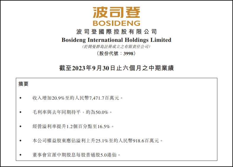 11月27日,國(guó)內(nèi)羽絨服龍頭企業(yè)波司登發(fā)布中期業(yè)績(jī)。 截至2023年9月30日止六個(gè)月,波司登營(yíng)收74.72億元,同比增長(zhǎng)20.9%;公司權(quán)益股東應(yīng)占溢利9.19億元,同比增加25.11%;每股基本盈利8.47分,擬派發(fā)中期股息每股5港仙。 2023/24上半財(cái)年,集團(tuán)持續(xù)堅(jiān)持“聚焦主航道、聚焦主品牌”的戰(zhàn)略方向,通過(guò)與全球領(lǐng)先高標(biāo)準(zhǔn)對(duì)標(biāo),持續(xù)夯實(shí)“品牌引領(lǐng)、產(chǎn)品升級(jí)、渠道升級(jí)、優(yōu)質(zhì)快反”四項(xiàng)核心競(jìng)爭(zhēng)力和“組織/機(jī)制/文化/人才、數(shù)字化經(jīng)營(yíng)”兩項(xiàng)保障體系,實(shí)現(xiàn)了持續(xù)穩(wěn)健的增長(zhǎng),彰顯了企業(yè)的發(fā)展韌性。 2023/24上半財(cái)年,集團(tuán)的收入約為74.72億元,較去年同期上升約20.9%。品牌羽絨服業(yè)務(wù)、貼牌加工管理業(yè)務(wù)、女裝業(yè)務(wù)及多元化服裝業(yè)務(wù)為集團(tuán)的主營(yíng)業(yè)務(wù)單元。 財(cái)報(bào)顯示,品牌羽絨服業(yè)務(wù)仍為集團(tuán)的最大收入來(lái)源,錄得收入約為49.4億元,占總收入的66.1%,同比上升28.1%;貼牌加工管理業(yè)務(wù)錄得收入約20.43億元,占總收入的27.3%,同比上升7.8%;女裝業(yè)務(wù)錄得收入約3.93億元,占總收入的5.3%,同比上升15.4%;多元化服裝業(yè)務(wù)錄得收入約9640萬(wàn)元,占總收入的1.3%,同比上升9.8%。 截至2023年9月30日,波司登庫(kù)存周轉(zhuǎn)天數(shù)為160天,同比2022年9月30日同期庫(kù)存周轉(zhuǎn)天數(shù)有21天的下降。 此外,在2023/24上半財(cái)年,該集團(tuán)共申報(bào)專利545項(xiàng),含發(fā)明、實(shí)用及外觀專利,為羽絨服專家提供了專利技術(shù)、背書(shū)支撐。截至2023年9月30日,集團(tuán)已累計(jì)全部專利746項(xiàng)(含發(fā)明、實(shí)用新型及外觀專利)。 |