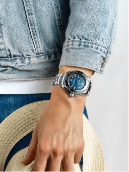 著名瑞士手表品牌歐米茄的海馬系列與海洋有著深厚情緣,而今年推出的全新海馬系列Summer Blue手表,更是精彩詮釋了歐米茄不斷探索海洋、發(fā)展?jié)撍淼妮x煌歷程,F(xiàn)在,就讓我們一起展開一場歐米茄與;噬詈5膶υ,探索更多海馬手表中蘊含的海洋奧秘。 在希臘羅馬神話故事里,;什ㄈ粌H是統(tǒng)領(lǐng)海洋的大神,還是馬匹之神,人類的第一匹馬就是波塞冬贈送的。將海與馬關(guān)聯(lián)在一起,也許是因為在古希臘人眼中,翻滾的海浪恰如萬馬奔騰。 從古希臘羅馬時期到當代,藝術(shù)作品中的波塞冬,常常站在海馬拉著的黃金戰(zhàn)車上。而此海馬非彼之海洋生物,乃海中神獸,是波塞冬的象征之一,馬身魚尾。黃金戰(zhàn)車一般由兩匹或者四匹海馬牽引,而海豚也常在左右翻騰跳躍。 古希臘羅馬時代的波塞冬馬賽克鑲嵌畫 其中,兩匹海馬拉車有特定寓意,古希臘人認為其中一匹代表了波塞冬狂躁易怒的一面,就像大海上的疾風(fēng)暴雨,另一匹則代表了波塞冬安詳平靜的一面,亦如海上的風(fēng)和日麗,體現(xiàn)了人們對海神的敬畏之心。海洋民族對海的情感,大抵如此。 地中海的海洋文化深深影響著三千年的神話傳說,波塞冬在奧林匹斯山十二主神中地位非常高,僅次于神王和天后。不同時代的建筑、雕塑、繪畫等藝術(shù)品中,也常見波塞冬。 例如,羅馬許愿池是最富盛名的噴泉之一,池中央的雕像正是波塞冬駕著海馬戰(zhàn)車,那是巴洛克藝術(shù)的杰作。水城威尼斯知名的貢多拉游船,也裝飾著;实暮qR坐騎,寄托著人們祈求護佑的美好愿望。 羅馬許愿池里的波塞冬與海馬雕塑 威尼斯貢多拉游船上的海馬雕像 六十多年前,瑞士高級制表品牌歐米茄的設(shè)計師讓·皮埃爾·博爾,在一次威尼斯之行中,偶然從貢多拉船上的海馬雕像獲得靈感 ,為歐米茄手表設(shè)計出了海馬標識。 一次旅行巧遇,成就了鐘表行業(yè)一個極具代表性的圖騰。馬身魚尾形象,不僅是誕生于1948年的歐米茄海馬系列手表的標識,也是歐米茄品牌的一個代表符號。 歐米茄1957年推出海馬300、超霸和鐵霸三大經(jīng)典表款時,金屬表背上均鐫刻了海馬標識。2017年,歐米茄向經(jīng)典致敬,推出1957年三大經(jīng)典腕表60周年限量版,表背上仍可以看到這匹海馬的身影。 2017年三大經(jīng)典腕表60周年紀念表款上的海馬標識 半個多世紀以來,海馬標識體現(xiàn)了海馬系列的海洋傳統(tǒng)、精致風(fēng)格和勇敢精神,成就了歐米茄海馬系列手表的海洋傳奇。 01 -海馬系列75周年 2023年,歐米茄海馬系列迎來75周年,一個十分重要的紀念年份。在西方文化體系里,四分之一是一個關(guān)鍵概念,比如一刻鐘、25美分等,所以25和75這兩個年份也都是大慶。 海馬系列75周年紀念有多隆重?zé)o需贅言,歐米茄一口氣推出了一整個Summer Blue系列腕表,包括海馬系列防水150米、300米、600米、1200米和6000米5個深度,共7個款式11枚新品手表。 歐米茄Seamaster in Summer Blue腕表組圖 這一系列手表的重要標志之一,就是表背全部采用金屬底蓋、鐫刻75周年紀念圖案:;什ㄈ殖秩骊、駕駛兩匹海馬拉著的黃金戰(zhàn)車。歐米茄以此向經(jīng)典的海馬標識致敬,圖案上方還有“Seamaster Since 1948”字樣,標明了歐米茄海馬系列的誕生年份。 仔細看,紀念圖案中的兩匹海馬并不相同,一匹采用了讓-皮埃爾·博爾最初的設(shè)計,另一匹則是現(xiàn)在所使用的海馬標識。兩匹海馬的設(shè)計,也巧妙呼應(yīng)了神話里關(guān)于波塞冬兩面性格的刻畫。 歐米茄海馬系列Aqua Terra腕表38毫米表款 從希臘的米科諾斯島,到中國的海南三亞,北半球剛剛過去的這個夏天里,歐米茄在世界各地的海濱為Summer Blue系列舉辦盛大的發(fā)布活動。 在三亞,歐米茄全球總裁兼首席執(zhí)行官安世文說,“全新腕表的波塞冬表背設(shè)計,正是整個海馬系列腕表愿景的濃縮”,海皇形象的加入,將海馬腕表 (Seamaster) 所蘊藏的海洋之王 (the master of the sea) 這一含義直接表達出來。 歐米茄全球總裁兼首席執(zhí)行官安世文在三亞活動上 Summer Blue系列手表的另一大特色,是歐米茄從夏日海水之藍汲取靈感所設(shè)計的由淺及深的表盤色彩。安世文半開玩笑地說,“歐米茄很幸運,這個地球上到處都有夏天,北半球夏天過去,新西蘭的夏天又會到來,還有海南這樣四季如夏的地方! 但實際上,Summer Blue并非夏日限定,只是系列之名,重點是后面的Blue,隨這些手表防水深度增加,表盤色彩從淺藍到深藍直至黑藍——手表防水性能與地理學(xué)上的海洋分層建立了對應(yīng)關(guān)系,色彩也成為Summer Blue系列手表緊密的內(nèi)在聯(lián)系。 地理學(xué)上的海洋分層示意圖 02 -專于潛水表技術(shù)近百年 海馬系列之名始于1948年,但歐米茄潛水手表的歷史可以追溯至1932年。那一年歐米茄推出了一款名為Marine的腕表。這款腕表采用獨特的雙層表殼設(shè)計。外表殼被安全固定,以便保護內(nèi)表殼以及其機芯、表盤和指針。 1932年 歐米茄Marine腕表 巧合的是,那一年也是歐米茄攜30枚追針計時表遠赴洛杉磯、開始擔(dān)任奧運會正式計時的年份。歐米茄的制表實力,在人類歷史的不同領(lǐng)域里,同時閃光。 Marine腕表后來通過了日內(nèi)瓦湖73米水深測試,接著又通過了納沙泰爾實驗室的測試,證實其高達135米的防水能力。那時還沒有專業(yè)的潛水