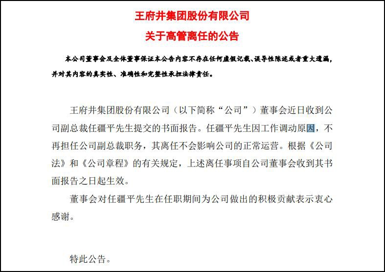 12月15日,王府井集團股份有限公司發(fā)布關(guān)于高管離任的公告。 公告顯示,王府井集團股份有限公司董事會近日收到公司副總裁任疆平先生提交的書面報告。任疆平先生因工作調(diào)動原因,不再擔(dān)任公司副總裁職務(wù),其離任不會影響公司的正常運營。 據(jù)了解,12月15日,王府井在互動平臺表示,截至目前,公司旗下有20余家門店開設(shè)了華為商品授權(quán)體驗店和智能生活館。12月12日,王府井在投資者互動平臺表示,截至2023年6月30日,公司旗下共擁有12家合資超市。 另悉,于雙十一期間,王府井線下門店客流及銷售規(guī)模均較2020年以來各年同期有較大幅度增長。2023年第三季度,王府井實現(xiàn)營收28.85億元,同比增長5.99%;歸屬于上市公司股東的凈利潤1.3億元,同比增長277.31%。2023年前三季度,王府井營收92.65億元,同比增長9.44%;歸屬于上市公司股東的凈利潤約6.48億元,同比增長56.13%。 |