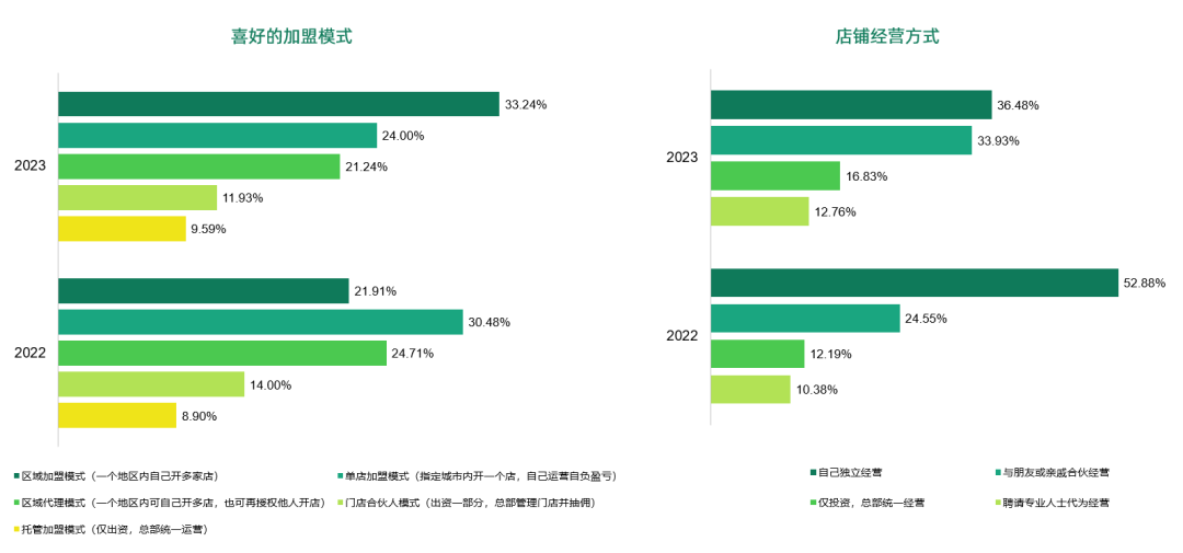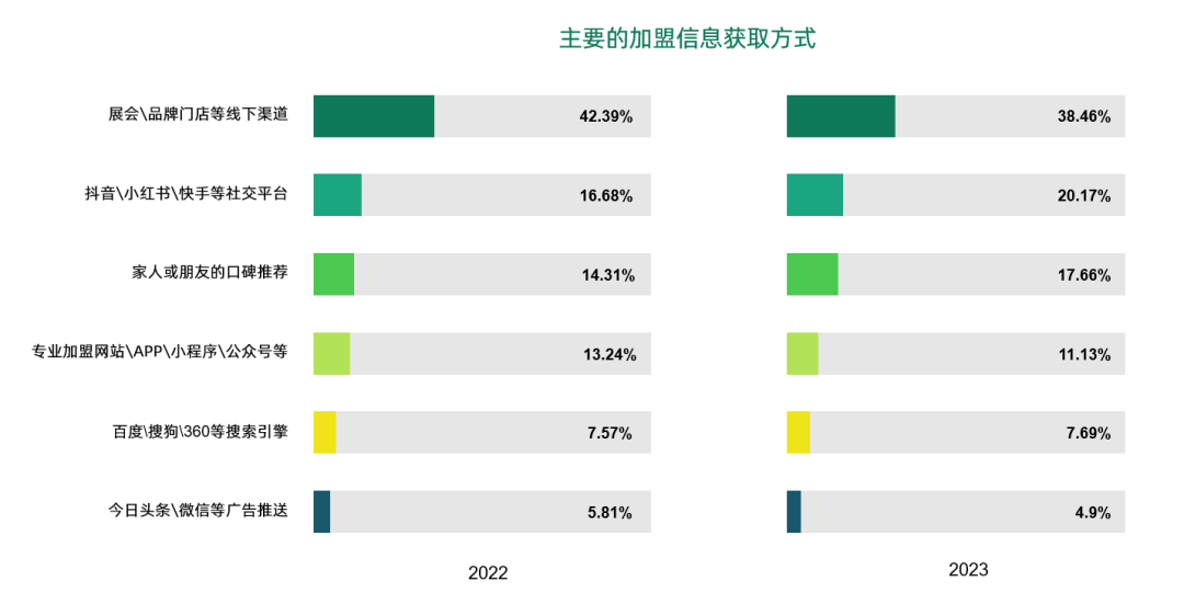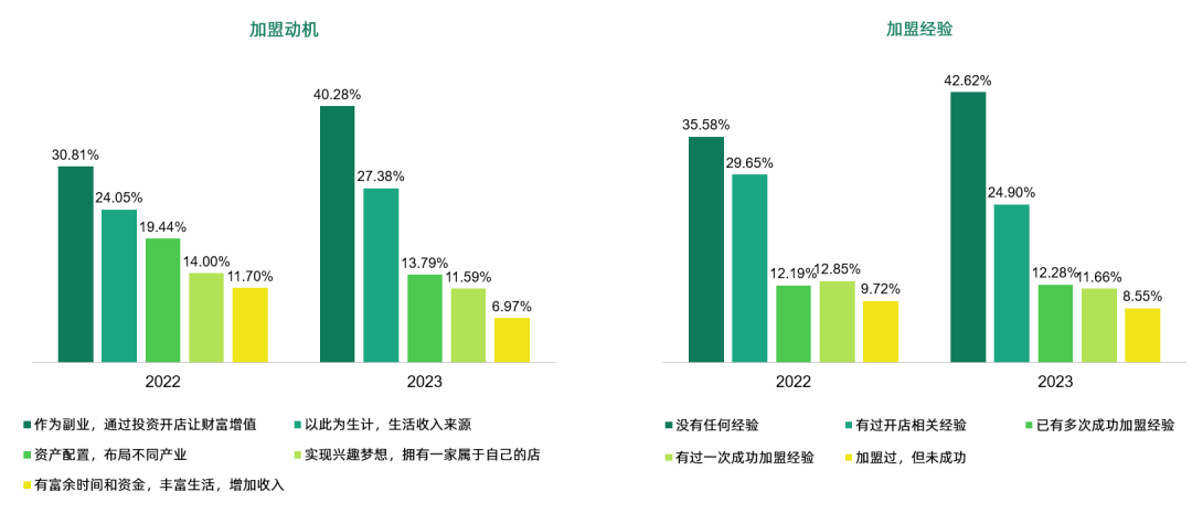 本文來源 / 中國連鎖經(jīng)營協(xié)會、CCFA 通過調(diào)研收集中國特許加盟展、盟享加特許加盟網(wǎng)、盟盟好店小程序2022年1月至2023年10月期間的75162條加盟投資人數(shù)據(jù),綜合數(shù)據(jù)庫及定性問卷調(diào)研結(jié)果,形成了這份《2023加盟投資人群洞察報(bào)告》。 本次報(bào)告樣本數(shù)據(jù)情況 2022-2023加盟投資人群體的變化與趨勢 趨勢一 加盟投資群體正在逐漸向Z世代遷移,2023年00后群體占比激增,增長率高達(dá)373.68%;雖然80后90后仍是加盟投資主力,但80后所占比重已明顯呈下降趨勢。 趨勢二 從意向投資額來看,20萬以下小額投資明顯增多,表明在資金投入上,加盟投資人群體的態(tài)度趨于謹(jǐn)慎或傾向于更靈活可控的小店型加盟投資策略。 趨勢三 從來源看,二三四線城市比重持續(xù)增長,加盟投資人群分布趨于均衡發(fā)展。 趨勢四 從計(jì)劃投資城市來看,一線城市和新一線城市的投資熱度在轉(zhuǎn)暖。 趨勢五 餐飲的加盟投資熱度明顯提升,特色小吃和飲品甜品等小投資額品類熱度回暖;母嬰服務(wù)、食品保健品行業(yè)的意向度也有所提升。 2023加盟投資人的動機(jī)、需求與決策因素 在2023年,更多人愿意將加盟開店作為副業(yè),來讓既有財(cái)富增值,但他們大多也缺乏相關(guān)加盟\開店經(jīng)驗(yàn),也正因?yàn)槿绱耍麄儾艜x擇加盟這種成功率更高的模式。雖然小白群體在增多,但有過開店經(jīng)驗(yàn)或加盟經(jīng)驗(yàn)的人群仍然占多數(shù)。 加盟投資人在加盟前考量的因素趨于均衡化,尤為突出的是,總部的產(chǎn)品研發(fā)能力、供應(yīng)鏈建設(shè)情況、培訓(xùn)體系、數(shù)字化水平、門店總數(shù)受到更多的關(guān)注;而盈利模式、行業(yè)發(fā)展前景、投資額的影響度在減弱,但依然是投資人最看重的決策因素。 區(qū)域加盟取代單店加盟成為最受投資人喜歡的加盟模式,選擇這一模式的加盟投資者達(dá)到1/3,傾向托管加盟模式的投資人略有上升。反映到門店經(jīng)營方式上,傾向于與朋友或親戚合伙經(jīng)營,由總部統(tǒng)一經(jīng)營,或聘請專業(yè)人士代為經(jīng)營的人群均在增長,這與越來越多的人將加盟作為副業(yè)的動機(jī)相吻合。 通過展會\品牌線下門店等看得見、摸得著的方式仍然是加盟投資人最主要的加盟信息獲取方式;抖音\小紅書\快手等社交平臺,以及家人或朋友的口碑推薦影響力在增強(qiáng)。 本次報(bào)告還發(fā)布了不同代際的加盟投資人群特征、高低線城市加盟投資人的行為洞察、各量級投資額加盟人群的特征行為分析、各屬性加盟投資人關(guān)注品類洞察以及2023年度線上加盟投資人關(guān)注熱門品牌。 |
