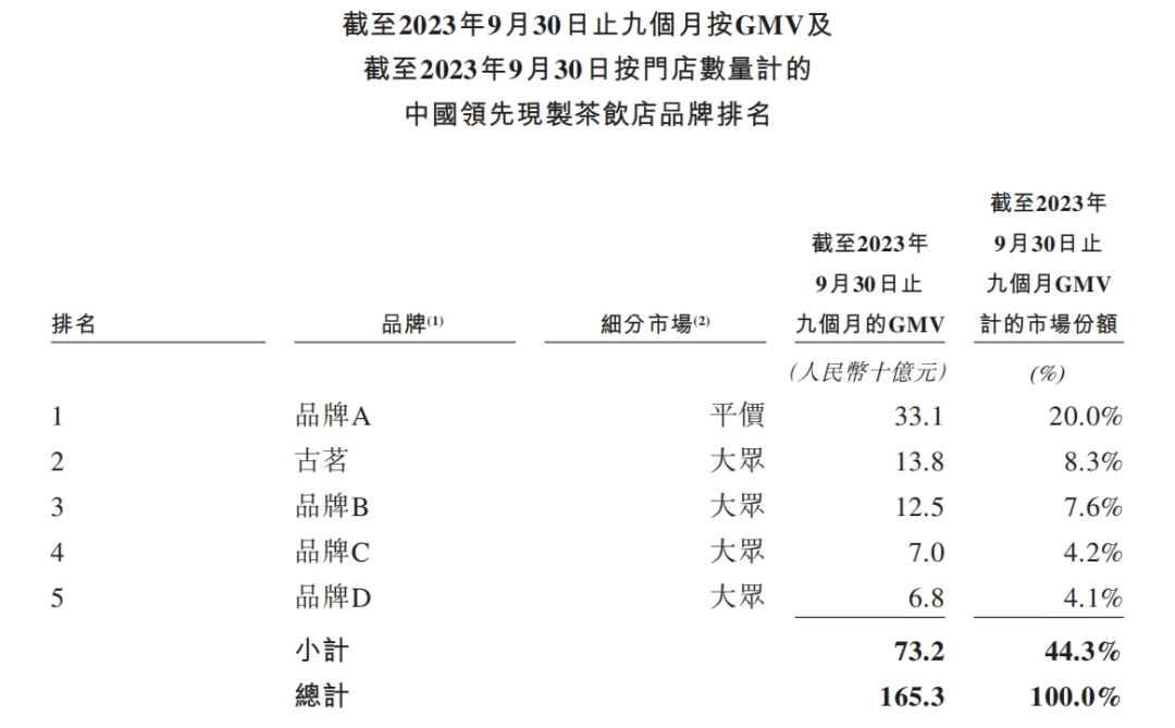 1月2日消息 1月2日,古茗控股有限公司(以下簡稱“古茗”)向港交所遞交招股書。 招股書顯示,截至2023年底,古茗擁有門店數(shù)超過9000家。2023年,古茗門店售出現(xiàn)制飲品12億杯,GMV(商品銷售額)超過192億元。 根據(jù)灼識咨詢報告,按2023年的商品銷售額(GMV)及門店數(shù)量計,古茗均是中國最大的大眾現(xiàn)制茶飲店品牌(10元-20元價格帶),亦是全價格帶下中國第二大現(xiàn)制茶飲店品牌。按截至2023年底的門店數(shù)量計,古茗是全球前五大現(xiàn)制飲品品牌。 在收入與利潤方面,招股書顯示,2023年前三季度,古茗收入55.71億元,同比增長33.9%,經(jīng)調(diào)整利潤(非國際財務(wù)報告準(zhǔn)則計量)為10.45億元。2022年全年,古茗收入為55.59億元,經(jīng)調(diào)整利潤為7.88億元。 根據(jù)灼識咨詢報告,大眾現(xiàn)制茶飲店市場是中國現(xiàn)制茶飲店市場中規(guī)模最大、增長最快的細(xì)分市場。中國大眾現(xiàn)制茶飲店市場的GMV于2022年達(dá)到人民幣865億元,預(yù)計于2027年將進(jìn)一步增加至人民幣2444億元,復(fù)合年增長率為23.1%。其中,二線及以下城市預(yù)計將于2022年至2027年以最快增速發(fā)展,并貢獻(xiàn)大部分的市場增量。 招股書顯示,2023年,古茗門店的GMV超過192億元,截至2023年9月底,在10元-20元的大眾現(xiàn)制茶飲市場,古茗市場份額約16.4%,位列第一,在全價格帶的現(xiàn)制茶飲市場,古茗市場份額約8.3%,位列第二。 門店數(shù)方面,截至2023年底,古茗門店數(shù)超9000家,已覆蓋包括中國各城市線級的約200個城市。其中,約79%的門店位于二線及以下城市。這一比例,在前五的大眾現(xiàn)制茶飲店品牌中最高。 2023年,古茗在二線及以下城市的門店產(chǎn)生的GMV達(dá)到147億元,占約22%的市場份額,是該等城市的大眾現(xiàn)制茶飲店市場中最大品牌。 灼識咨詢報告預(yù)測,2022年至2027年期間,二線及以下城市的中國大眾現(xiàn)制茶飲店市場將享有最快增速,并貢獻(xiàn)大部分的市場增量。 產(chǎn)品方面,古茗策略性地專注于三類飲品:果茶飲品、奶茶飲品、咖啡及其他。根據(jù)招股書,截至2023年9月30日止九個月,果茶飲品合計占售出總杯數(shù)的51%。 供應(yīng)鏈管理為維持穩(wěn)定的產(chǎn)品品質(zhì)提供了支撐。招股書顯示,古茗一體化的供應(yīng)鏈管理包括原料采購、加工、倉儲、物流。古茗僅2022年就采購了逾8.16萬噸新鮮水果,品種超過30種,成為同期中國現(xiàn)制茶飲店品牌中的最大水果采購商。 同時,在冷鏈及物流基礎(chǔ)方面,招股書介紹,2023年前三季度,經(jīng)冷鏈配送的原材料貨值約30億,為中國現(xiàn)制茶飲店行業(yè)最高水平。古茗的倉儲基礎(chǔ)設(shè)施由21個倉庫組成,總建筑面積超過20萬平方米,包括逾4萬立方米、可支持不同的溫度范圍的冷庫。 用戶方面,截至2023年底,小程序的累計注冊會員人數(shù)約9400萬名,2023年第四季度活躍會員人數(shù)超過3600萬名。2023年全年的平均季度復(fù)購率達(dá)到53%,根據(jù)灼識咨詢報告,遠(yuǎn)超過中國大眾現(xiàn)制茶飲店品牌平均低于30%的復(fù)購率。 當(dāng)前,中國現(xiàn)制茶飲店的一個重要演變趨勢是越來越多地采用加盟模式。截至2022年底,加盟店占中國現(xiàn)制茶飲連鎖店總數(shù)的91.8%。 招股書顯示,除了極少數(shù)的幾家門店之外,古茗的門店均是由加盟形式經(jīng)營,收入也主要來自向加盟商銷售商品及設(shè)備,以及提供加盟管理服務(wù)。招股書顯示,古茗的加盟商門店保持了強(qiáng)勁的盈利能力。數(shù)據(jù)顯示,2023年古茗加盟商的單店經(jīng)營利潤達(dá)到37.6萬元,單店經(jīng)營利潤率達(dá)20.2%,根據(jù)識咨詢報告,遠(yuǎn)超同期中國大眾現(xiàn)制茶飲店市場的估計單店經(jīng)營利潤率10 % - 15%。 門店的強(qiáng)勁業(yè)績表現(xiàn)也令加盟商想開更多的古茗門店。截至2023年9月30日,在開設(shè)古茗門店超過兩年的加盟商中,平均每個加盟商經(jīng)營3.1家門店,75%的加盟商經(jīng)營兩家或以上加盟店。 |