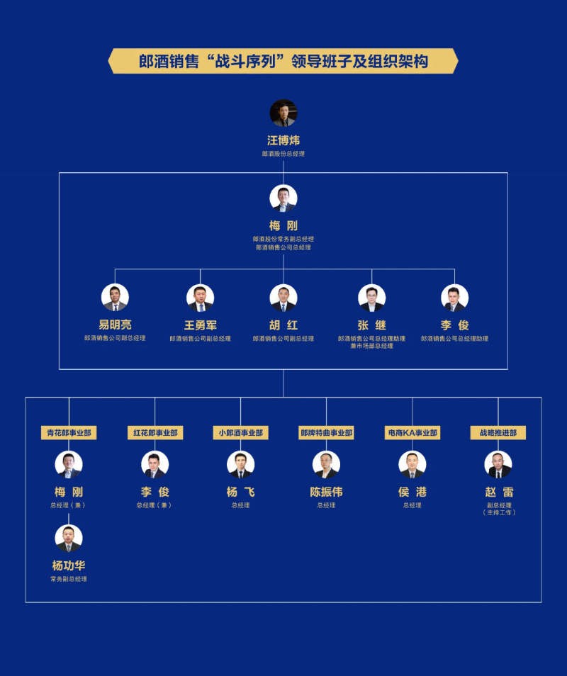 1月3日,郎酒股份通過官方微信公眾號公布了2024年度銷售領(lǐng)導(dǎo)團隊及組織架構(gòu)調(diào)整。 此次調(diào)整涉及多個高層職位,其中郎酒銷售公司總經(jīng)理為梅剛、副總經(jīng)理為易明亮、王勇軍、胡紅,總經(jīng)理助理張繼、李俊。 郎酒銷售公司市場運作體系組成部門包括:青花郎事業(yè)部、紅花郎事業(yè)部、小郎酒事業(yè)部、郎牌特曲事業(yè)部、電商KA事業(yè)部、戰(zhàn)略推進(jìn)部。 同時,郎酒股份副總經(jīng)理陳建偉不再兼任銷售公司常務(wù)副總經(jīng)理,分管郎酒莊園公司;郎酒銷售公司副總經(jīng)理胡紅不再兼任銷售公司青花郎事業(yè)部總經(jīng)理;郎酒銷售公司副總經(jīng)理易明亮不再兼任銷售公司戰(zhàn)略推進(jìn)部總經(jīng)理;李俊晉升任郎酒銷售公司總經(jīng)理助理,兼任銷售公司紅花郎事業(yè)部總經(jīng)理;郎酒銷售公司戰(zhàn)略推進(jìn)部按照事業(yè)部性質(zhì)的經(jīng)營主體管理。 據(jù)了解,這是郎酒股份2021年2月發(fā)布銷售公司組織、人事及領(lǐng)導(dǎo)分工后,最大的一次調(diào)整。除了領(lǐng)導(dǎo)班子調(diào)整,市場運作體系組成部門也較2021年有明顯變化,此前五大部門分別為青花郎事業(yè)部、郎牌特曲事業(yè)部、小郎酒事業(yè)部、綜合渠道事業(yè)部、市場部,2024年的最新調(diào)整也意味著郎酒對紅花郎以及電商渠道等業(yè)務(wù)的重視。 事實上,早在2023年8月,郎酒股份就實施了近年來最重要的人事變動。其中,公司副董事長汪博煒出任郎酒股份總經(jīng)理,付饒任郎酒股份副董事長。有分析認(rèn)為,這一戰(zhàn)略調(diào)整展現(xiàn)了郎酒新領(lǐng)導(dǎo)班子群像:高知化、專業(yè)化、年輕化。同時,也意味著郎酒正在完成從內(nèi)到外的系統(tǒng)蛻變重構(gòu),形成體系力量,實現(xiàn)從量變到質(zhì)變的提升。 |