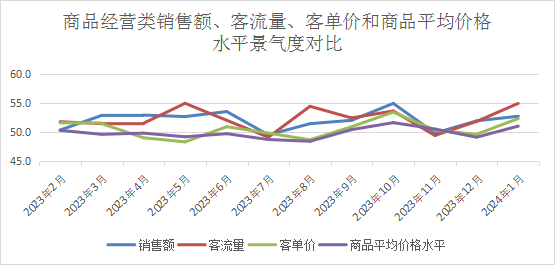 本文來(lái)源 / 中國(guó)商業(yè)聯(lián)合會(huì) 2024年1月6日,中國(guó)商業(yè)聯(lián)合會(huì)發(fā)布1月份中國(guó)零售業(yè)景氣指數(shù)(CRPI)。 1月份,中國(guó)零售業(yè)景氣指數(shù)(CRPI)為50.9%,較上月微升0.5個(gè)百分點(diǎn)。數(shù)據(jù)顯示,1月份CRPI分行業(yè)指數(shù)同步上升,所有單項(xiàng)指數(shù)均處于擴(kuò)張區(qū)間。 分析認(rèn)為,新年伊始,零售企業(yè)回望過(guò)去一年克服重重困難,一路前行;新的一年更是提振信心,在國(guó)家“消費(fèi)促進(jìn)年”系列政策推動(dòng)下,全國(guó)年貨購(gòu)物節(jié)、老字號(hào)嘉年華、中華美食薈等促銷(xiāo)費(fèi)活動(dòng)精彩紛呈,將有力激發(fā)市場(chǎng)活力,滿(mǎn)足居民家庭聚會(huì)、商旅文體融合的多元消費(fèi)需求。零售企業(yè)預(yù)期2024年度將迎來(lái)開(kāi)門(mén)紅。 一、中國(guó)零售業(yè)景氣指數(shù)運(yùn)行情況 從行業(yè)分類(lèi)看,商品經(jīng)營(yíng)類(lèi)指數(shù)為50.7%,較上月微升0.6個(gè)百分點(diǎn);租賃經(jīng)營(yíng)類(lèi)指數(shù)為52.6%,較上月微升0.7個(gè)百分點(diǎn);電商經(jīng)營(yíng)類(lèi)指數(shù)為50.4%,較上月微升0.2個(gè)百分點(diǎn)。 (一)商品經(jīng)營(yíng)類(lèi)CRPI分析 構(gòu)成商品經(jīng)營(yíng)類(lèi)CRPI的3個(gè)正向分指數(shù)銷(xiāo)售額、盈利水平和客單價(jià)水平均處于臨界點(diǎn)上方,1個(gè)反向分指數(shù)主營(yíng)運(yùn)營(yíng)成本處于臨界點(diǎn)下方。 銷(xiāo)售額指數(shù)為52.7%,較上月微升0.8個(gè)百分點(diǎn),表明新年伊始,商品經(jīng)營(yíng)類(lèi)企業(yè)對(duì)線(xiàn)下銷(xiāo)售預(yù)期繼續(xù)趨好。 盈利水平指數(shù)為51.7%,較上月上升1.5個(gè)百分點(diǎn),增幅較銷(xiāo)售額指數(shù)高0.7個(gè)百分點(diǎn),表明商品經(jīng)營(yíng)類(lèi)企業(yè)對(duì)1月份盈利增長(zhǎng)預(yù)期較為樂(lè)觀。 客單價(jià)水平指數(shù)為52.3%,較上月上升2.7個(gè)百分點(diǎn),表明商品經(jīng)營(yíng)類(lèi)企業(yè)預(yù)期1月份線(xiàn)下零售客單價(jià)將升高。 主營(yíng)業(yè)務(wù)運(yùn)營(yíng)成本反向指數(shù)為47.7%,較上月微降0.5個(gè)百分點(diǎn),表明商品經(jīng)營(yíng)類(lèi)企業(yè)預(yù)期本月主營(yíng)業(yè)務(wù)運(yùn)營(yíng)成本繼續(xù)增加。 (二)租賃經(jīng)營(yíng)類(lèi)CRPI 構(gòu)成租賃經(jīng)營(yíng)類(lèi)CRPI的3個(gè)正向分指數(shù)平均單店租金收入、商鋪出租率和運(yùn)營(yíng)場(chǎng)所增減處于臨界點(diǎn)上方;1個(gè)反向分指數(shù)綜合運(yùn)營(yíng)成本變化處于臨界點(diǎn)下方。 平均單店租金收入指數(shù)為54.6%,較上月小幅上升1.4個(gè)百分點(diǎn)。分析認(rèn)為,受年底下沉市場(chǎng)客流量增加影響,租賃經(jīng)營(yíng)類(lèi)企業(yè)預(yù)期1月份平均單店租金收入繼續(xù)增長(zhǎng)。 商鋪出租率指數(shù)為53.9%,較上月微升0.3個(gè)百分點(diǎn),繼續(xù)維持在較高景氣區(qū)間,波動(dòng)幅度穩(wěn)定。 經(jīng)營(yíng)場(chǎng)所增減指數(shù)為53.2%,較上月上升1.8個(gè)百分點(diǎn)。 綜合運(yùn)營(yíng)成本反向指數(shù)為49.3%,較上月微0.3個(gè)百分點(diǎn),表明租賃經(jīng)營(yíng)類(lèi)企業(yè)綜合營(yíng)業(yè)成本保持平穩(wěn)。 (三)電商經(jīng)營(yíng)類(lèi)CRPI分析 構(gòu)成電商經(jīng)營(yíng)類(lèi)CRPI的2個(gè)正向分指數(shù)電商實(shí)物總銷(xiāo)售額指數(shù)和電商業(yè)務(wù)在線(xiàn)總商品數(shù)處于臨界點(diǎn)以上,1個(gè)正向分指數(shù)電商業(yè)務(wù)客單價(jià)水平和1個(gè)反向分指數(shù)電商業(yè)務(wù)總成本處于臨界點(diǎn)以下。 電商業(yè)務(wù)實(shí)物總銷(xiāo)售額指數(shù)為50.4%,較上月微降0.8個(gè)百分點(diǎn)。即將到來(lái)的春節(jié)假期是電商銷(xiāo)售的傳統(tǒng)淡季,電商經(jīng)營(yíng)類(lèi)企業(yè)銷(xiāo)售預(yù)期繼續(xù)回落,但仍處于擴(kuò)張區(qū)間。 電商業(yè)務(wù)在線(xiàn)總商品數(shù)指數(shù)為52.3%,較上月小幅回升1.1個(gè)百分點(diǎn),表明電商經(jīng)營(yíng)類(lèi)企業(yè)備貨意愿有所增加。 電商業(yè)務(wù)客單價(jià)指數(shù)為52.2%,較上月回升2.6個(gè)百分點(diǎn)。 電商業(yè)務(wù)總成本反向指數(shù)為47.0%,較上月小幅下降1.8個(gè)百分點(diǎn),表明電商經(jīng)營(yíng)類(lèi)企業(yè)電商業(yè)務(wù)總成本有所回升。 二、2024年1月零售業(yè)景氣度綜合分析 2024年1月零售業(yè)景氣度呈現(xiàn)如下特點(diǎn): (一)CRPI三個(gè)分指數(shù)顯示,假日經(jīng)濟(jì)提振市場(chǎng)信心,商品經(jīng)營(yíng)類(lèi)企業(yè)景氣度、電商經(jīng)營(yíng)類(lèi)企業(yè)景氣度和租賃經(jīng)營(yíng)類(lèi)企業(yè)景氣度三大指數(shù)集體上升。 (二)1月商品經(jīng)營(yíng)類(lèi)企業(yè)的銷(xiāo)售額、客流量、客單價(jià)和商品平均價(jià)格水平景氣度同步上升。 1.指標(biāo)釋義 中國(guó)零售業(yè)景氣指數(shù)(CRPI)是反映當(dāng)期零售業(yè)經(jīng)營(yíng)預(yù)期變化情況的綜合指數(shù)。CRPI高于50%時(shí),反映零售業(yè)總體較上月擴(kuò)張;低于50%,則反映零售業(yè)總體較上月收縮。CRPI是通過(guò)對(duì)中國(guó)零售業(yè)運(yùn)營(y