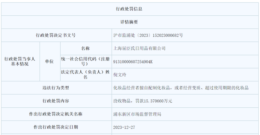 近日,據(jù)南方都市報報道,上海屈臣氏門店因營銷活動中擅自分裝化妝品而遭到行政處罰。 處罰事由顯示,自2021年1月28日起,當事人在全市各門店推行“任試瓶·會員免費領”活動,會員到店選擇心儀的洗護、沐浴類化妝品,現(xiàn)場選擇并自行分裝至試用裝塑料瓶后免費帶走,上述試用裝無任何中文標簽。行政處罰書顯示,上海市屈臣氏日用品有限公司因擅自配制化妝品,或者經(jīng)營變質(zhì)、超過使用期限的化妝品被處以罰款15.370660萬元,并沒收物品。 據(jù)屈臣氏母公司長江和記實業(yè)有限公司發(fā)布的2023年上半年業(yè)績報告顯示,屈臣氏中國上半年營收總額88.84億港元,同比下降8%,是近三年最低水平。此外,財報數(shù)據(jù)顯示,屈臣氏全球店鋪數(shù)從2021年的16398家減少至2022年的16142家。 |
