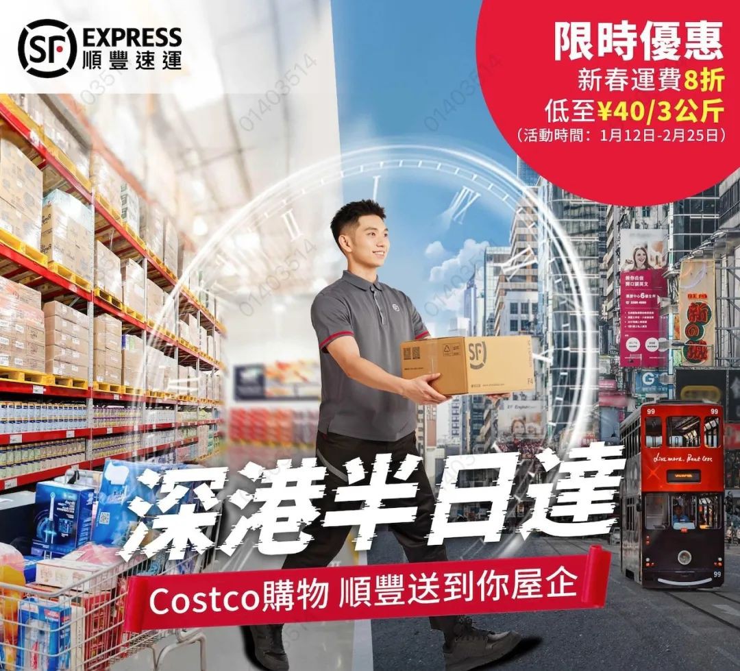 1月12日,順豐速運(yùn)派流動服務(wù)車現(xiàn)場進(jìn)駐開市客深圳首店,并公布推出“深港半日達(dá)“八折優(yōu)惠,首3公斤收費(fèi)40元,續(xù)重每0.5公斤收費(fèi)4元(約4.5港元),優(yōu)惠期2月25日。(香港01) |