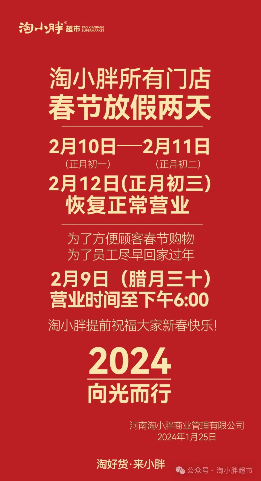 1月25日,淘小胖超市發(fā)布了2024年淘小胖春節(jié)放假通知。 通知稱,春節(jié)期間,淘小胖所有門店春節(jié)放假兩天,從2月10日(正月初一)至2月11日(正月初二),將在2月12日(正月初三)恢復正常營業(yè)。 根據官方消息,淘小胖定位高精品超市。為了確保產品品質,超市采取全自營的運營模式,為滿足年輕消費客群需求,進口商品品類有7000多個,占到總品類的40%。 目前,淘小胖已開設了四家門店,分別位于龍湖店、長葛店、安陽店和正弘匯店。 不過,值得一提的是,根據企查查顯示,河南淘小胖商業(yè)管理有限公司成立于2021年年底,其法定代表人郭軍濤曾是許昌市胖東來商貿集團有限公司高管。在此之前,郭軍濤還擔任過胖東來超市有限公司總經理。同時也是許昌市胖東來超市有限公司名酒專賣店法定代表人,不過該公司目前已經注銷,郭軍濤也早已離開胖東來。 |