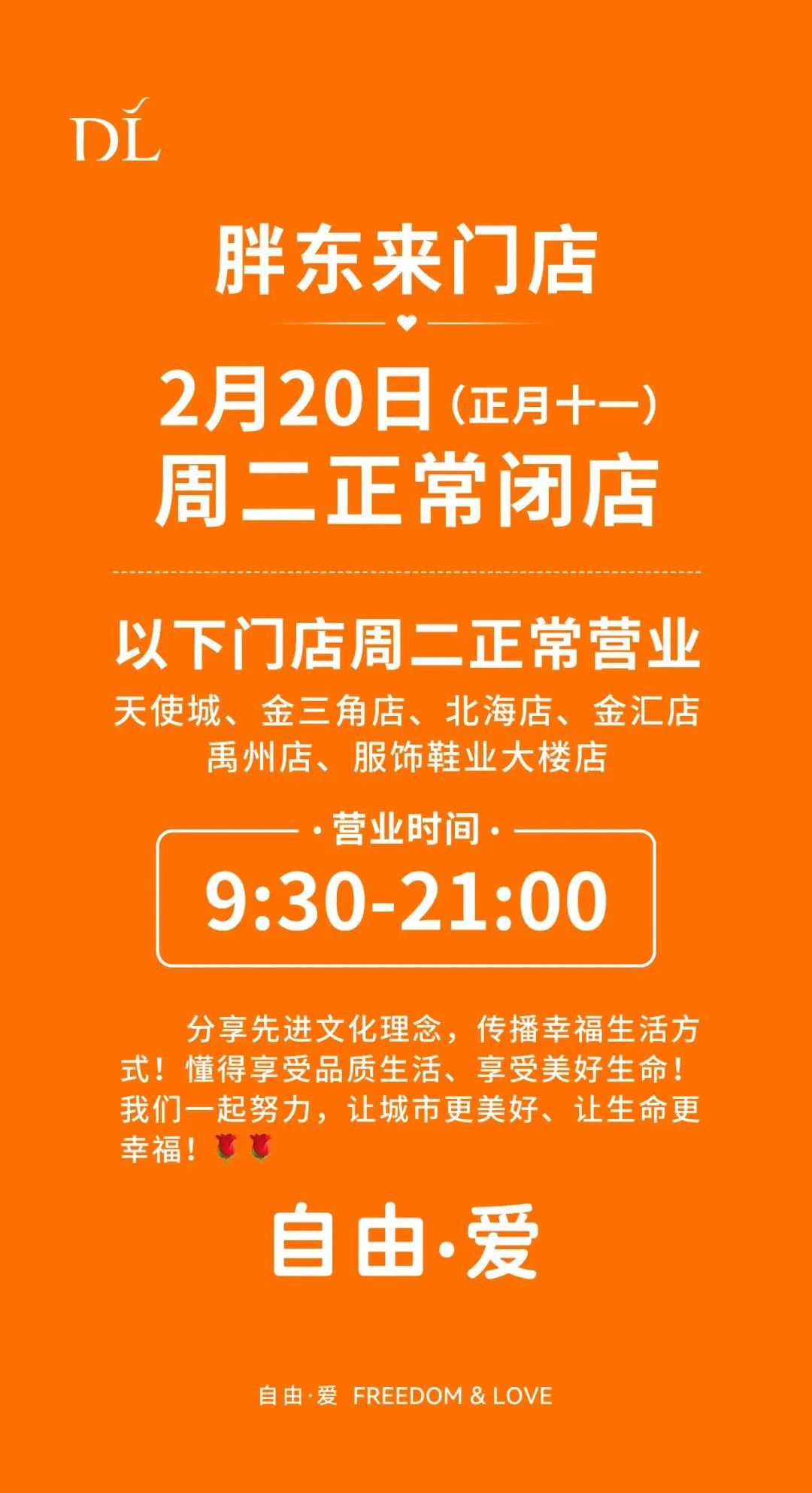 2月17日,胖東來官方公眾號發(fā)布周二正常閉店通知。 據(jù)公告,胖東來門店將于2月20日(農(nóng)歷正月十一)周二正常閉店。其中天使城、金三角店、北海店、金匯店、禹州店以及服飾鞋業(yè)大樓店將正常營業(yè),其營業(yè)時間從早上09:30營業(yè)至晚上21:00。 |