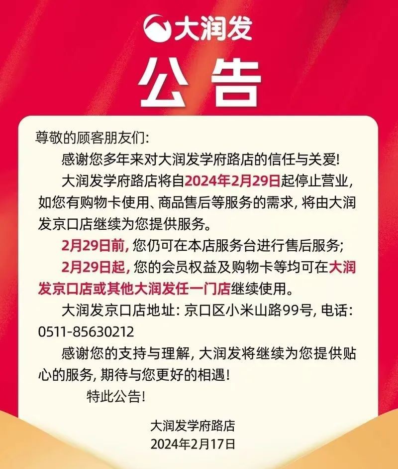 2024年,超市行業(yè)仍然處于不斷地調(diào)整之中。 春節(jié)假期剛剛結(jié)束,大潤發(fā)超市在四川德陽、江蘇鎮(zhèn)江以及湖南株洲的門店相繼傳出了閉店的消息。 據(jù)“德陽房幫幫”稱,2月17日,大潤發(fā)德陽店發(fā)布公告表示,將于2024年2月26日起停止?fàn)I業(yè)。在閉店之前,顧客仍可在本店服務(wù)臺進(jìn)行售后服務(wù);而2月26日起,可在大潤發(fā)任一家門店享受所有的會員權(quán)益,如購物卡、會員積分、售后服務(wù)等。 圖來源:網(wǎng)絡(luò)。 與此同時(shí),位于江蘇鎮(zhèn)江京口區(qū)的大潤發(fā)學(xué)府路店(原歐尚超市)也于2月17日宣布,將于2024年2月29日起停止?fàn)I業(yè)。對于顧客的購物卡使用、商品售后等服務(wù)需求,將由大潤發(fā)京口店繼續(xù)提供服務(wù)。 圖來源:鎮(zhèn)江樓市。 另外,大潤發(fā)株洲店也在2月19日發(fā)布公告,宣布將于2024年3月4日起停業(yè)。在閉店前,顧客仍可前往本店服務(wù)臺進(jìn)行售后服務(wù);3月4日起,大潤發(fā)任一門店將為顧客提供所有的會員權(quán)益。 圖來源:直播株洲。 對于閉店的具體原因,大潤發(fā)方面目前尚未給出明確答復(fù)。然而,不少業(yè)內(nèi)人士和網(wǎng)友猜測,這可能與消費(fèi)者購物習(xí)慣的變化、電商的崛起、同行間的競爭以及租金上漲等多重因素有關(guān)。隨著這些因素的不斷影響,零售業(yè)的利潤空間逐漸受到擠壓,導(dǎo)致部分門店難以為繼。 根據(jù)高鑫零售2024財(cái)年(2023年4-9月)中期數(shù)據(jù),公司營收下滑11.9%至357.68億元;歸母凈利潤虧損擴(kuò)大334.5%至3.78億元。面對挑戰(zhàn),作為第二增長曲線的中超業(yè)態(tài)大潤發(fā)Super, M會員商店均加速開店。其中,大潤發(fā)Super在濟(jì)南、唐山、吉林松原和長春、蘭州、東莞市新開了7家門店,至財(cái)年結(jié)束,預(yù)計(jì)還會再開7家。 M會員商店自去年4月在揚(yáng)州開出全國首店后,付費(fèi)會員數(shù)近10萬。高鑫零售方面透露,M會員商店已啟動四店、五店的拉新、招聘等前期工作,并預(yù)計(jì)在2024財(cái)年結(jié)束前開出3家門店。目前,全國已有三家營業(yè)門店,分別是揚(yáng)州首店、常州店和南京店。截至2023年9月30日,大潤發(fā)母公司高鑫零售共擁有485家大賣場、19家中型超市。 此外,瑞銀在最新的研報(bào)中也對高鑫零售的轉(zhuǎn)型給予了肯定,并維持了“買入”評級,目標(biāo)價(jià)由2.3港元下調(diào)至2.08港元。雖然目標(biāo)股價(jià)有所下調(diào),但這也反映出市場對高鑫零售未來發(fā)展的期待和關(guān)注。 此次評級調(diào)整的主要原因在于高鑫零售集團(tuán)從傳統(tǒng)超市業(yè)務(wù)向會員店鋪的多元化發(fā)展,以及資本應(yīng)用和營運(yùn)效益的改善。 報(bào)告還指出,阿里巴巴可能出售其在高鑫零售的股份,這可能會加速高鑫零售的業(yè)務(wù)調(diào)整,包括關(guān)閉非核心地區(qū)的虧損店鋪。 隨著市場的不斷變化,高鑫零售將如何調(diào)整戰(zhàn)略、應(yīng)對挑戰(zhàn),值得持續(xù)關(guān)注。 |
