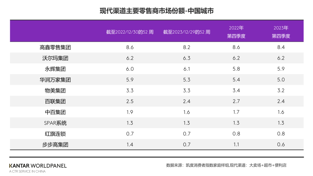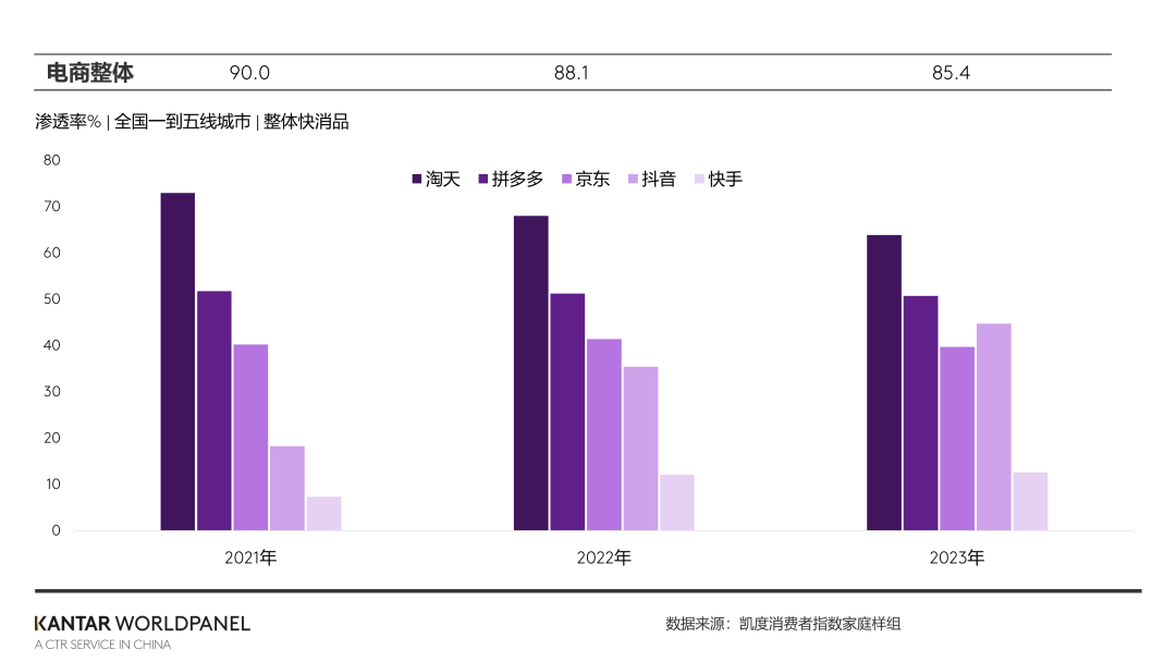 2023年,消費(fèi)者依然保持了就近在社區(qū)購物的習(xí)慣。 雖然客單價(jià)的降低導(dǎo)致小業(yè)態(tài)銷售額增速有所放緩,但小超市和便利店不斷加強(qiáng)為消費(fèi)者在時(shí)間、空間和服務(wù)上提供的便利,圍繞場(chǎng)景化、服務(wù)化和個(gè)性化等新消費(fèi)趨勢(shì),開創(chuàng)全新的服務(wù)體驗(yàn)。 凱度消費(fèi)者指數(shù)的數(shù)據(jù)顯示,美宜佳、紅旗連鎖、羅森等領(lǐng)導(dǎo)品牌在2023年的市場(chǎng)份額相比去年均有所提升。 最新公開數(shù)據(jù)顯示,美宜佳堅(jiān)守不變的社區(qū)特性和下沉趨勢(shì),在逆勢(shì)中強(qiáng)勁發(fā)展,實(shí)現(xiàn)營(yíng)收額和門店數(shù)量的雙增長(zhǎng),目前門店數(shù)量超過3萬家,成為中國(guó)便利店的領(lǐng)導(dǎo)品牌。 未來一年,近場(chǎng)渠道也必將面臨著整體消費(fèi)增速放緩和社區(qū)折扣業(yè)態(tài)的競(jìng)爭(zhēng),以及對(duì)生意流量的搶奪。 小業(yè)態(tài)品牌需要進(jìn)一步完善供應(yīng)鏈體系和數(shù)字化賦能,敏捷應(yīng)對(duì)周邊消費(fèi)者的變化。 同時(shí),大業(yè)態(tài)品牌也在積極布局社區(qū)零售,通過開設(shè)更小面積的門店、精簡(jiǎn)SKU,并增加對(duì)生鮮的投入,通過線上線下融合的模式,滿足消費(fèi)者的多時(shí)段、多場(chǎng)景的購物需求。 凱度消費(fèi)者指數(shù)的研究表明,2023年便利店渠道的滲透率在上線城市增長(zhǎng)趨緩,而中低線城市,特別是地級(jí)市成為主要的增長(zhǎng)動(dòng)力。 與國(guó)際上便利店發(fā)展成熟的市場(chǎng)相比,我國(guó)多數(shù)城市便利店的飽和度還有較大的提升空間。 對(duì)于連鎖零售商而言,隨著越來越多的外資和本土便利店品牌進(jìn)入三四線城市,近場(chǎng)消費(fèi)仍蘊(yùn)藏著巨大的發(fā)展?jié)撃堋?/div> 2、傳統(tǒng)商超轉(zhuǎn)型關(guān)鍵之年,會(huì)員店短兵相接 大賣場(chǎng)在2023年銷售額加速下滑,在整體市場(chǎng)中的銷售份額降低1.8個(gè)百分點(diǎn)。大超市雖處于下跌通道,但整體表現(xiàn)優(yōu)于大賣場(chǎng)。 2024年大型業(yè)態(tài)將繼續(xù)面臨巨大的沖擊,唯有通過商品差異化、供應(yīng)鏈優(yōu)化、創(chuàng)建特色門店、精細(xì)化運(yùn)營(yíng)等變革,才有機(jī)會(huì)在激烈的全渠道競(jìng)爭(zhēng)中得以生存。 值得注意的是,部分傳統(tǒng)品牌的轉(zhuǎn)型在2023年已初見成效。 永輝旗下的精品超市Bravo在現(xiàn)代渠道的份額有所提升,滲透率也與2022年基本持平。永輝在逆勢(shì)開新店的同時(shí),持續(xù)推進(jìn)門店優(yōu)化和迭代的調(diào)整,提升門店“人貨場(chǎng)”的顆粒度改造,強(qiáng)化“一店一議”精細(xì)化運(yùn)營(yíng)能力。 凱度消費(fèi)者指數(shù)的監(jiān)測(cè)顯示,2023年有超過10%的中國(guó)家庭在會(huì)員店購買過快速消費(fèi)品,會(huì)員店銷售額對(duì)比2022年整體增速超過40%。2024年隨著主要會(huì)員店巨頭加快展店,競(jìng)爭(zhēng)將進(jìn)一步白熱化,在一些重點(diǎn)城市進(jìn)入短兵相接的狀態(tài)。 短期來看,外資零售商將繼續(xù)保持優(yōu)勢(shì)。山姆和麥德龍目前仍占據(jù)絕對(duì)份額并繼續(xù)保持高速增長(zhǎng),本土品牌盒馬X、大潤(rùn)發(fā)M會(huì)員商店和Fudi等,無論在現(xiàn)有門店數(shù)量還是開店速度上,與外資巨頭們?nèi)杂忻黠@差距。 但在消費(fèi)分級(jí)、追求性價(jià)比成為共識(shí)的當(dāng)下,本土?xí)䥺T店紛紛推出更符合中國(guó)消費(fèi)者日常需求、分量更小的產(chǎn)品,價(jià)格競(jìng)爭(zhēng)上也更加激進(jìn)。 但從長(zhǎng)期來看,會(huì)員店只有在選品、供應(yīng)鏈和產(chǎn)品開發(fā)上進(jìn)行長(zhǎng)期投入,聚焦核心客戶群,用更好的體驗(yàn)吸引客戶到店,同時(shí)實(shí)現(xiàn)錯(cuò)位競(jìng)爭(zhēng),才有望實(shí)現(xiàn)長(zhǎng)期可持續(xù)的發(fā)展。 3、電商競(jìng)爭(zhēng)“低價(jià)”心智,抖音滲透率或超拼多多 2023年,隨著消費(fèi)者生活恢復(fù)常態(tài),部分消費(fèi)者購物回到線下,中國(guó)快速消費(fèi)品電商滲透率下滑近3個(gè)百分點(diǎn)。 伴隨著促銷的常態(tài)化,消費(fèi)者在電商上購買頻次有顯著提高,全年銷售額仍增長(zhǎng)5.3%。 近年來移動(dòng)互聯(lián)網(wǎng)流量見頂,紅利逐漸飽和,競(jìng)爭(zhēng)的同質(zhì)化都促使各大平臺(tái)加大力度投入價(jià)格的"攻防大戰(zhàn)"。 隨著消費(fèi)者日趨理性,簡(jiǎn)單直接的低價(jià)營(yíng)銷也無法激發(fā)額外的增量。消費(fèi)者習(xí)慣在價(jià)格上"貨比三家",對(duì)平臺(tái)的忠誠(chéng)度也在不斷降低。 凱度消費(fèi)者指數(shù)的數(shù)據(jù)顯示,淘天、京東及拼多多電商滲透率對(duì)比2022年均有所下滑。 為了在消費(fèi)者心中長(zhǎng)期建立價(jià)格優(yōu)勢(shì),平臺(tái)必須提升供應(yīng)鏈效率,降低履約成本,擴(kuò)大性價(jià)比更高的非自營(yíng)商品生態(tài)。 興趣電商的強(qiáng)勢(shì)崛起和“直播間里的全網(wǎng)最低價(jià)”給傳統(tǒng)的貨架電商造成極大沖擊。 凱度消費(fèi)者指數(shù)的數(shù)據(jù)表明,抖音在2023年吸引了超過40%的中國(guó)城市家庭購買快速消費(fèi)品,位列電商平臺(tái)