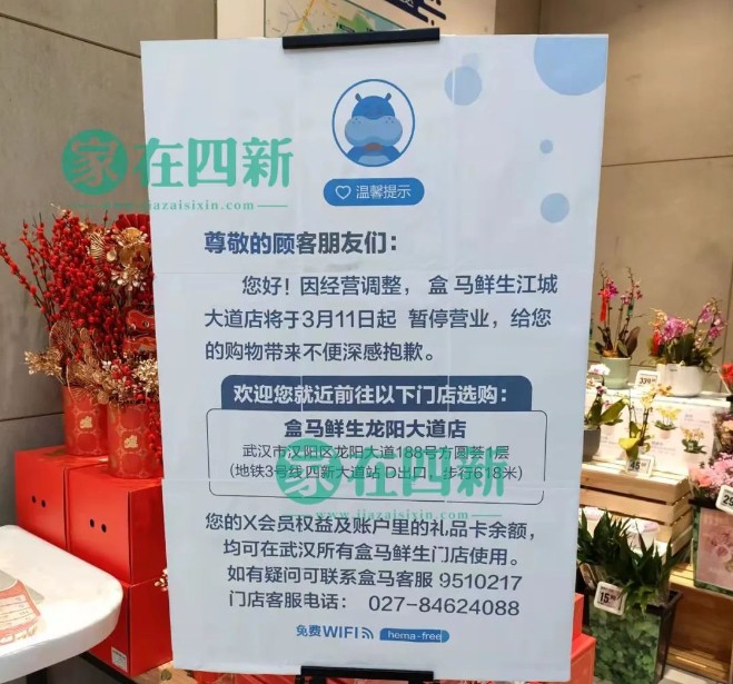 3月5日消息,因經(jīng)營調(diào)整,盒馬鮮生江城大道店將于3月11日起暫停營業(yè)。 資料顯示,盒馬鮮生四新江城大道店,位于漢陽江城大道綠地中央廣場(chǎng)商業(yè)樓,于2018年10月31日正式開業(yè),這是盒馬進(jìn)駐武漢后在漢陽開的首家店鋪。 不過,隨著市場(chǎng)的不斷變化和競(jìng)爭(zhēng)的加劇,盒馬也在尋求更適應(yīng)當(dāng)前環(huán)境的經(jīng)營策略。因此,今年以來,盒馬已經(jīng)陸續(xù)關(guān)閉了家信店和中山店,分別是在2月29日和3月1日。這些調(diào)整旨在優(yōu)化門店布局,提升運(yùn)營效率,以更好地滿足消費(fèi)者的需求。 |