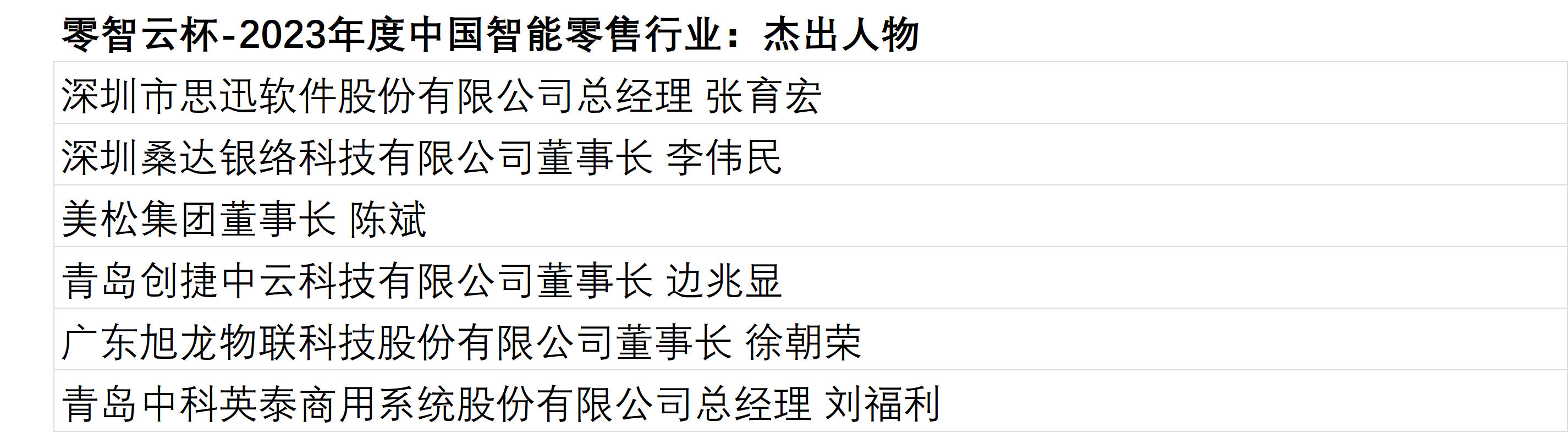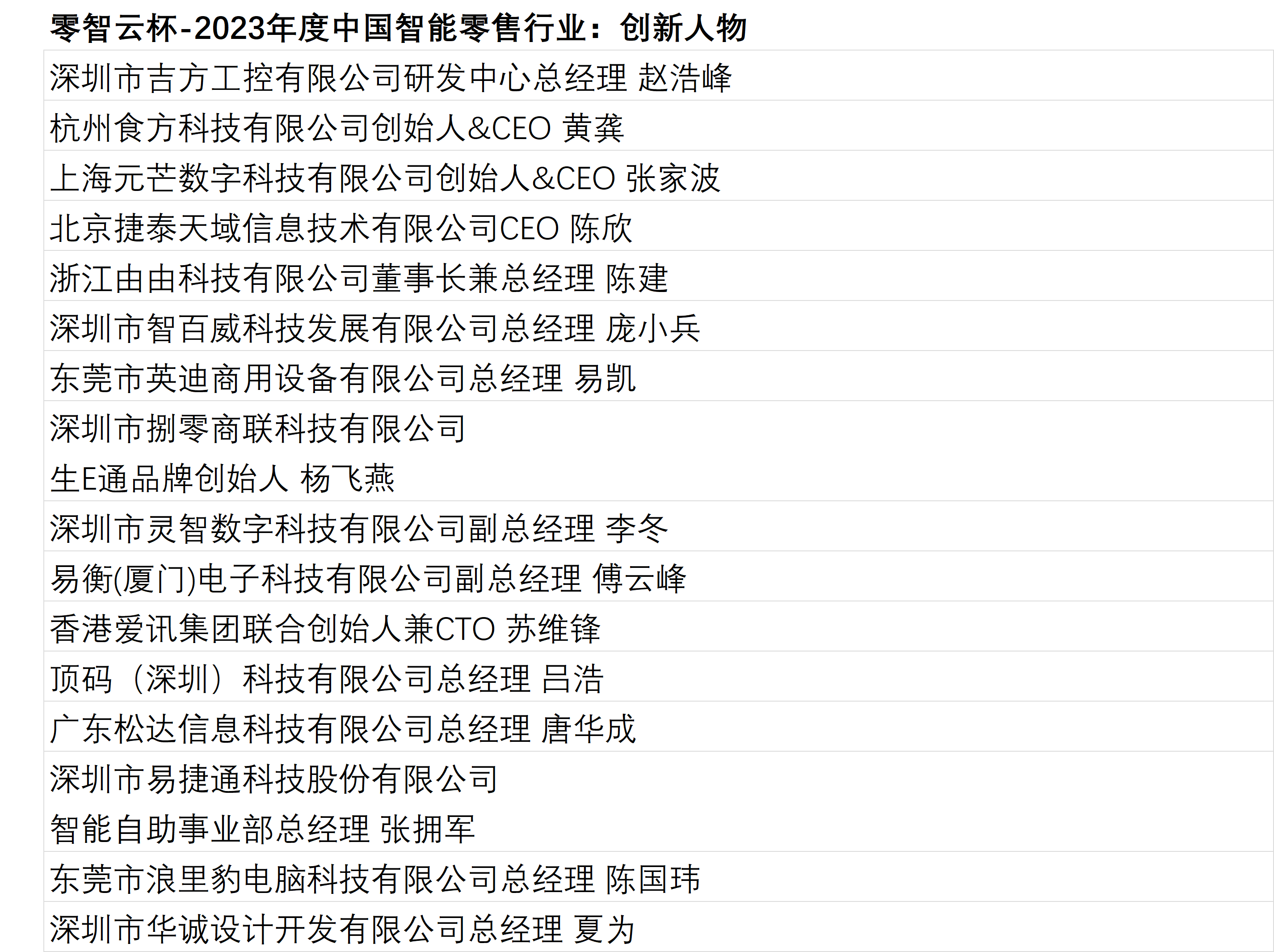 “食方之夜”零智云杯 3月12日晚, 2024智慧門(mén)店創(chuàng)新高峰論壇暨智慧零售邊緣計(jì)算大會(huì)上海站及答謝晚宴在上海新華聯(lián)索菲特大酒店隆重舉辦,備受矚目的“食方之夜”零智云杯2023年度中國(guó)智能零售行業(yè)評(píng)選活動(dòng)頒獎(jiǎng)盛典同期舉辦。零智云杯評(píng)選活動(dòng),旨在表彰在智能零售領(lǐng)域做出杰出貢獻(xiàn)的品牌和人物,推動(dòng)行業(yè)的發(fā)展與創(chuàng)新。 活動(dòng)現(xiàn)場(chǎng)星光璀璨,眾多智能零售行業(yè)的領(lǐng)袖、企業(yè)家、專家學(xué)者以及媒體代表齊聚一堂,共同見(jiàn)證這一榮譽(yù)時(shí)刻。晚宴在熱烈的氛圍中拉開(kāi)帷幕。 主辦方深圳市零售智能信息化行業(yè)協(xié)會(huì)會(huì)長(zhǎng)、深圳市吉方工控有限公司董事長(zhǎng)李洪明為晚宴致辭,介紹了評(píng)選活動(dòng)的背景和意義,強(qiáng)調(diào)中國(guó)智能零售行業(yè)在全球市場(chǎng)的重要地位以及此次評(píng)選活動(dòng)的目的。 本次頒獎(jiǎng)盛典得到了副會(huì)長(zhǎng)單位杭州食方科技有限公司的大力支持,食方科技董事長(zhǎng)黃龔為活動(dòng)致辭,并分享了食方科技的品牌理念以及其為零售智能信息化行業(yè)進(jìn)步所做的努力與成果。當(dāng)前,食方科技已在食物的消費(fèi)環(huán)節(jié)進(jìn)行數(shù)字化賦能,作為食物智能計(jì)算概念的開(kāi)創(chuàng)者、食物智能計(jì)算產(chǎn)業(yè)的開(kāi)拓者和引領(lǐng)者,食方科技接下來(lái)將逐步漸進(jìn)地在食物的全生命周期環(huán)節(jié)進(jìn)行布局。 英特爾公司網(wǎng)絡(luò)與邊緣事業(yè)部中國(guó)區(qū)行業(yè)銷售總監(jiān)謝青山、協(xié)會(huì)會(huì)長(zhǎng)李洪明、副會(huì)長(zhǎng)黃龔共同為活動(dòng)祝酒。 頒獎(jiǎng)儀式 在隨后進(jìn)行的頒獎(jiǎng)環(huán)節(jié),品牌類和人物類兩大獎(jiǎng)項(xiàng)逐一揭曉。品牌類獎(jiǎng)項(xiàng)旨在表彰在智能零售領(lǐng)域表現(xiàn)突出的企業(yè),這些企業(yè)在產(chǎn)品創(chuàng)新、市場(chǎng)拓展、技術(shù)應(yīng)用等方面取得了顯著成績(jī),為行業(yè)的發(fā)展樹(shù)立了榜樣。人物類獎(jiǎng)項(xiàng)則聚焦于那些在智能零售領(lǐng)域做出杰出貢獻(xiàn)的個(gè)人,他們以其卓越的領(lǐng)導(dǎo)才能、創(chuàng)新思維和行業(yè)影響力,引領(lǐng)著智能零售行業(yè)的發(fā)展方向。 活動(dòng)抽獎(jiǎng) 此外,晚宴現(xiàn)場(chǎng)還設(shè)置了多個(gè)抽獎(jiǎng),與會(huì)嘉賓們積極參與其中,抽獎(jiǎng)獎(jiǎng)品由東莞市威觸智能科技有限公司及杭州食方科技有限公司提供。 傳遞品牌力量,見(jiàn)證行業(yè)發(fā)展!講述中國(guó)零售智能信息化行業(yè)精彩故事!此次“零智云杯”2023年度中國(guó)智能零售行業(yè)評(píng)選活動(dòng)頒獎(jiǎng)晚宴的成功舉辦,不僅為智能零售行業(yè)樹(shù)立了一個(gè)行業(yè)標(biāo)桿,也為業(yè)內(nèi)人士提供了一個(gè)交流合作的平臺(tái)。相信在未來(lái)的日子里,智能零售行業(yè)將在不斷創(chuàng)新和發(fā)展中迎來(lái)更加美好的明天。 獲獎(jiǎng)代表上臺(tái)領(lǐng)獎(jiǎng) 零智云杯獎(jiǎng)項(xiàng)的獲得是對(duì)企業(yè)過(guò)去一年努力的肯定,也是對(duì)未來(lái)發(fā)展的鞭策。他們將繼續(xù)保持創(chuàng)新精神,加大研發(fā)投入,不斷提升產(chǎn)品和服務(wù)質(zhì)量,為智能零售行業(yè)的發(fā)展貢獻(xiàn)更多力量。 獲得人物類獎(jiǎng)項(xiàng)的個(gè)人同樣備受矚目。這些行業(yè)精英在智能零售領(lǐng)域取得了卓越成就,他們的成功故事和行業(yè)經(jīng)驗(yàn)為業(yè)內(nèi)人士提供了寶貴的參考也鼓勵(lì)著行業(yè)同仁要勇于嘗試、敢于創(chuàng)新,為智能零售行業(yè)的發(fā)展貢獻(xiàn)自己的力量。 行業(yè)的蓬勃發(fā)展,離不開(kāi)以“燈塔”之光照亮前行道路,為行業(yè)樹(shù)立更多時(shí)代潮頭的時(shí)代技術(shù)創(chuàng)新追光典范,祝賀所有獲獎(jiǎng)企業(yè)及個(gè)人。期待行業(yè)伙伴繼續(xù)貫徹落實(shí)創(chuàng)新驅(qū)動(dòng)高質(zhì)量發(fā)展戰(zhàn)略,助推行業(yè)科技創(chuàng)新工作不斷向好發(fā)展。 獲獎(jiǎng)名單(排名不分先后) |