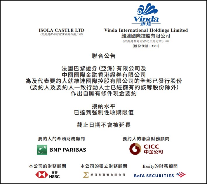 3月11日,維達國際發(fā)布公告,于2024年3月11日,已接獲Essity GH就其全部約6.21億股股份發(fā)出的要約有效接納,占公司于本公告日期已發(fā)行股本約 51.59%。因此,要約的條件已獲達成。 這意味著,新加坡金鷹集團旗下亞太資源集團,以每股23.5港元的價格收購維達國際,要約收購中所列舉的先決性條款已經(jīng)全部達成,要約已經(jīng)宣布為無條件。 根據(jù)公告顯示,本次收購總價值261.026億港元(約合240億元人民幣),約為33.42億美元。維達創(chuàng)始人李朝旺辭去董事會主席職務(wù),多位亞太資源集團背景的人士入主董事會。該筆交易為目前最大的中國紙品行業(yè)股權(quán)交易,亦可能成為今年亞太地區(qū)最大金額的快消行業(yè)并購案例。 維達起家于廣東,由李朝旺創(chuàng)建。作為知名本土紙巾企業(yè),維達國際擁有“維達”“得寶Tempo”等家喻戶曉的紙巾品牌。 金鷹集團由印尼前首富陳江和創(chuàng)立于20世紀70年代,這家南洋紙業(yè)巨頭迄今在華總投資超過900億元,業(yè)務(wù)涉及林漿紙、棕櫚油、特種溶解木漿與纖維素纖維、能源開發(fā)等多個領(lǐng)域。 近年來,企業(yè)面臨原材料成本上漲,導(dǎo)致利潤持續(xù)下滑。維達嘗試通過提價和發(fā)展高端紙巾來抵消成本上漲影響,但效果不佳。 2023年4月,維達控股股東Essity宣布尋求新選擇,引發(fā)多家企業(yè)競購。 最終,亞太資源集團以261億港元成功收購維達國際,陳江和成為新主控人。業(yè)內(nèi)人士認為,陳江和對中國市場充滿信心,此次收購將推動生活用紙行業(yè)進一步整合,改變競爭格局。 維達國際此次涉及要約收購的股份,主要為大股東Essity所持有的6.21億股和創(chuàng)始人李朝旺所持的2.53億股,上述兩方持股比例分別為51.59%和21.04%,合計占維達國際總股本的72.62%。 |