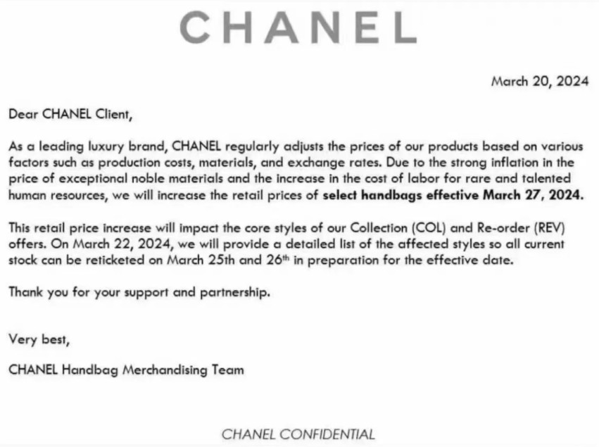 3月25日,時尚商業(yè)發(fā)布消息稱,香奈兒(Chanel)計劃再次上調(diào)其產(chǎn)品價格,這一決定是因?yàn)槭艿皆牧虾腿肆Y源成本增加的影響。根據(jù)最新的報道,香奈兒將于2024年3月27日在全球范圍內(nèi)正式實(shí)施這一價格調(diào)整,涉及的產(chǎn)品包括CF系列手袋、2.55手袋、Boy Chanel手袋、Chanel 19手袋和Chanel 22手袋等。有消息人士透露,此次漲價的幅度可能達(dá)到10%至15%。 若漲價消息屬實(shí),Chanel小號的CF手袋價格將進(jìn)一步上漲至8.8萬元人民幣,逼近9萬元大關(guān),而Chanel 22手袋的價格將突破5萬元大關(guān)。這一漲價策略是香奈兒在維持其高端奢侈品牌形象的同時,應(yīng)對成本上漲壓力的一種方式。 值得注意的是,香奈兒在過去幾年中已經(jīng)多次調(diào)整價格,每次漲價前后都會在市場上掀起一股購買熱潮。漲價不僅提升了品牌形象,還為產(chǎn)品附加了一定的金融屬性,使得消費(fèi)者在購買時有了保值增值的預(yù)期。此外,香奈兒還在加大品牌營銷力度,提高品牌定位,吸引高凈值人群,并通過開設(shè)預(yù)約制私人沙龍等方式,為高凈值客戶提供更加私密和尊享的購物體驗(yàn)。 然而,頻繁漲價也可能挑戰(zhàn)消費(fèi)者的承受度,尤其是在當(dāng)前全球經(jīng)濟(jì)不確定性增加的背景下。香奈兒需要在維護(hù)其品牌價值和吸引高端消費(fèi)者的同時,平衡市場對其產(chǎn)品價格的接受度。未來,香奈兒的定價、品質(zhì)和品牌戰(zhàn)略將繼續(xù)受到市場的密切關(guān)注和考驗(yàn)。 |