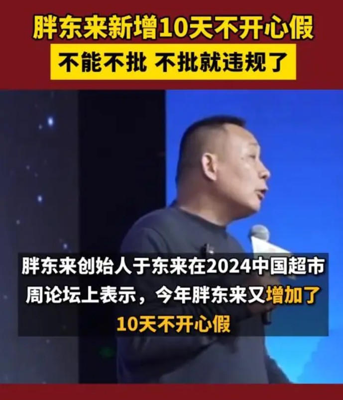 3月26日消息,在2024年的中國超市周論壇上,胖東來董事長于東表示,胖東來今年新增10天“不開心假”,無論做什么事情,要讓自己走在喜歡的道路上。不開心、不想上班可以請(qǐng)假。管理層不能不批,不批就違規(guī)了。 于東來表示,公司希望員工能夠自由地決定自己的休息時(shí)間,讓每個(gè)人都能在工作之余得到充分的放松和調(diào)整。 于東來進(jìn)一步解釋說:“誰都會(huì)有不開心的時(shí)候,這是人之常情。但有趣的是,當(dāng)我們真正擁有這種‘不開心假’的時(shí)候,很多人反而會(huì)感到開心。因?yàn)檫@意味著他們得到了公司的理解和支持,感受到了工作和生活的平衡! |
