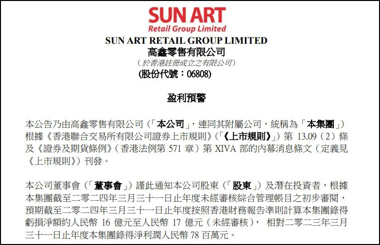 4月14日,職業(yè)零售網(wǎng)一周零售大件事:高鑫零售預虧超16億!永輝超市出售資產(chǎn)進展!盒馬擬恢復會員制!步步高重整新進展!沃爾瑪將開8家新店!華潤萬家關店! 1、高鑫零售:預計年度虧損16億元至17億元 4月12日,高鑫零售發(fā)布盈利預警。集團披露截至2024年3月31日止年度未經(jīng)審核管理賬目,預計按照香港財務報告準則計算本集團虧損凈額約人民幣16億元至17億元。相比較2022年(截至2023年3月31日)凈利潤7800萬元,同比下降2151.28%至2279.49%。高鑫零售表示,虧損主要原因是負現(xiàn)金流門店、關閉門店及擬開業(yè)門店的使用權資產(chǎn)及固定資產(chǎn)減值、商譽減值等。若不考慮減值損失影響,則預計虧損人民幣6億元至人民幣7億元。綜合原因包括業(yè)務調(diào)整以及顧客囤貨心智消失導致客單價減少,最終造成收入預期下降。(公司發(fā)布) 2、沃爾瑪將開8家新店,7家山姆+1家大賣場 《職業(yè)零售網(wǎng)》獲悉,4月9日,沃爾瑪官方招聘公眾號發(fā)布了其4月份新店招聘的信息。招聘信息顯示,沃爾瑪公司計劃在南京、成都、武漢、泉州、東莞、紹興、溫州、昆明等城市開設8家新店,并公開招各類人才。其中,7家為山姆會員店,而昆明的一家則是大賣場。此次招聘涵蓋多個職位,包括前臺/后區(qū)/鮮食/電商/副總經(jīng)理、生鮮主廚/主廚助理、鮮食/樓面/收銀/服務臺/網(wǎng)購/收貨等主管、人事行政經(jīng)理、HR專員/HR實習生、會籍推廣員、肉類/熟食/壽司/面包技工、鮮食/前臺/后區(qū)/樓面員工等職位。 3、永輝超市出售萬達股份進展,二期款項有1億元尚未收到 4月7日,永輝超市發(fā)布關于出售資產(chǎn)的進展公告。公告顯示,該公司于2023年12月13日和12月29日的第五屆董事會第十一次會議及2023年第三次臨時股東大會上,審議并通過了出售資產(chǎn)的議案。永輝超市作為出售方,與購買方大連御錦貿(mào)易有限公司達成協(xié)議,出售388,699,998股大連萬達商業(yè)管理集團股份有限公司股份,轉(zhuǎn)讓價格為45.30億元,款項將分八期支付。根據(jù)公告,永輝超市已于2023年12月29日收到首期款項3億元。截至目前,第二期款項應收3.91億元,已收2.9億元,尚有1.0097億元未收到。公告還指出,第二期轉(zhuǎn)讓價款對應的股份尚未完成交割手續(xù)。(觀點網(wǎng)、公司發(fā)布) 4、永輝超市宣布關閉兩家門店 近日,永輝超市宣布關閉兩家門店,分別是位于重慶的學府大道店和江蘇常熟的萬達廣場店。學府大道店將在5月1日起停止營業(yè),而萬達廣場店則因經(jīng)營策略調(diào)整,計劃在4月9日至4月15日進行清倉銷售,隨后于4月16日正式關閉。對于持有永輝購物卡、提貨券和積分的消費者,他們可以在永輝其他門店或線上平臺進行消費,這些權益在其他門店和線上均可正常使用。同時,永輝生活APP也提供了便捷的在線購物服務,最快30分鐘即可送達,為消費者提供了更多選擇。 5、華潤萬家增城店將于4月15日關閉 4月10日消息,華潤萬家發(fā)布了“告顧客書”,增城店將于2024年4月15日營業(yè)結(jié)束后,關閉線上、線下業(yè)務。該店關閉后,廣州還有新塘店、蘿崗店等。對于持有的萬家會員卡、購物卡,可以依據(jù)使用說明,在萬家旗下門店繼續(xù)使用。(增城那些事兒) 6、華潤萬家杭州施家橋店因租賃合同到期關閉 近日,位于杭州朝暉路的華潤萬家施家橋店突然關門。目前,該店大門已經(jīng)緊閉,門上貼著一張黃色的“顧客告知”,透過玻璃門可以看到,超市內(nèi)的貨品基本全部搬空,剩下少許貨架,有工人正忙著拆除室內(nèi)的裝修。告知顯示,因物業(yè)租賃合同到期,華潤萬家施家橋店于4月6日營業(yè)結(jié)束后停止線下業(yè)務。據(jù)悉,華潤萬家施家橋店于2006年開業(yè),已經(jīng)運營18年。該店關閉后,華潤萬家旗下的大賣場在杭州還有9家門店,距離朝暉路施家橋比較近的是云河店、德勝店等。(都市快報橙柿互動) 7、沃爾瑪江西吉安人民廣場店宣布4月16日停業(yè) 4月9日,沃爾瑪江西吉安人民廣場店發(fā)布公告,宣布將于2024年4月16日起停止營業(yè)。公告內(nèi)容顯示,為了將對顧客和周邊社區(qū)的影響降至最低,沃爾瑪吉安人民廣場分店誠意邀請顧客到店購物以及在沃爾瑪小程序下單,仍將繼續(xù)提供優(yōu)質(zhì)優(yōu)價的商品和高質(zhì)量的顧客服務。此外,該店還貼出了對供應商伙伴的公告表示,吉安人民廣場分店的停業(yè)不會影響沃爾瑪與供應商的良好合作,沃爾瑪仍將在全國門店與本土供應商開展良好合作。此外,商場也貼出溫馨提示,處理退卡等事宜。(江南都市報) 8、盒馬擬于4月24日恢復會員開卡、續(xù)費服務 4月7日,據(jù)商業(yè)觀察家消息,有盒馬人士透露,盒馬擬重啟會員制,暫緩折扣化。4月10日,盒馬APP就盒馬X黃金會員、X鉆石會員相關內(nèi)容進行公開征求意見,其中提到,盒馬擬于2024年4月24日恢復X黃金會員、X鉆石會員開卡、續(xù)費服務,同時,盒馬X會員店VIP將升級為盒馬X黃金會員。 據(jù)了解,盒馬曾于去年年底暫停X黃金、X鉆石會員的開通和續(xù)費。公告顯示,盒馬在此次調(diào)整中將免運費門檻統(tǒng)一調(diào)整為49元,4月24日起生效,還將對原《盒馬X黃金會員/X鉆石權益細則》權益進行升級調(diào)整。盒馬X黃金會員將新增購物返1%優(yōu)惠金;X黃金會員、X鉆石會員提交生日信息,